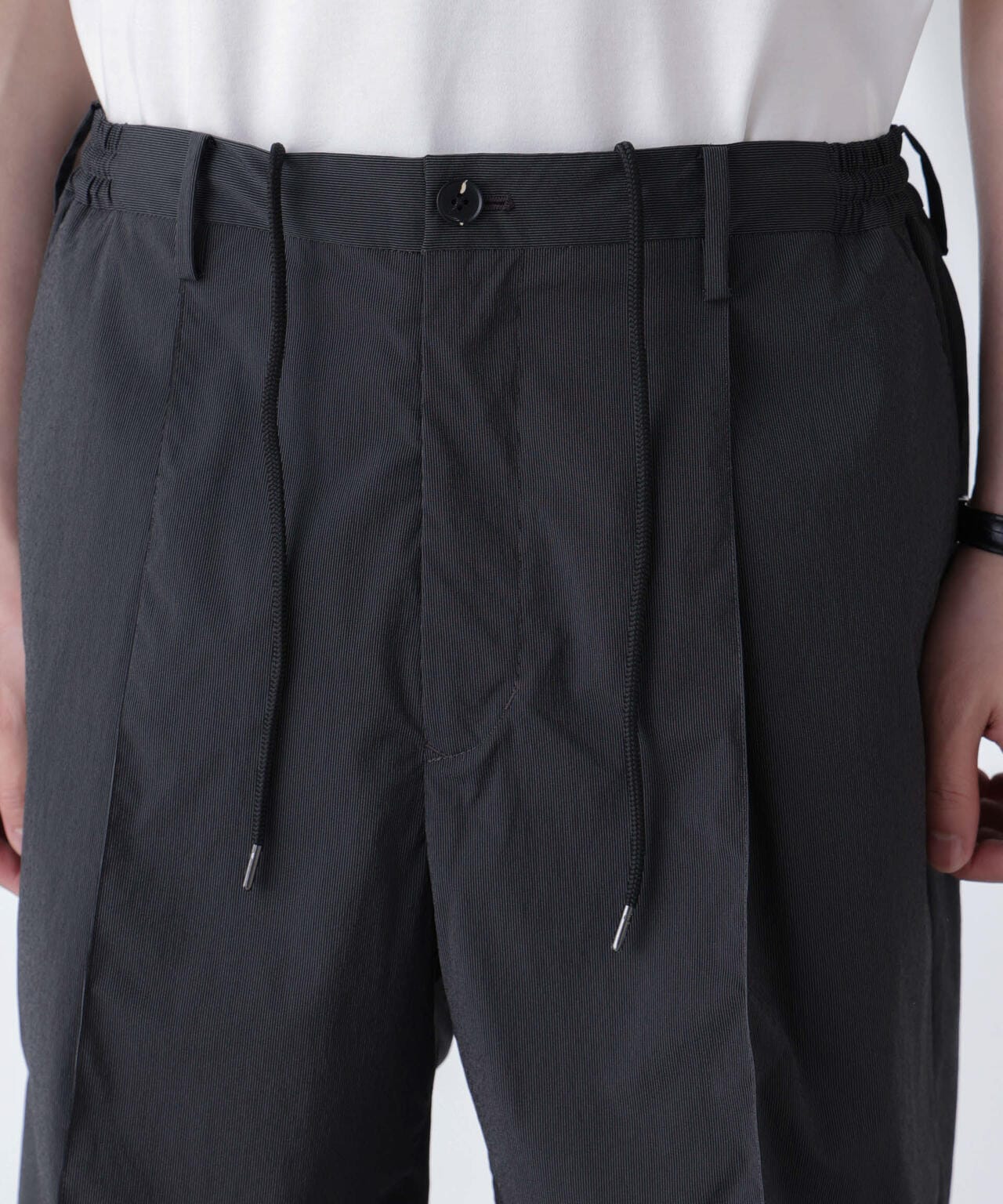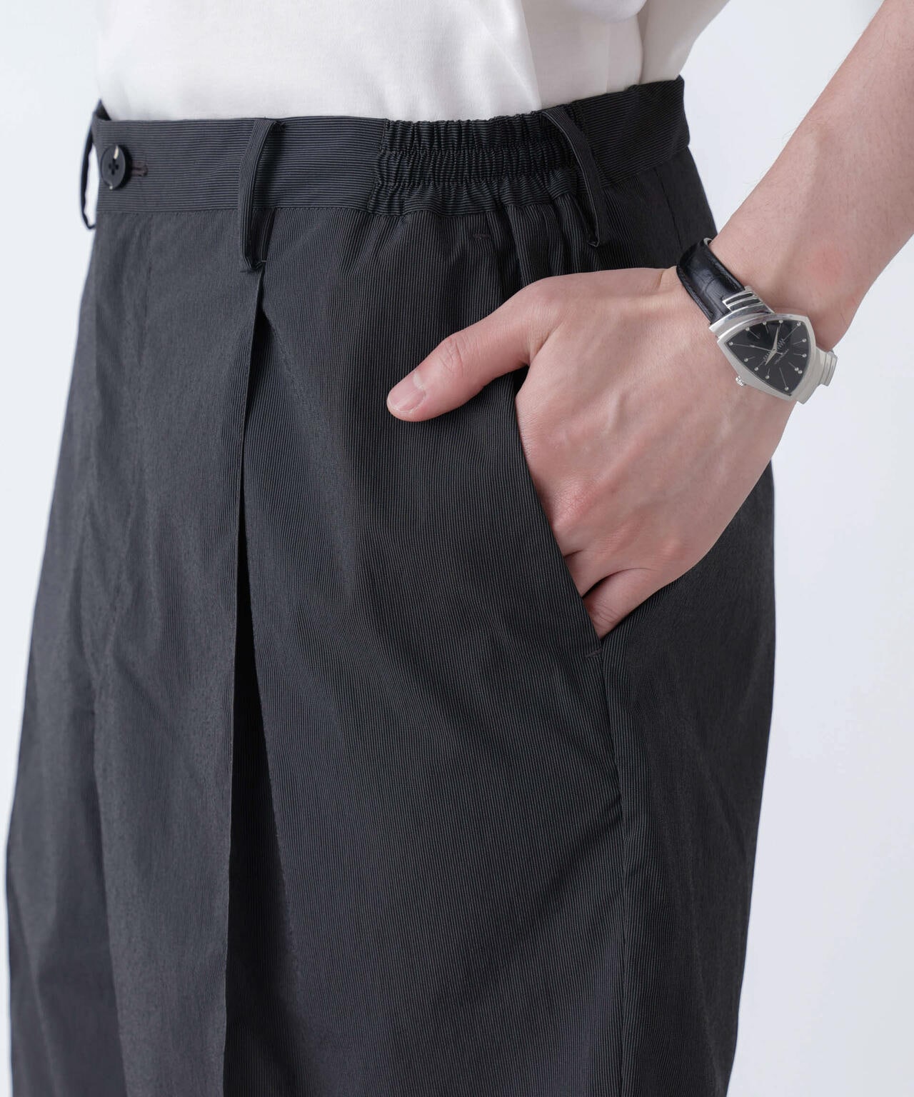 ・ゆとりのあるシルエットでナイロン素材を使用した、ライトナイロンピンストライプパンツ