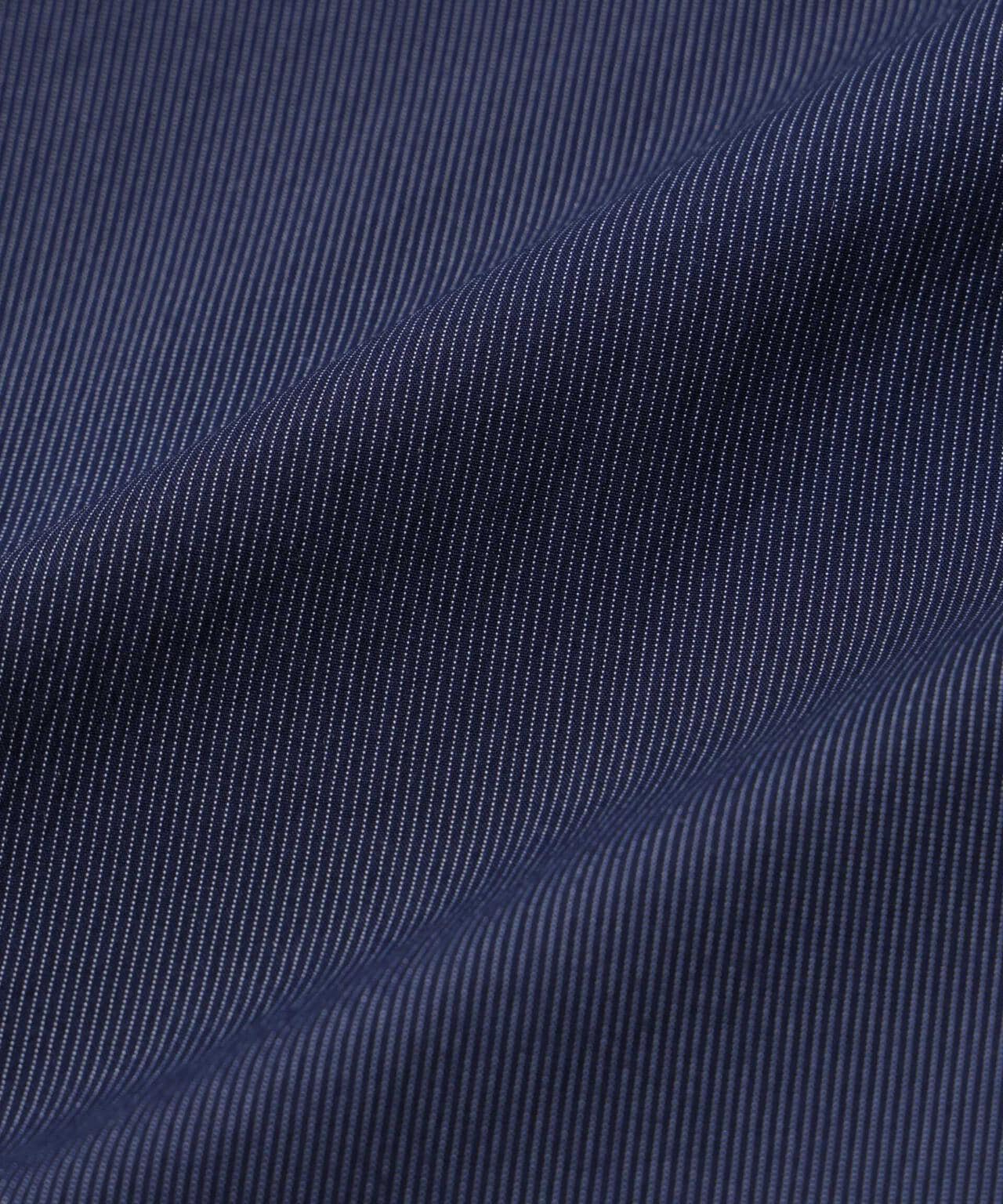 ハリ感のある軽いピンストライプのナイロン素材に撥水加工を施し、ストレッチの利いたアイテム。