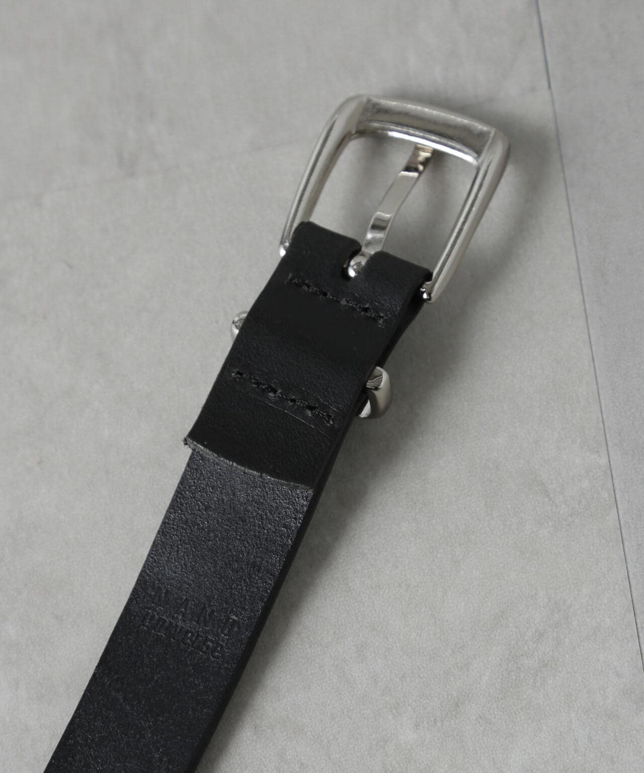 イタリーレザーを使用し、ベルト本体部分にスタッズを配置したナローベルト。