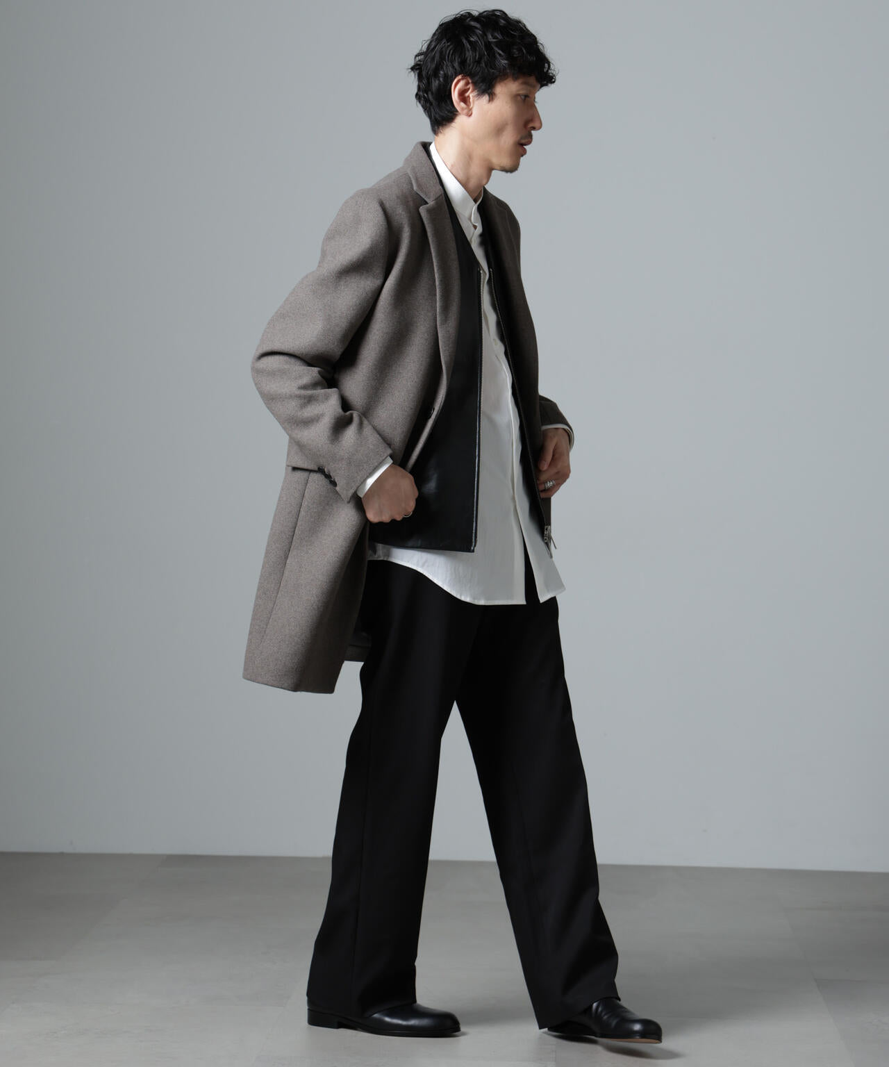 柔らかなメルトンで仕上げたチェスターコート。細身のシャープなシルエットでややシェイプさせたウエストラインがポイント。カジュアルダウンしたコートスタイルでもビジネスやフォーマルなシーンでも、幅広く着用できる汎用性の高いコートです。