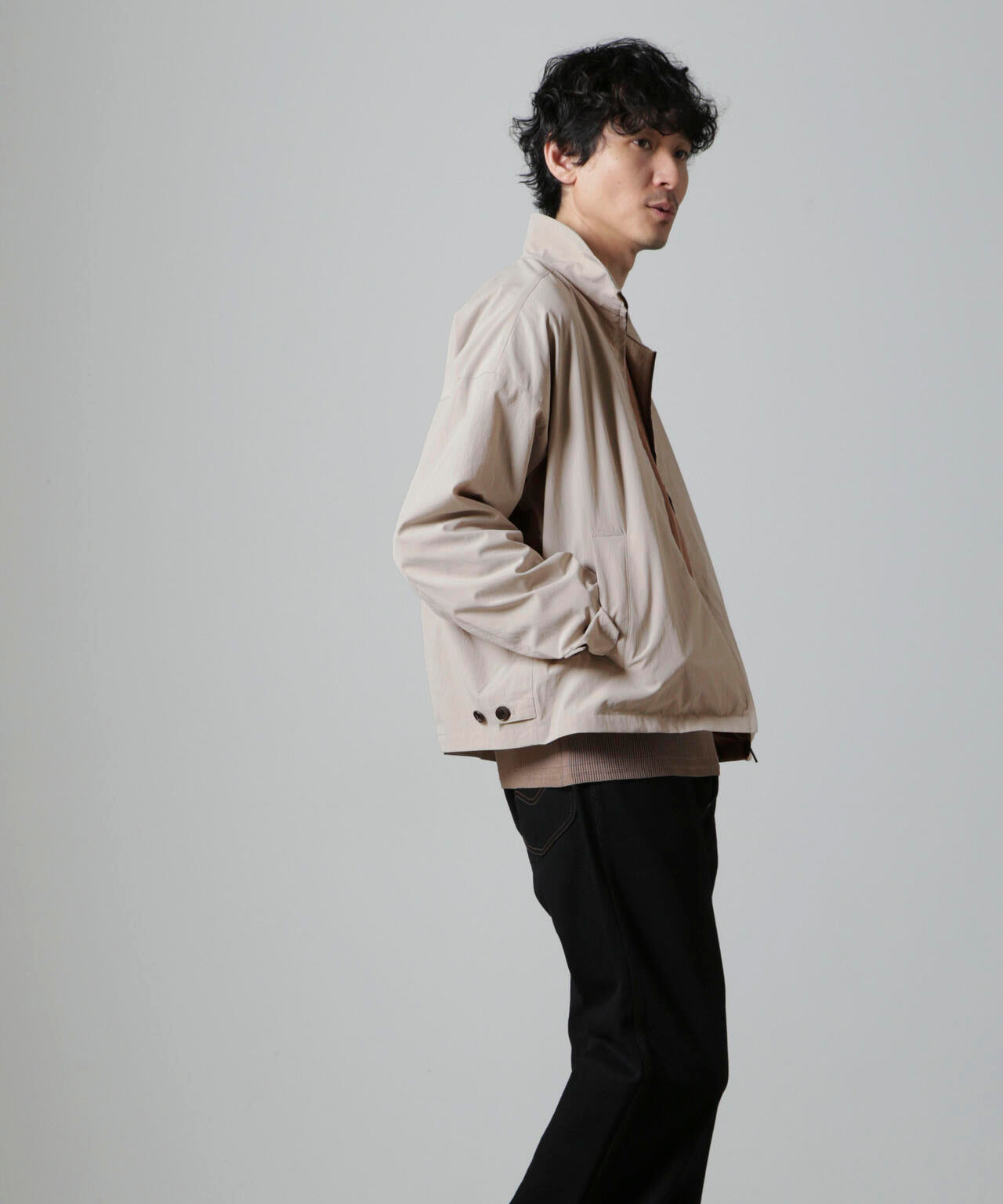 ・過度なデザインを排したスタンドカラーブルゾン