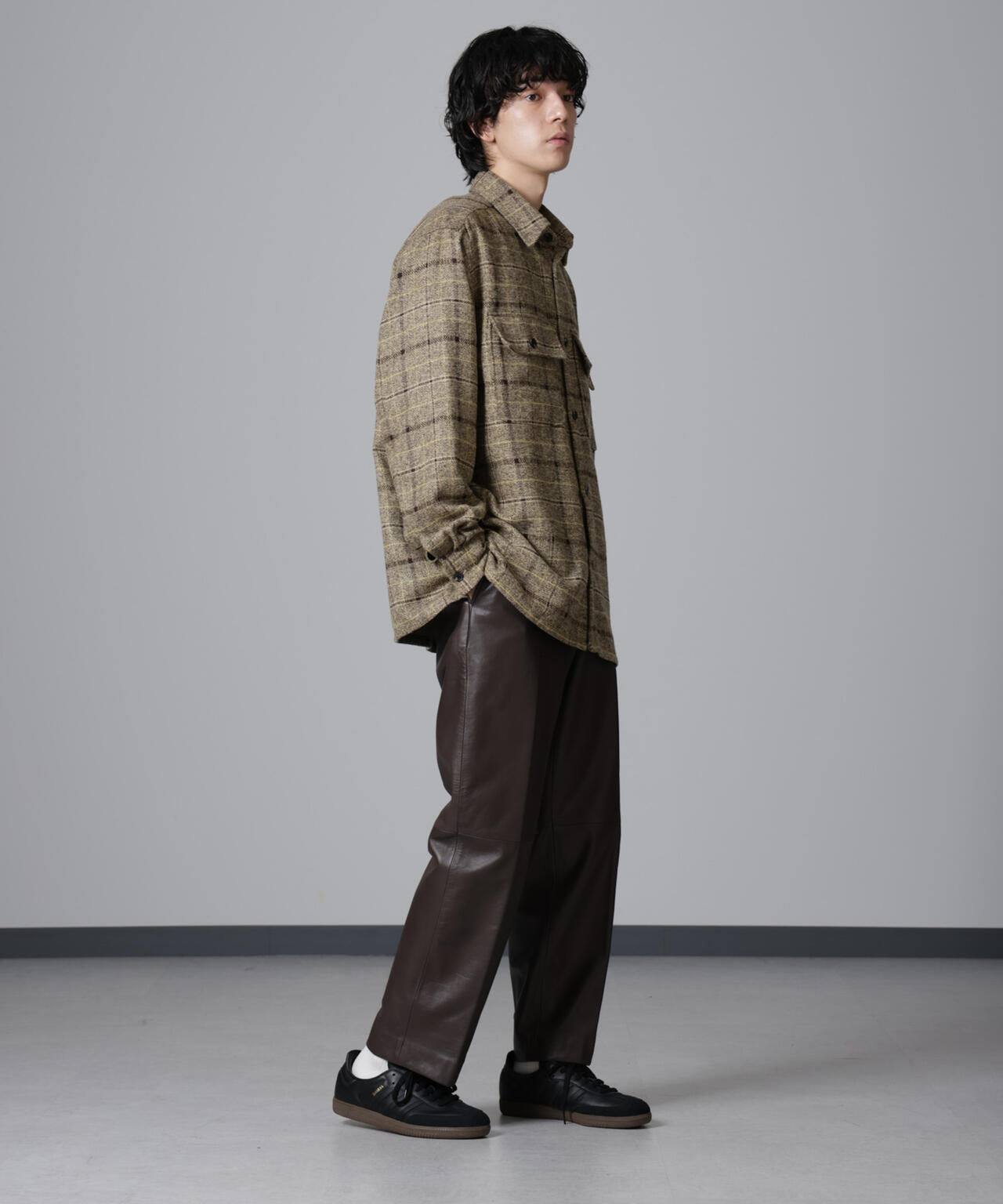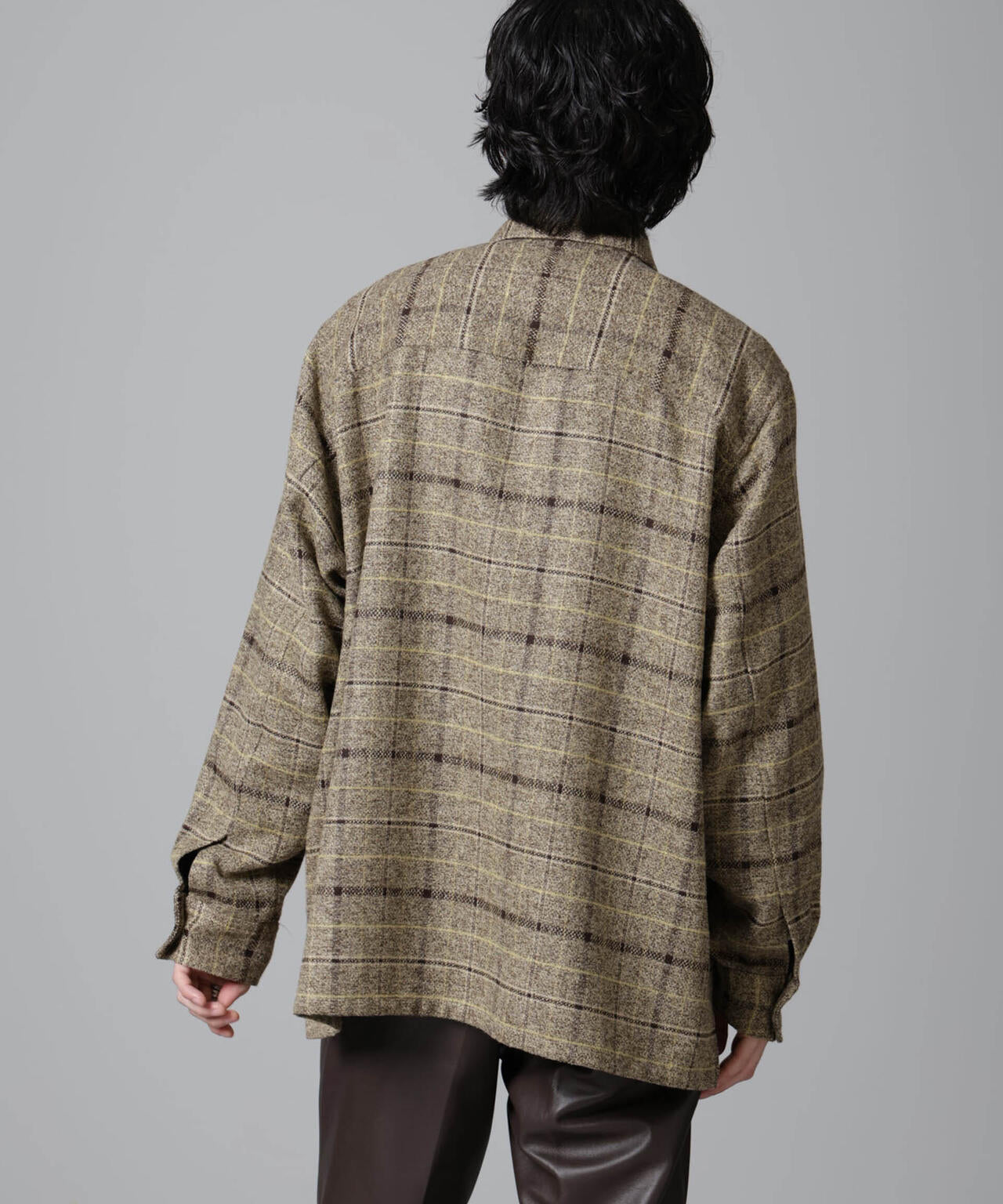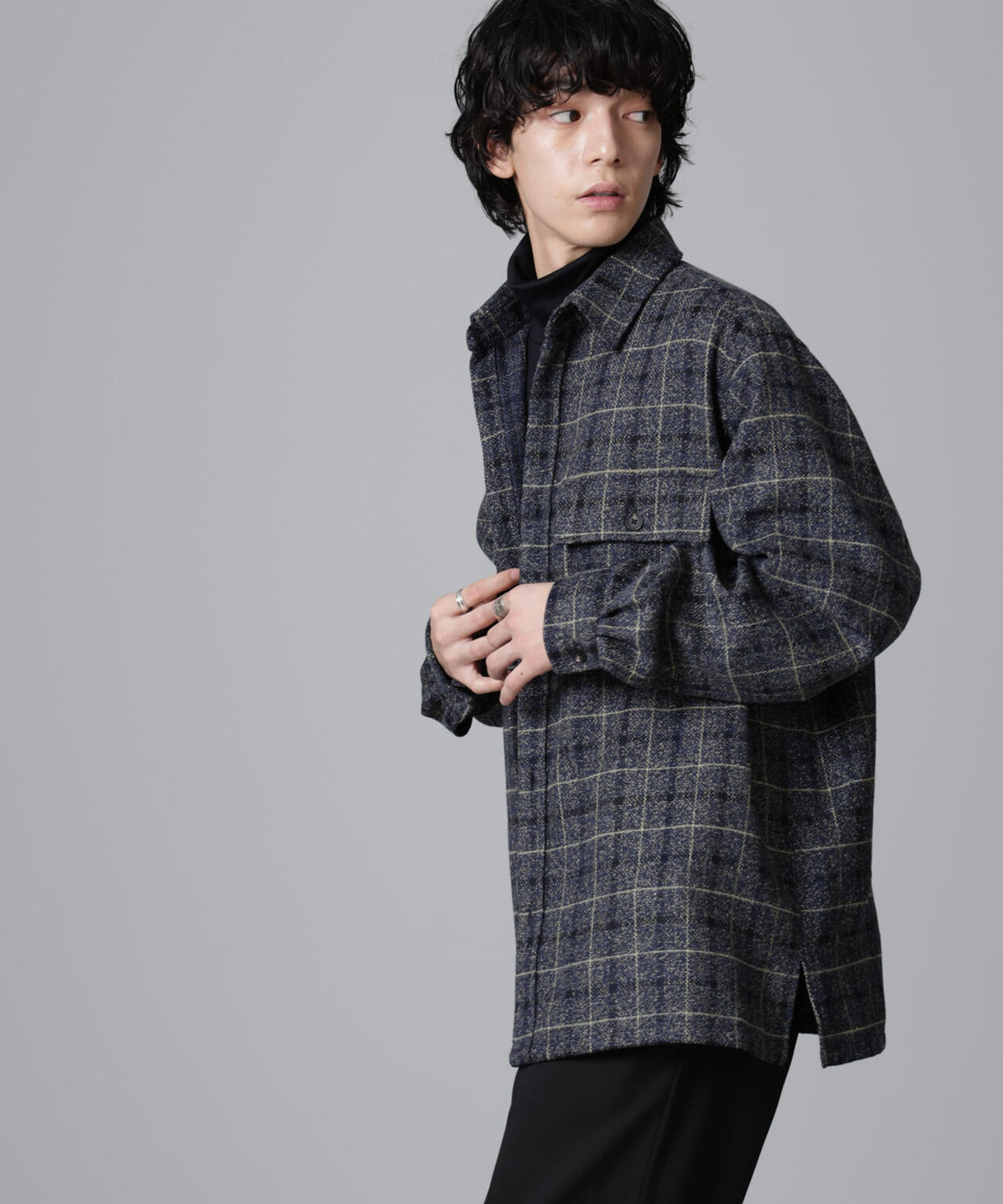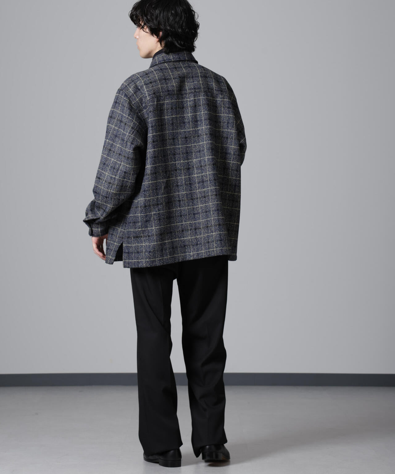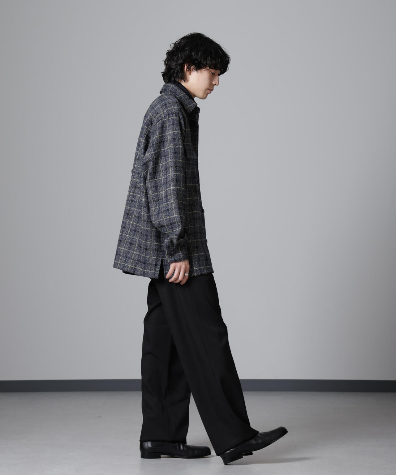 生地の見え方が特徴的な、中肉のツイード生地のシャツアウター。今季トレンドでもあるツイード素材の中でも冬過ぎないライトな生地感にして、ライトアウターや重衣料の中に着れるCPO型に落とし込んだオススメのアイテムです。