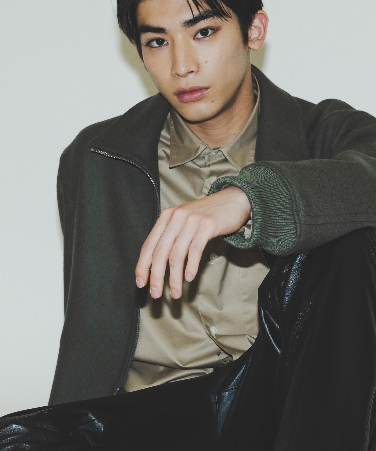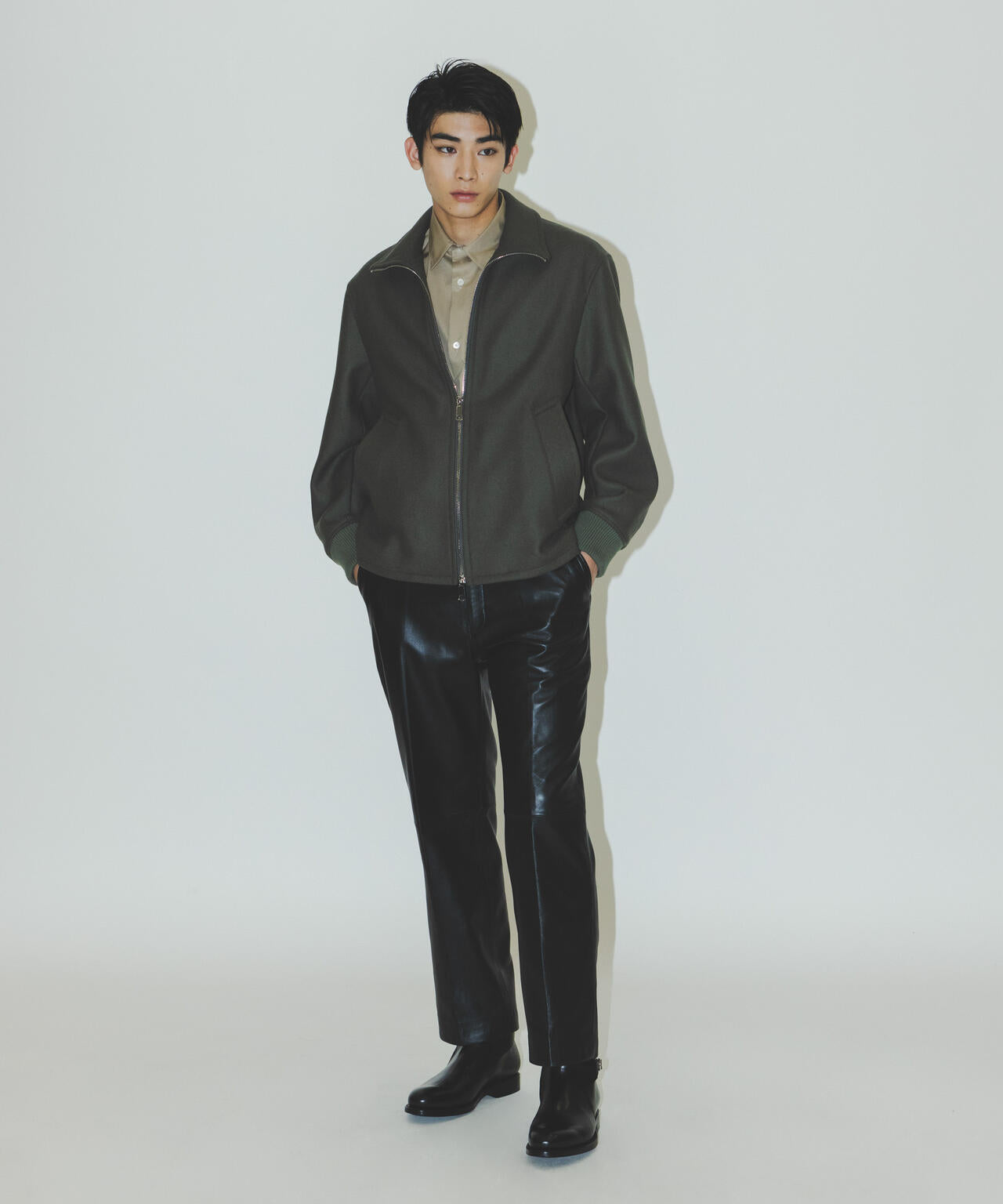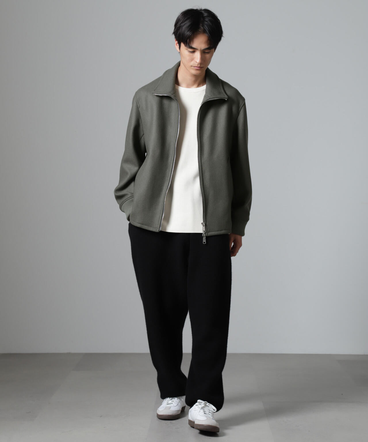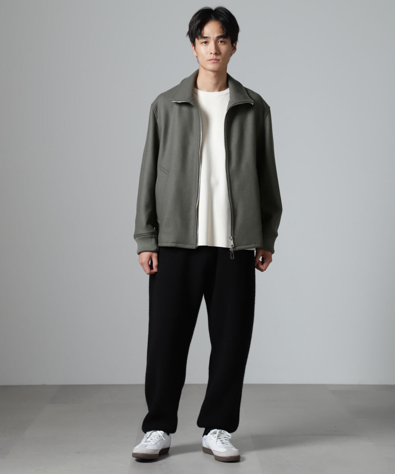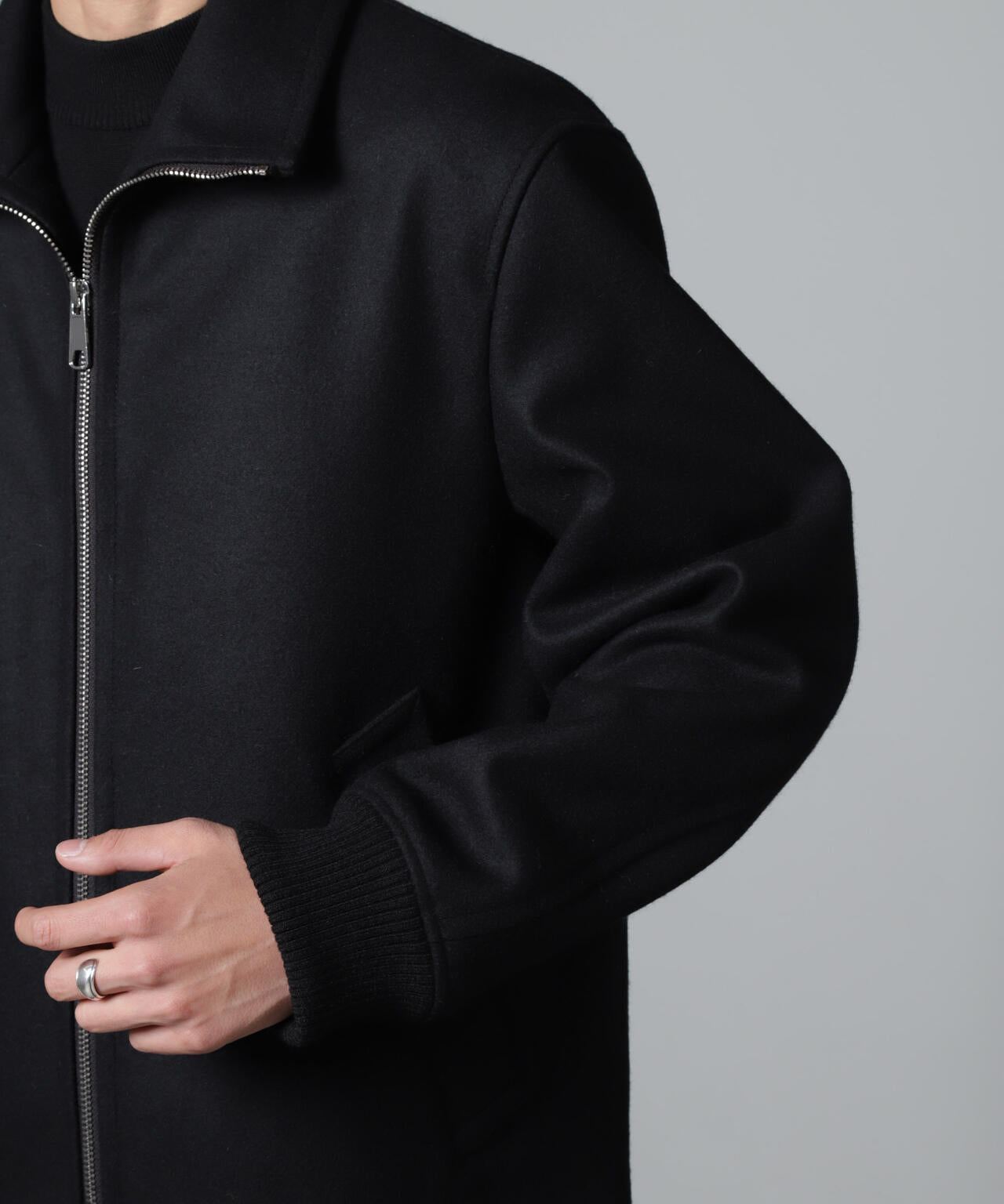 SUPER110'sウール原料使いの2重織りメルトンを使用したハイネックジップアップブルゾン。生地にはソトー社のハードプレス加工を施し、原料をギュッと圧縮しキレイな表面感に仕上げた1着。着心地はもちろん、袖を通したときに感じる特別感を与えてくれる、オススメのアイテムです。