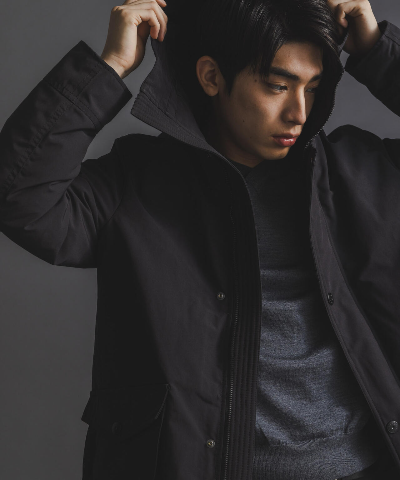 スタイリッシュなミリタリーライクダウン。N-3Bなどのミリタリー要素をベースにブラッシュアップされた、西川ダウン(R)のアークティックモデル。ミリタリーの要素も持ちつつシンプルなデザインに落とし込んだミディアム丈ダウン。