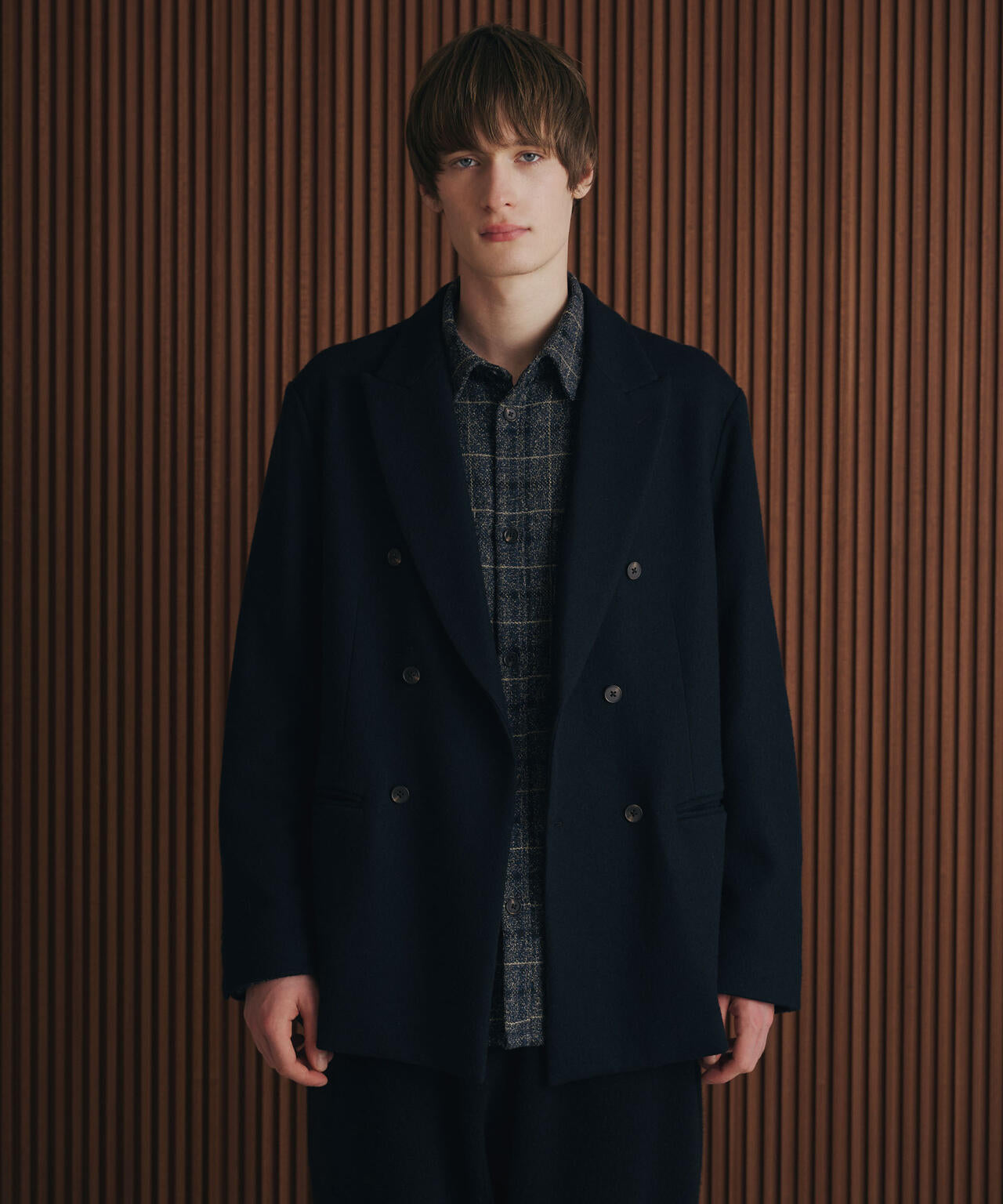 日本のウール産地である尾州の生地を使用した100%ウールシリーズから登場のダブルジャケット。クラシックなデザインながらも、現代に沿ったモダンなシルエットで時代に左右されずに長く着用できる一着です。