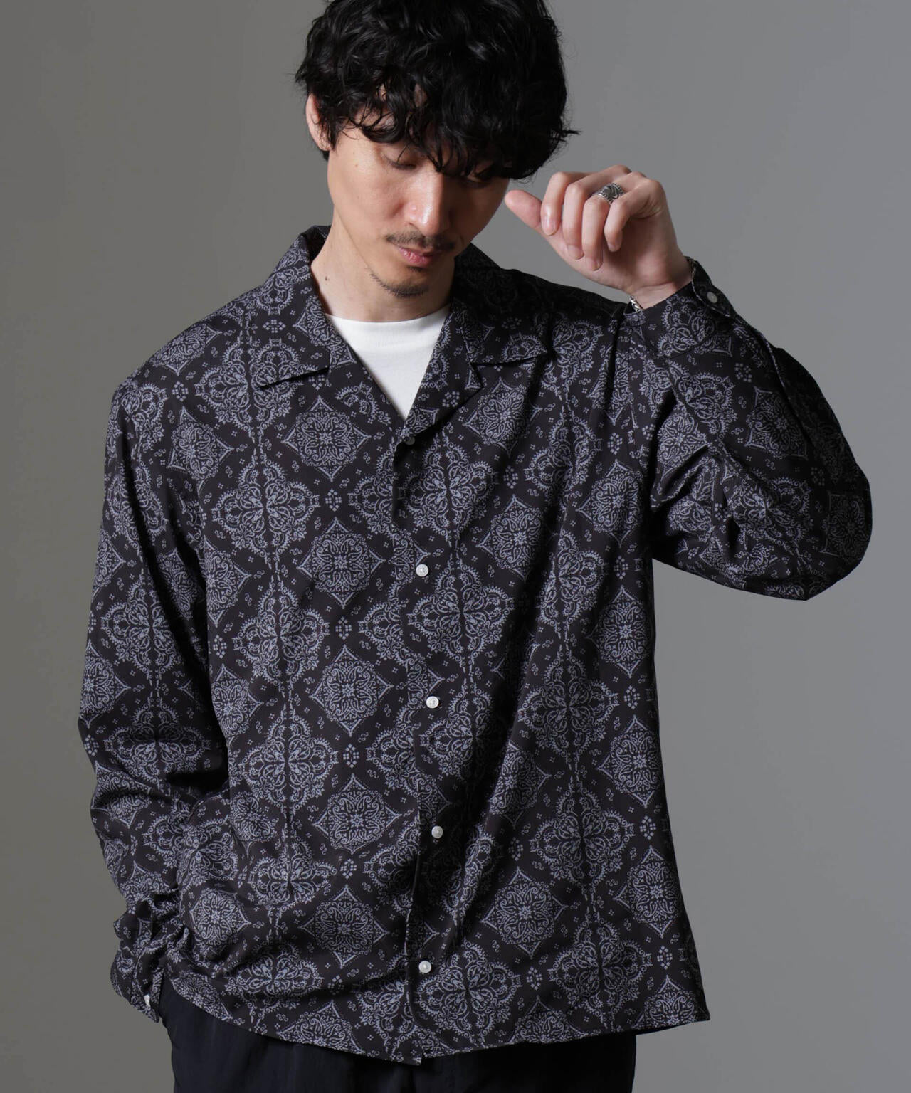 レトロプリント オープンカラーシャツ