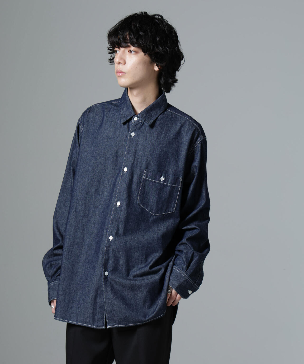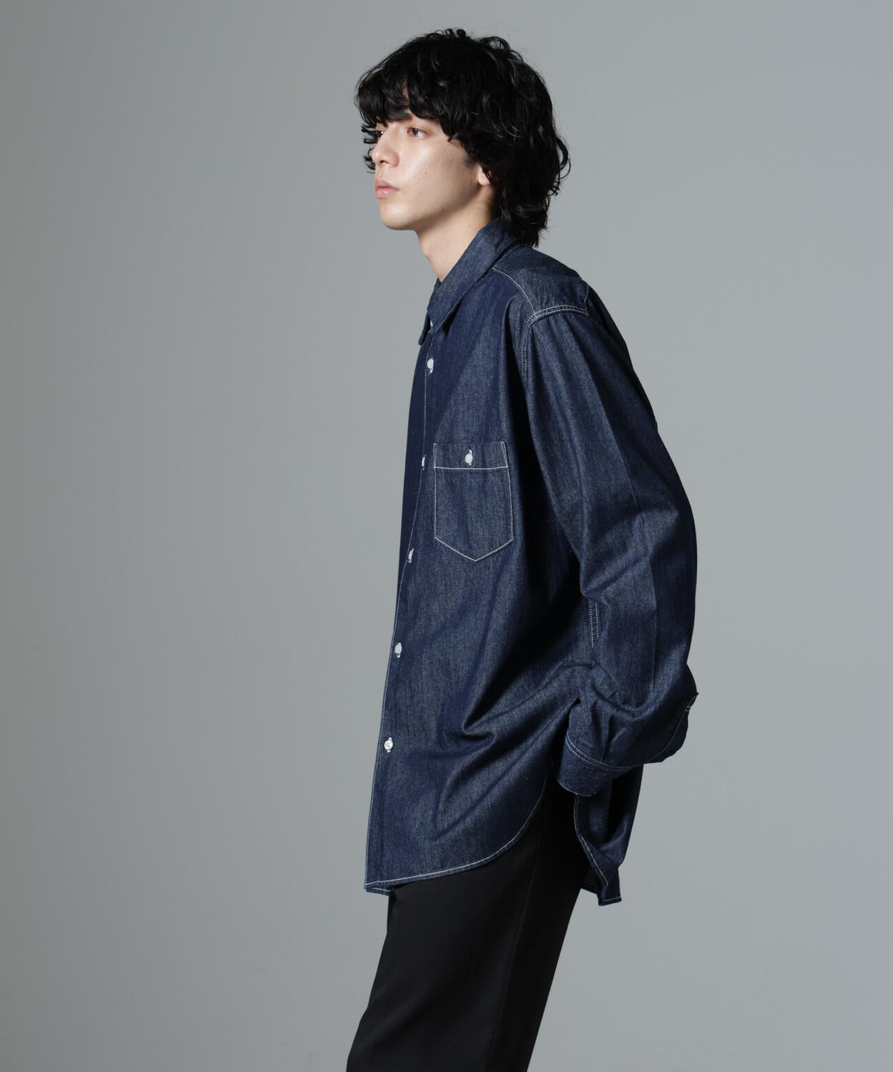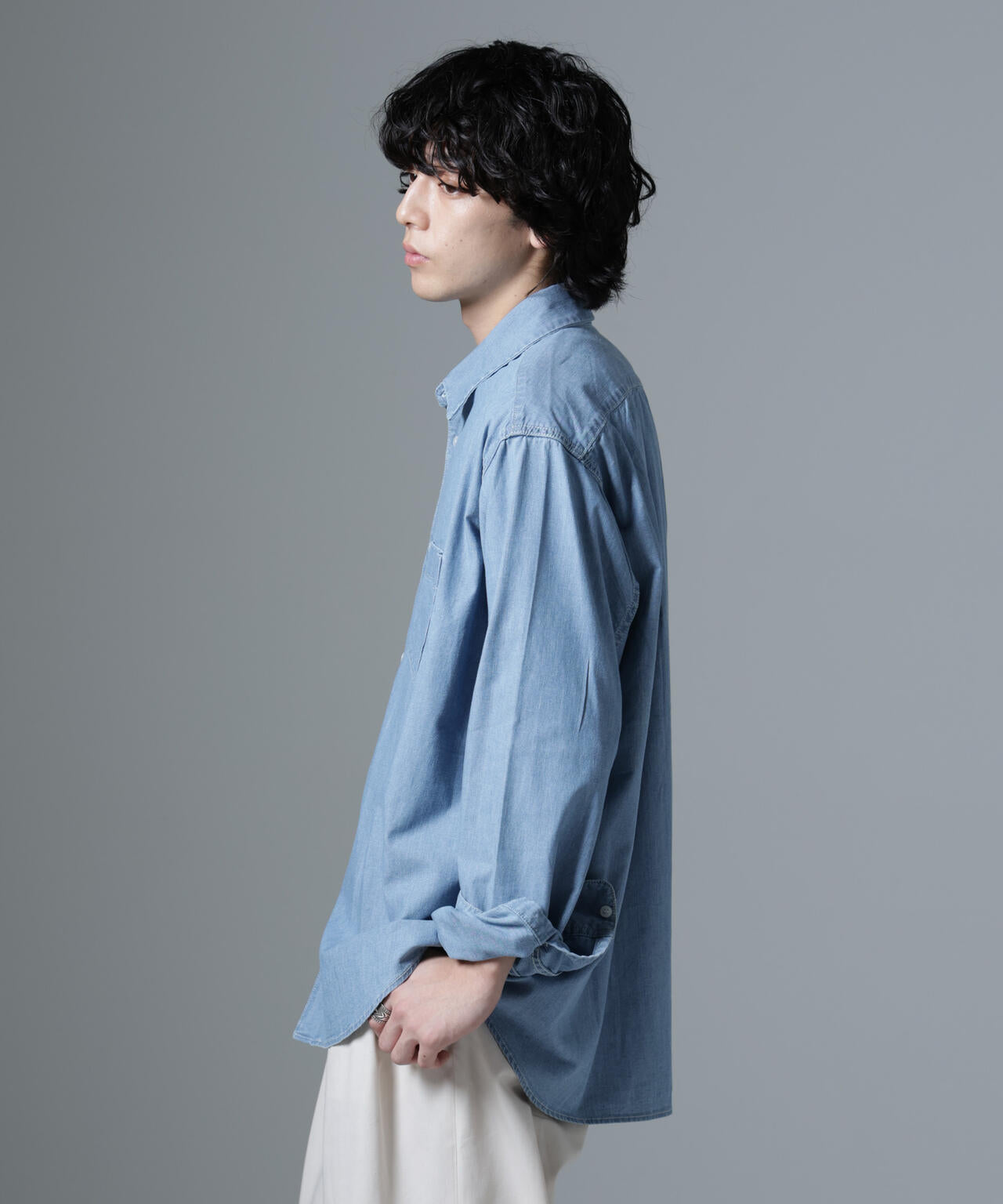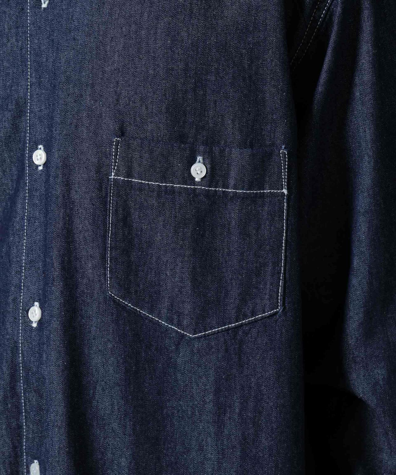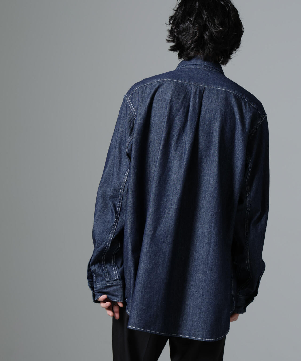 様々なスタイリングに活躍する今シーズンのキーアイテムのデニムシャツ。ステッチを太番手のチェーンステッチにすることで、縫い縮みさせ本格的なデニムシャツに仕上げた1着。ワークウェアのデザインをモチーフにしたデイリー使いにおすすめのアイテムです。