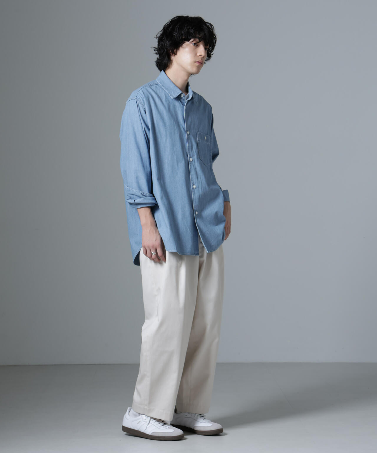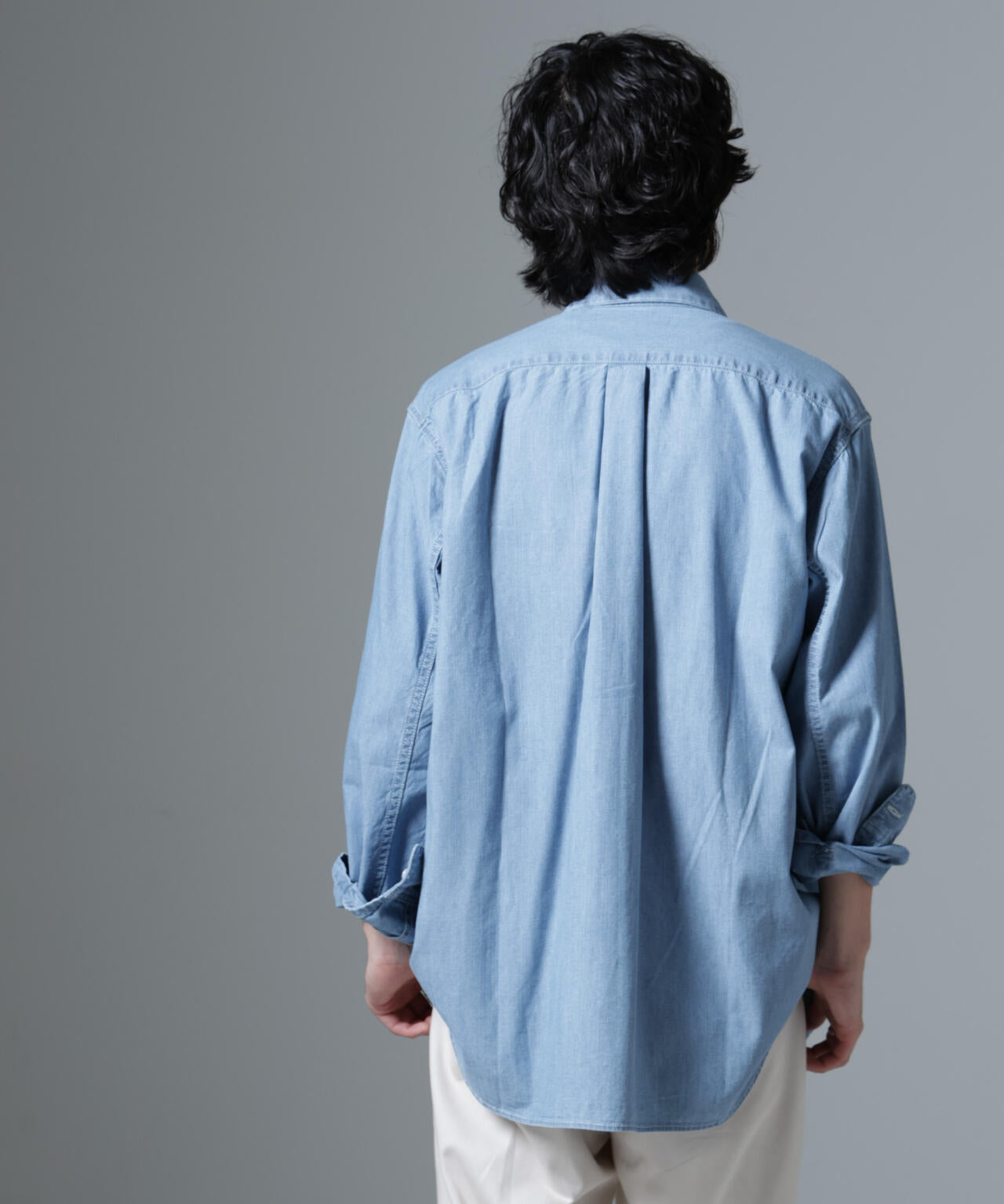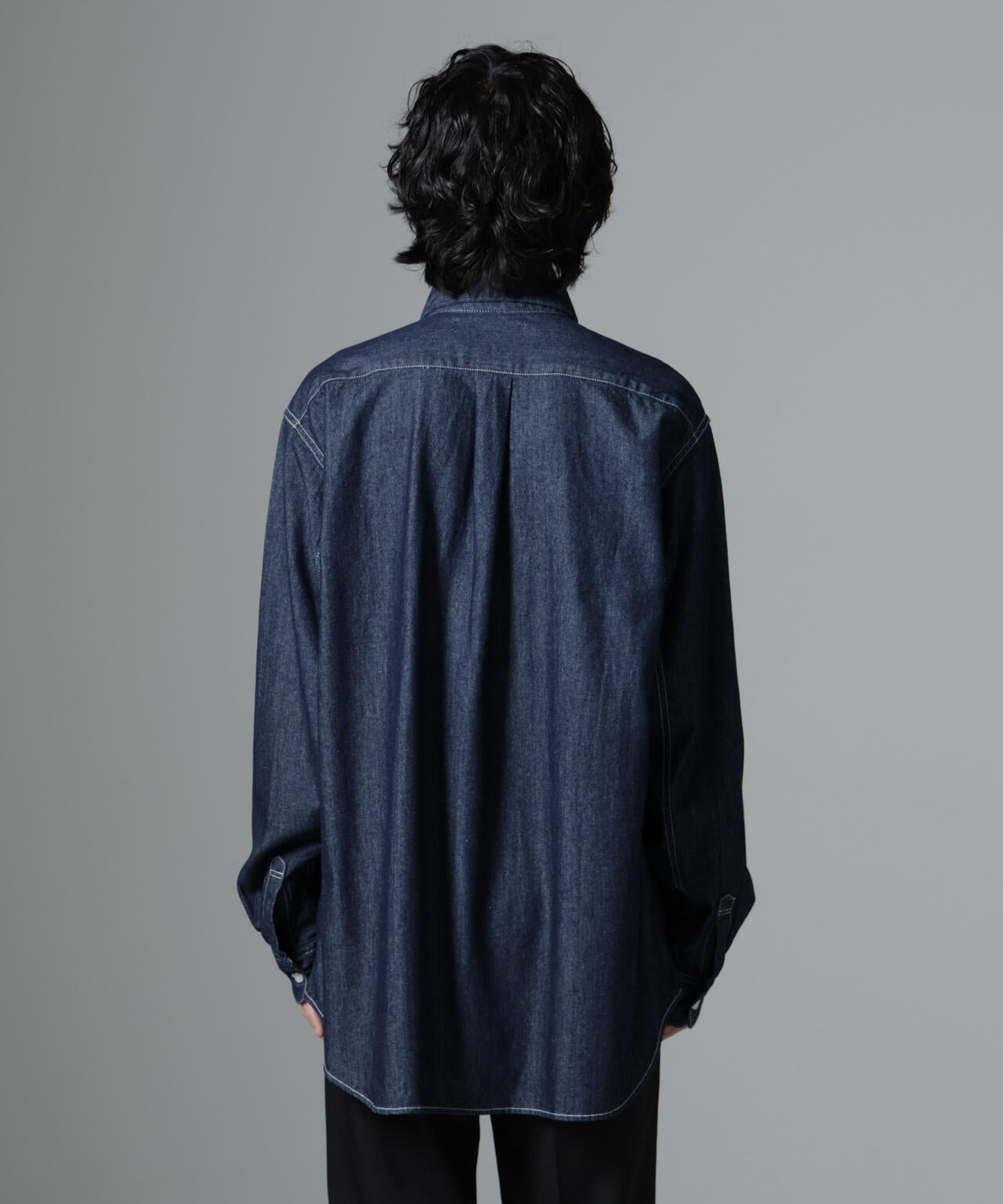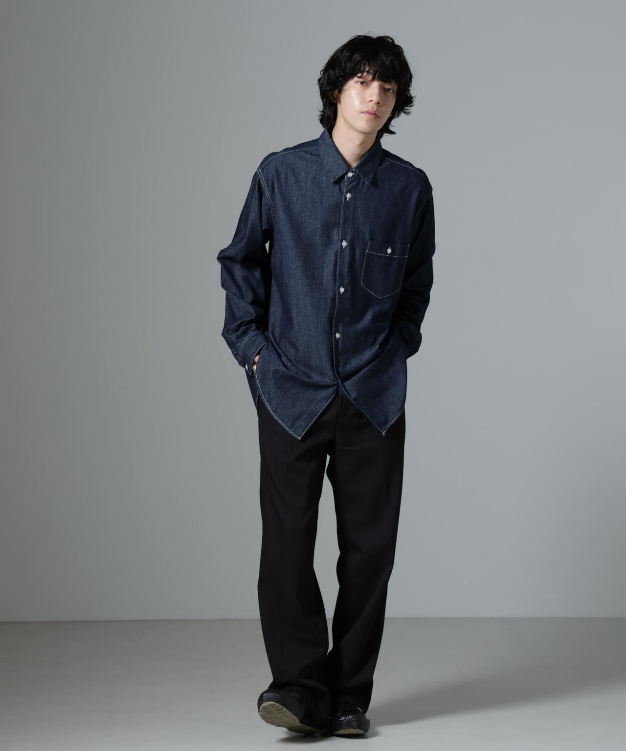 様々なスタイリングに活躍する今シーズンのキーアイテムのデニムシャツ。ステッチを太番手のチェーンステッチにすることで、縫い縮みさせ本格的なデニムシャツに仕上げた1着。ワークウェアのデザインをモチーフにしたデイリー使いにおすすめのアイテムです。