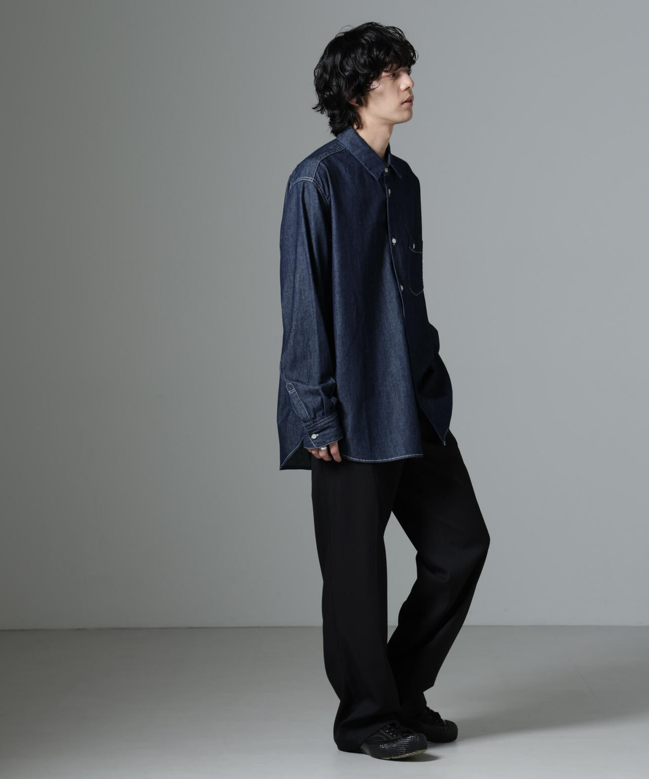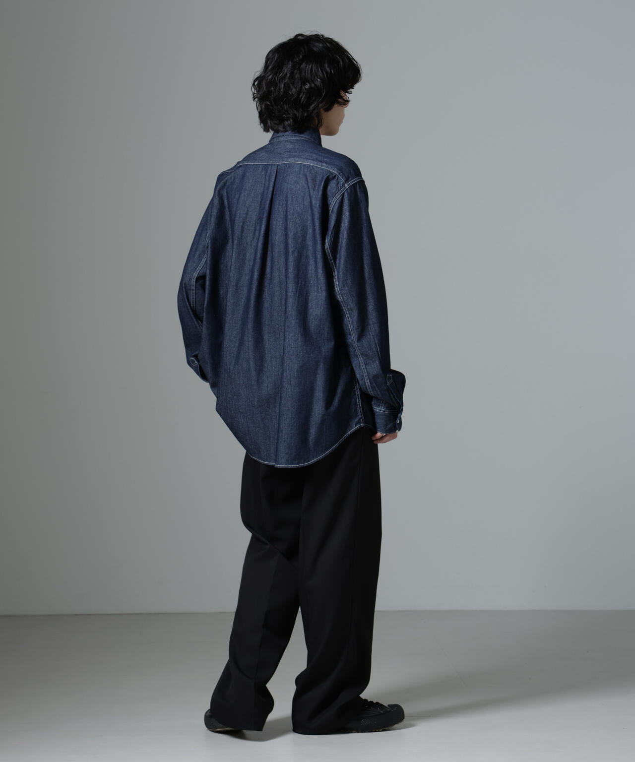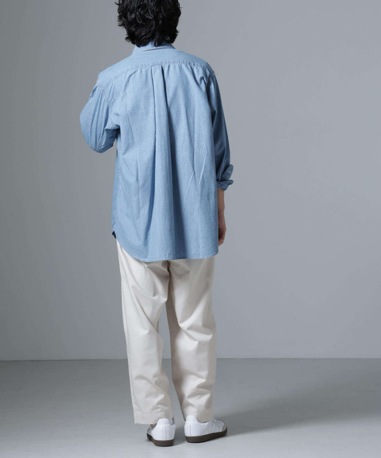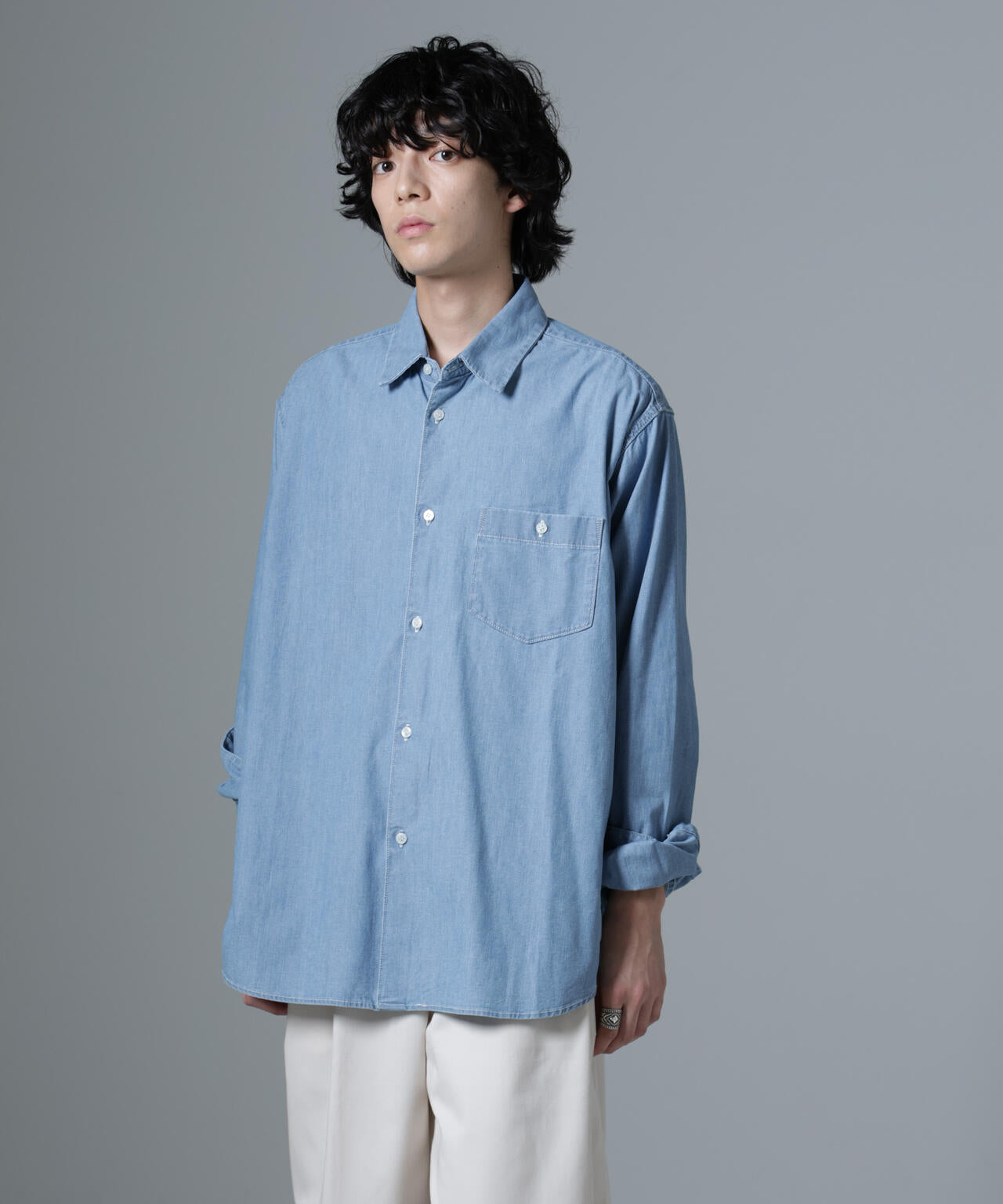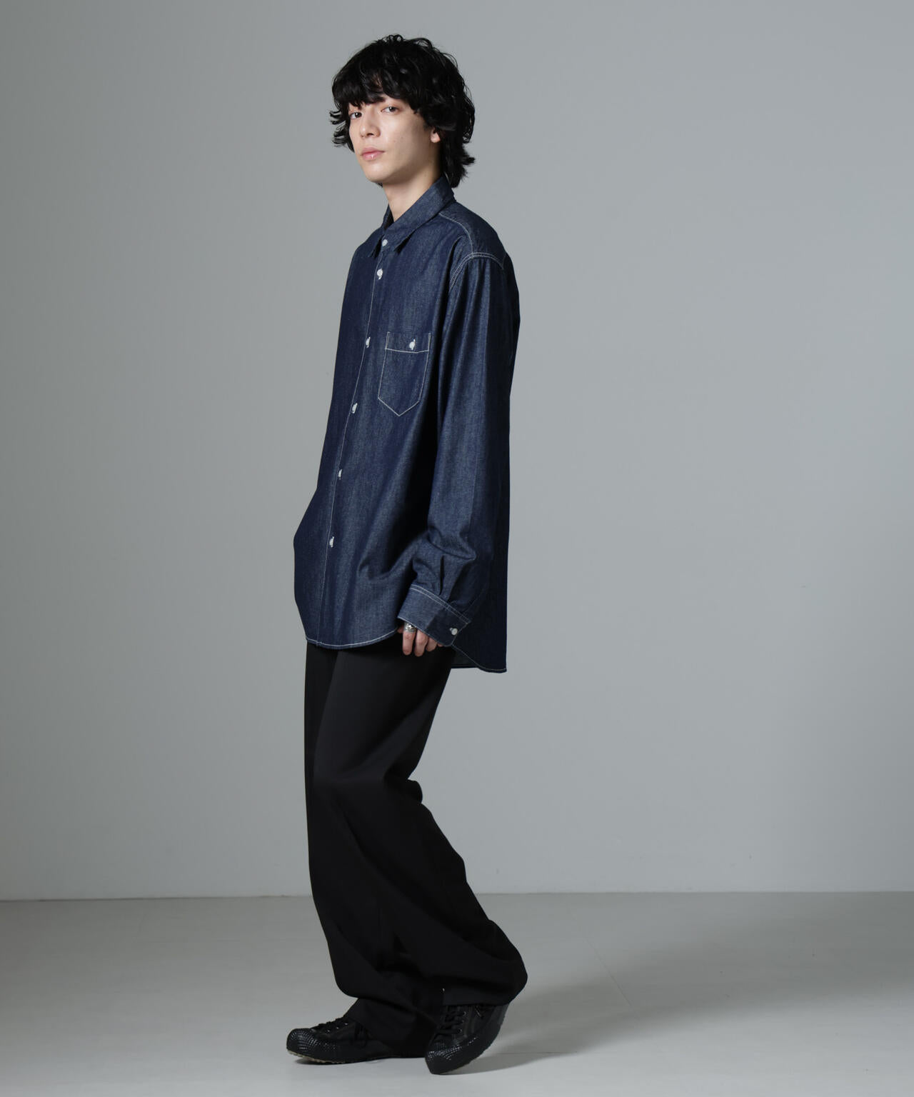 様々なスタイリングに活躍する今シーズンのキーアイテムのデニムシャツ。ステッチを太番手のチェーンステッチにすることで、縫い縮みさせ本格的なデニムシャツに仕上げた1着。ワークウェアのデザインをモチーフにしたデイリー使いにおすすめのアイテムです。