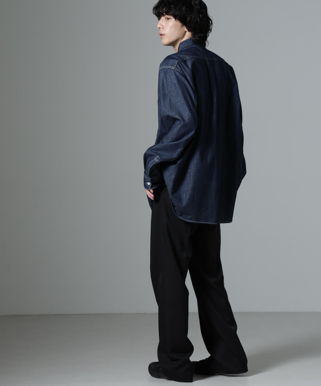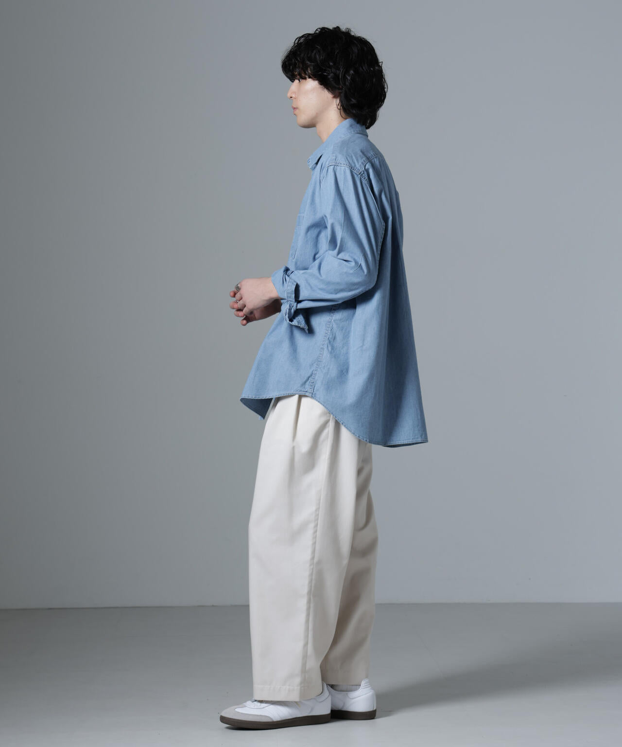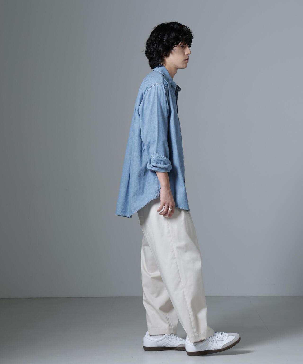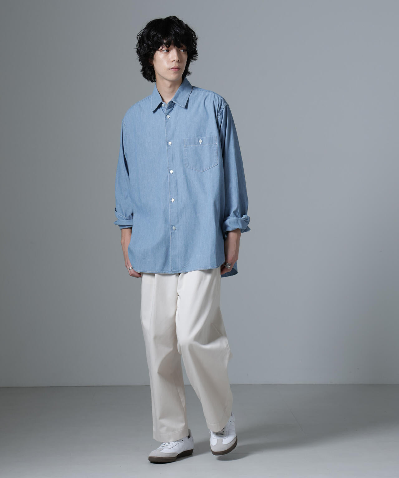 様々なスタイリングに活躍する今シーズンのキーアイテムのデニムシャツ。ステッチを太番手のチェーンステッチにすることで、縫い縮みさせ本格的なデニムシャツに仕上げた1着。ワークウェアのデザインをモチーフにしたデイリー使いにおすすめのアイテムです。