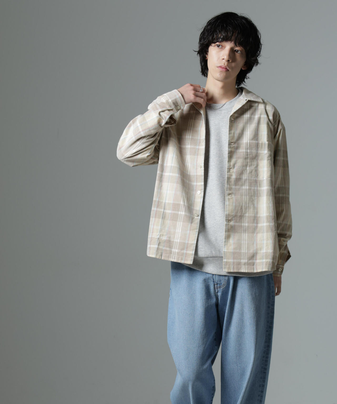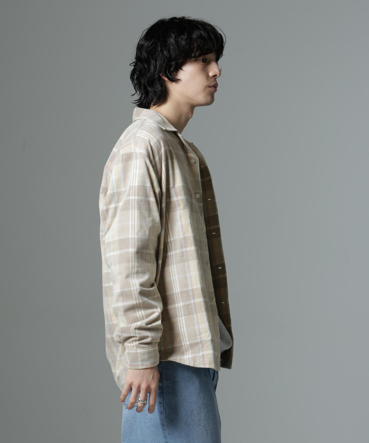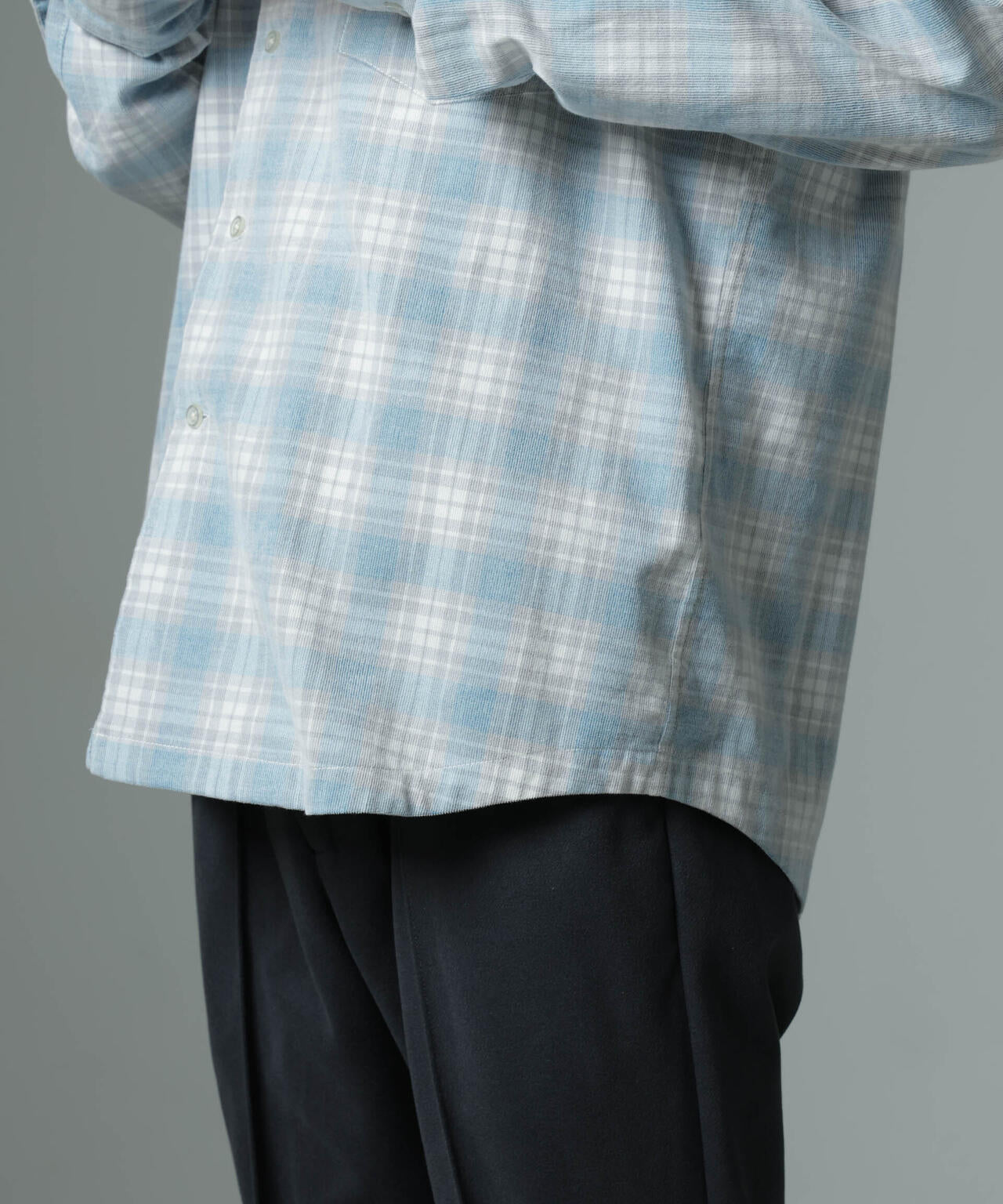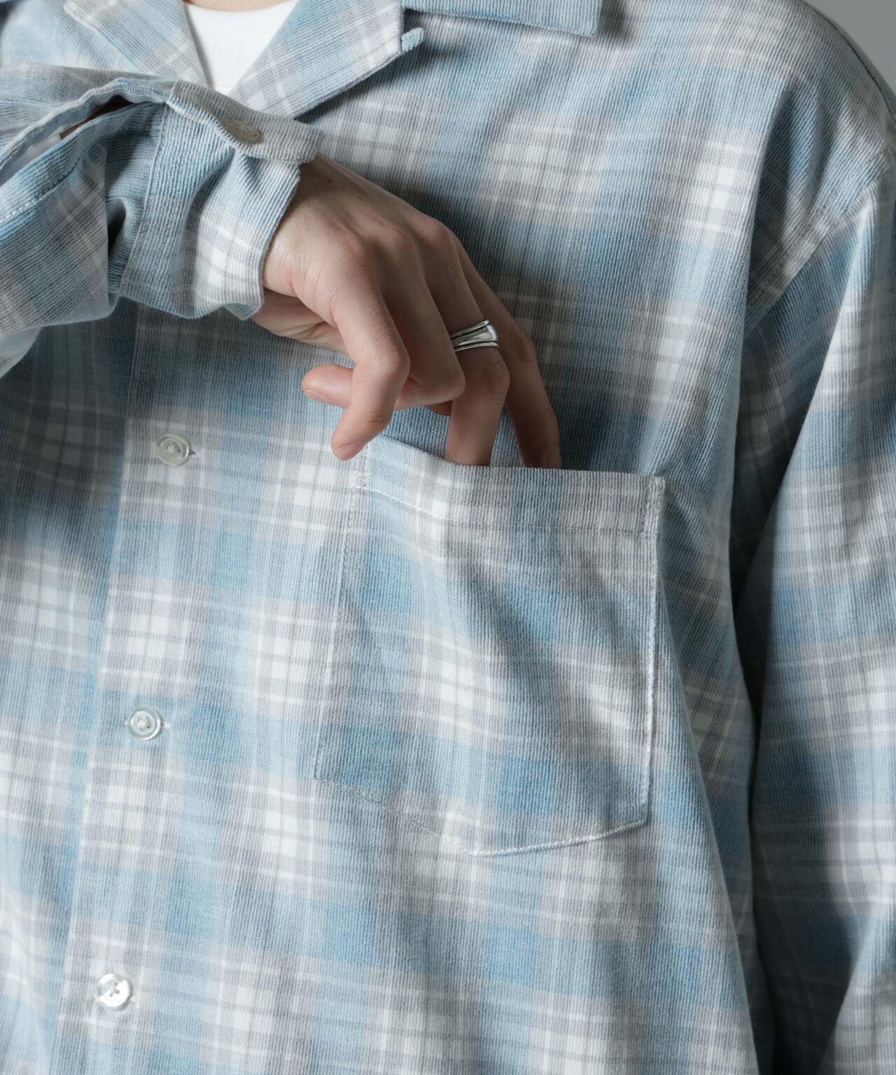 シャツコールという薄手のコーデュロイ生地を使用したチェックシャツ。羽織としても活躍し、くすみ感のあるおすすめのアイテムです。