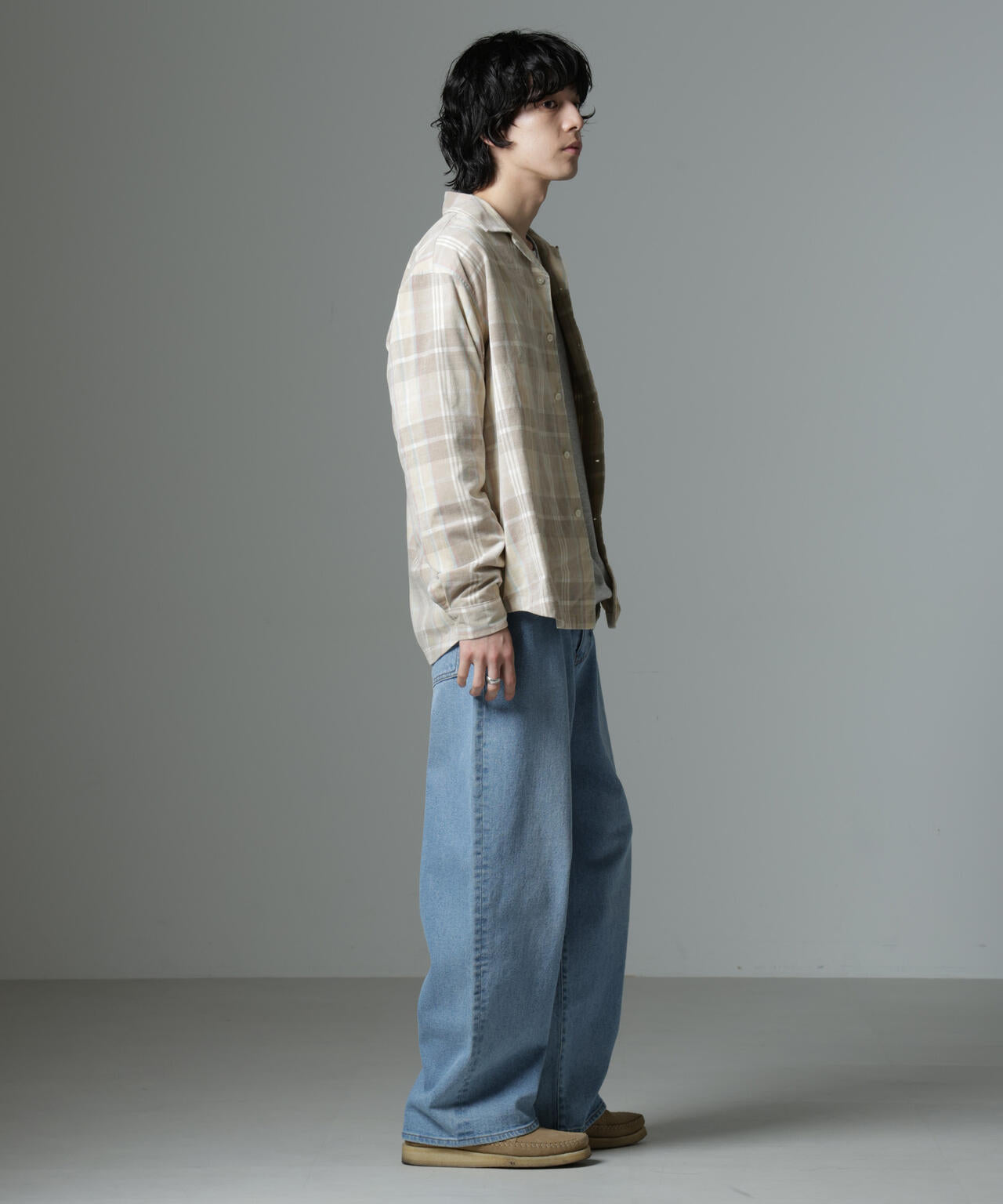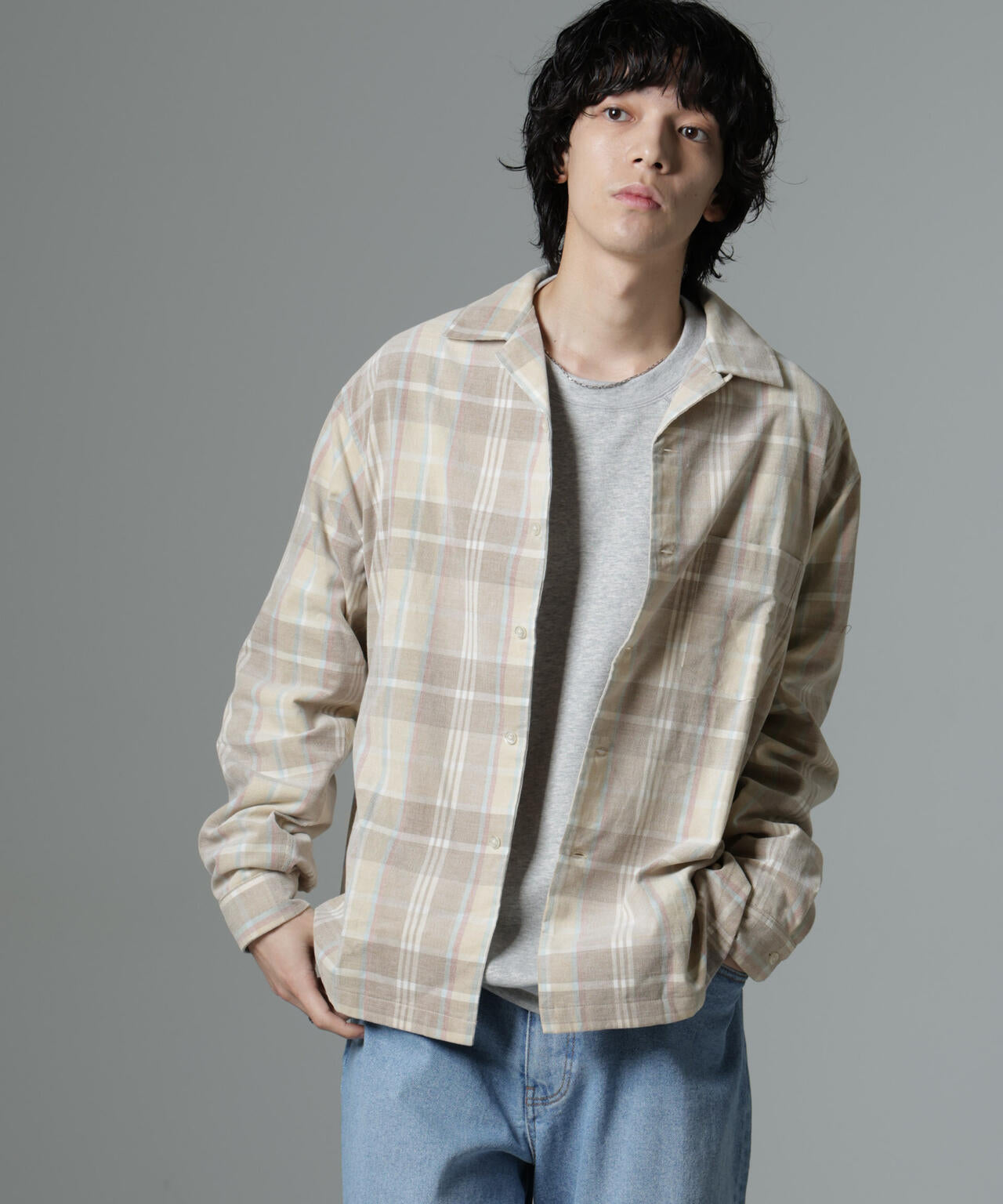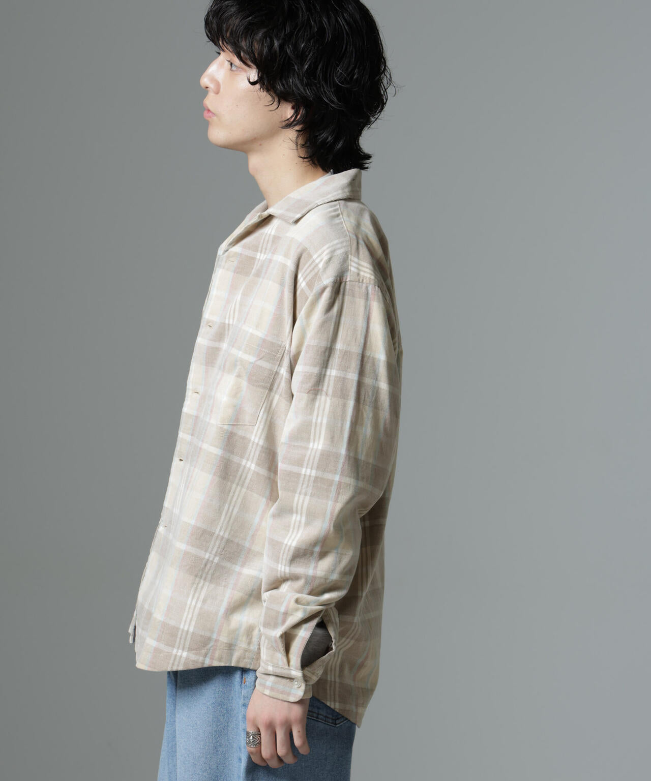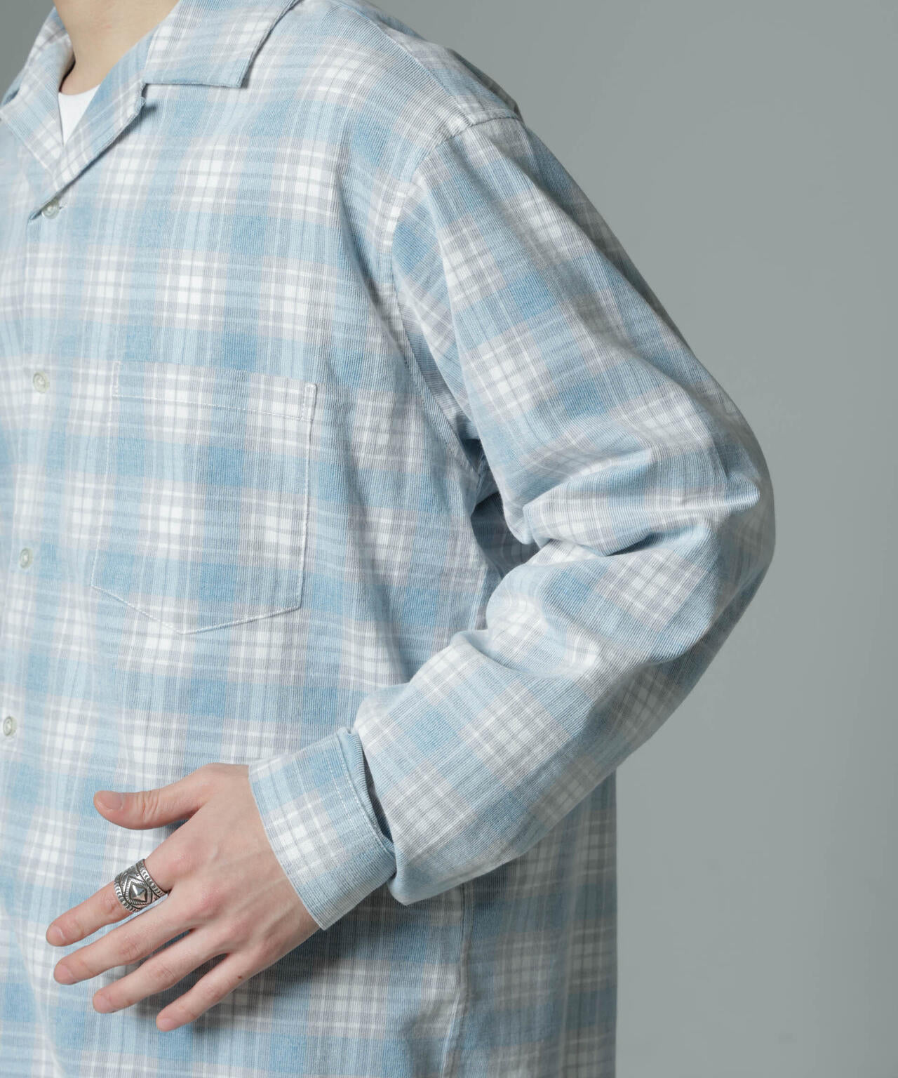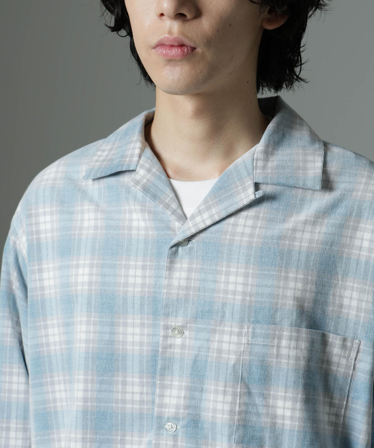 シャツコールという薄手のコーデュロイ生地を使用したチェックシャツ。羽織としても活躍し、くすみ感のあるおすすめのアイテムです。