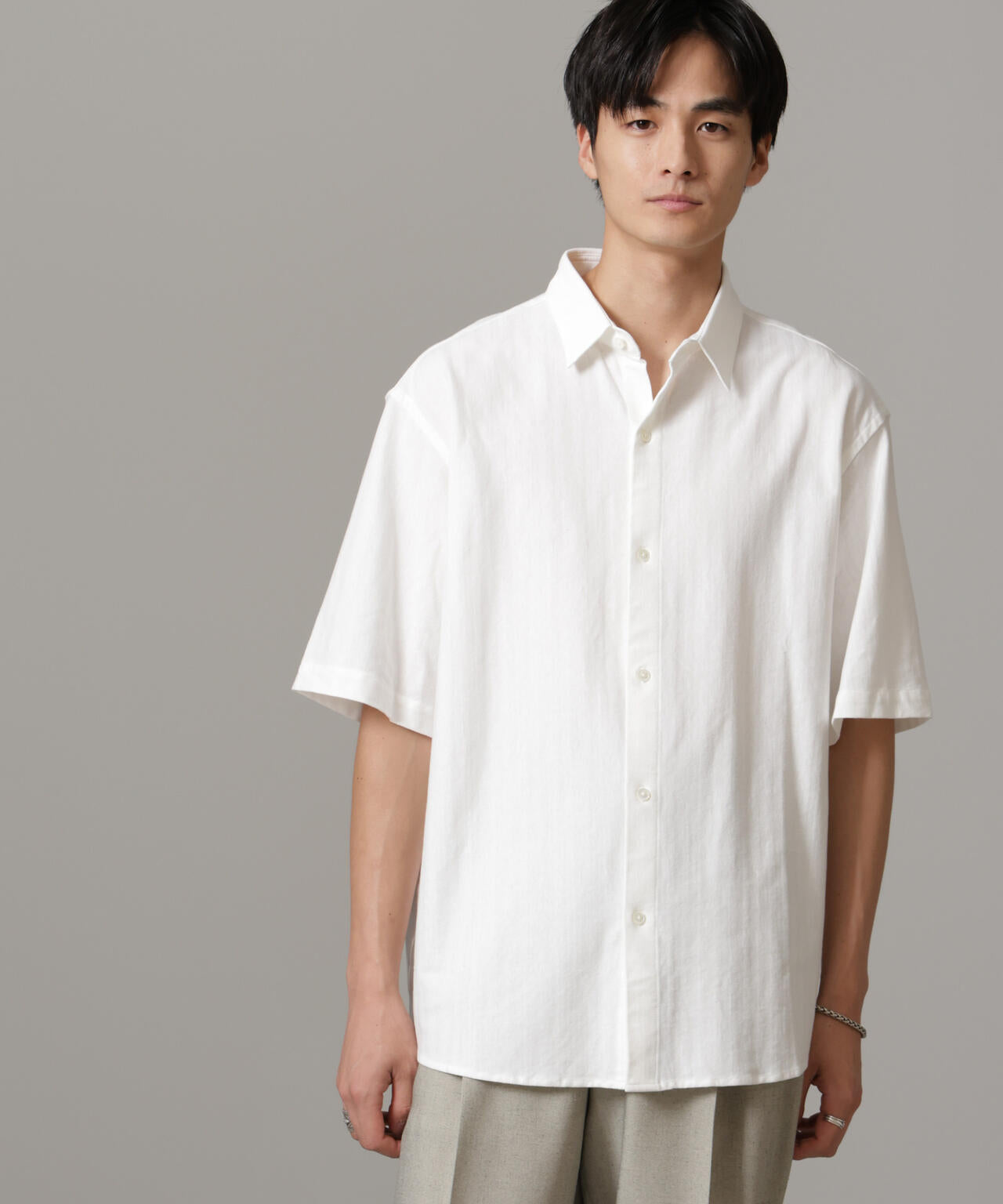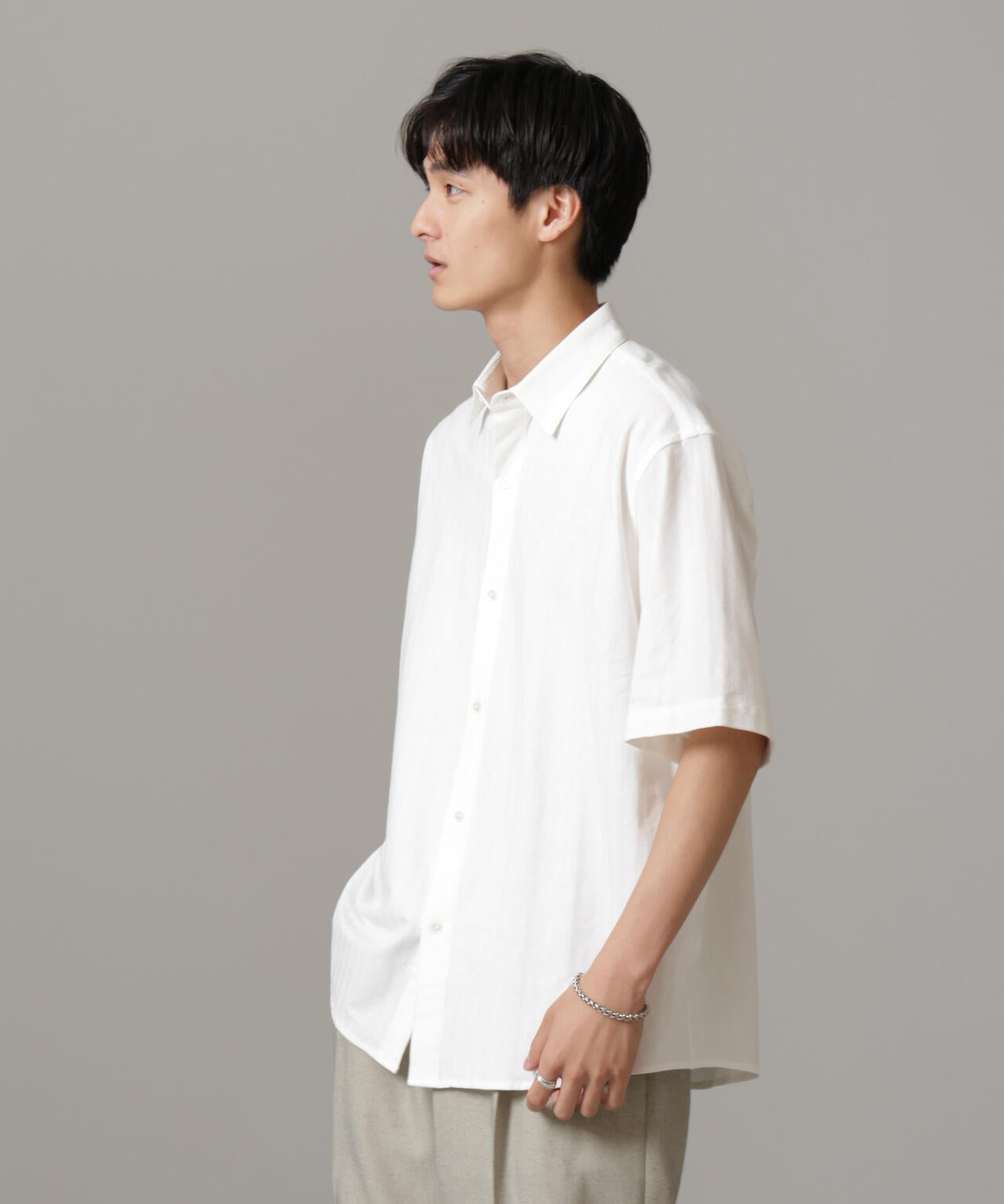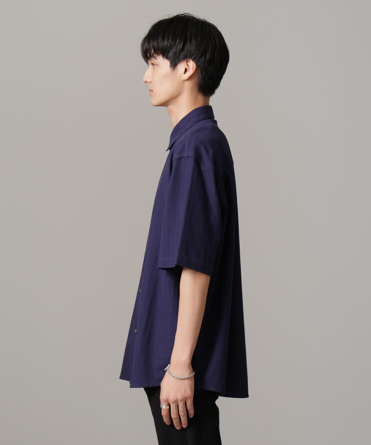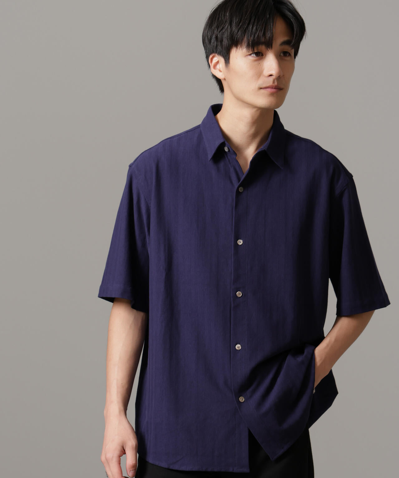 適度なワイドシルエットを採用したハーフスリーブシャツ。
