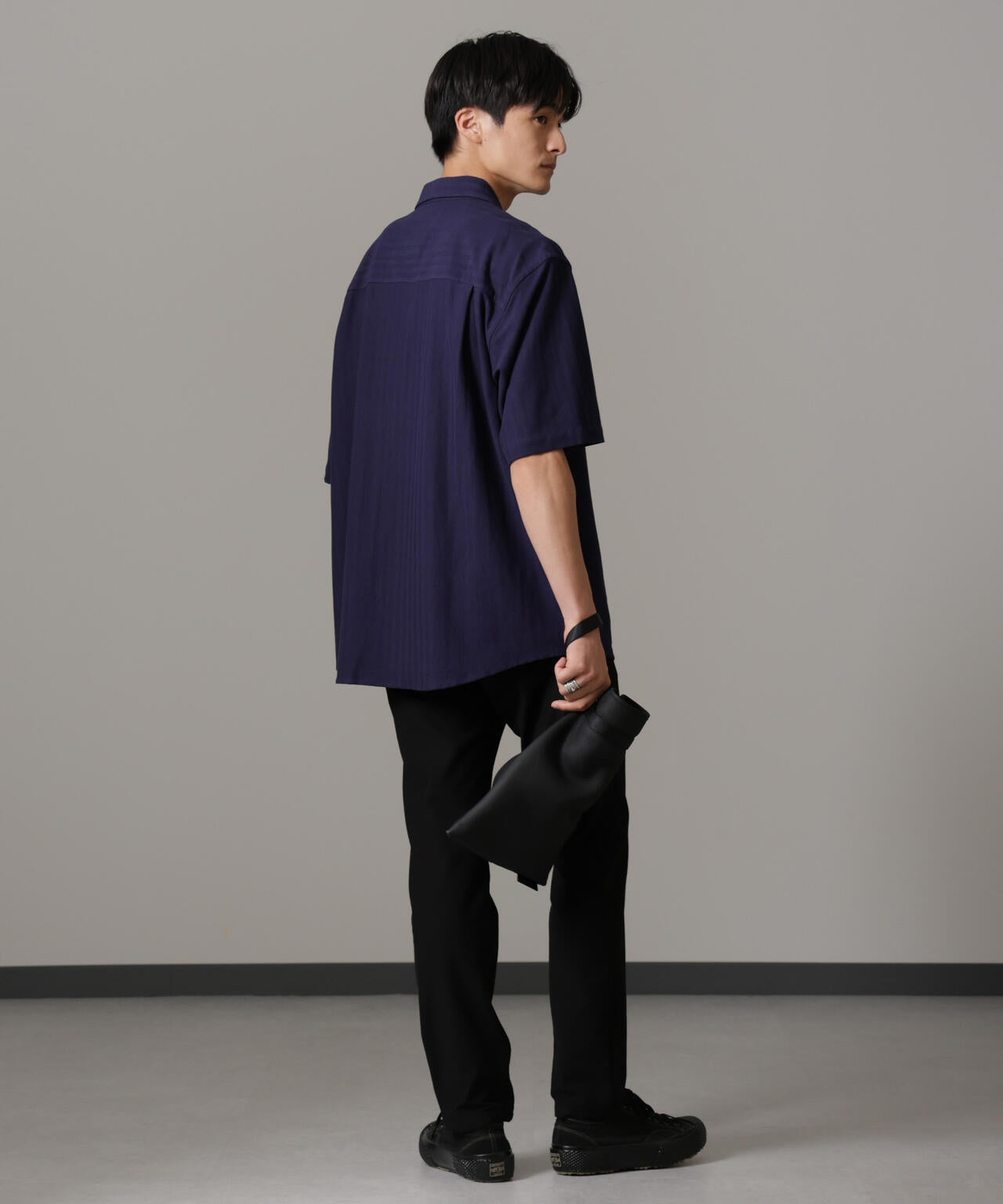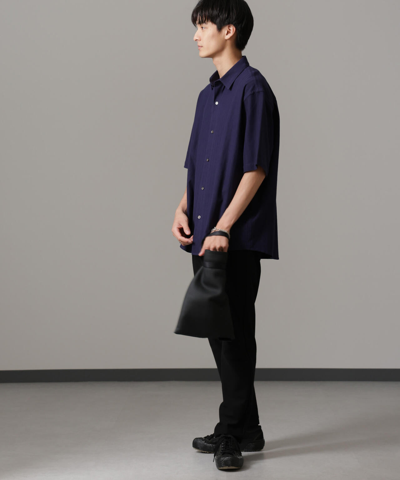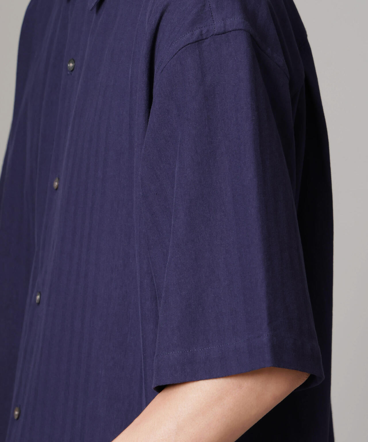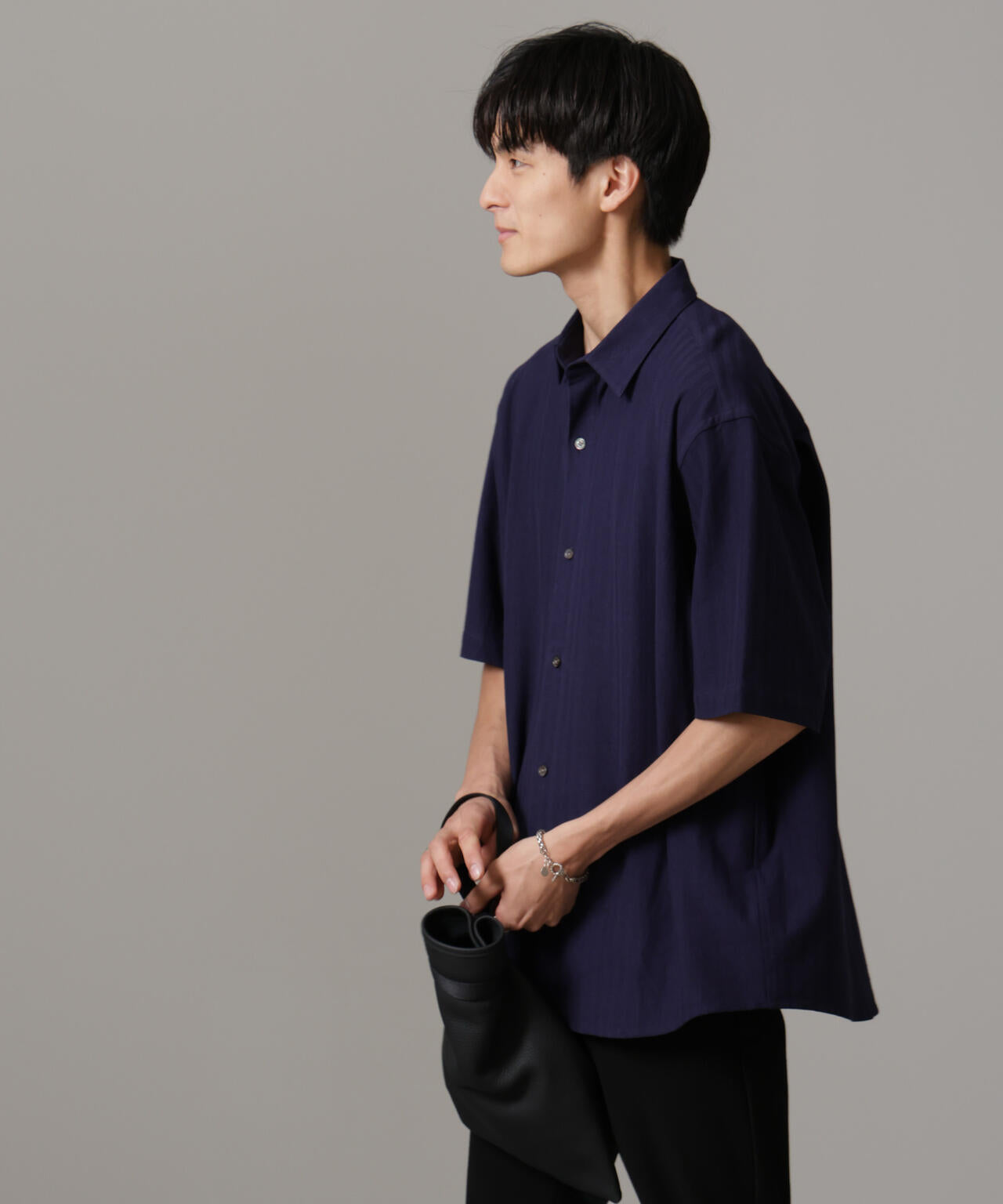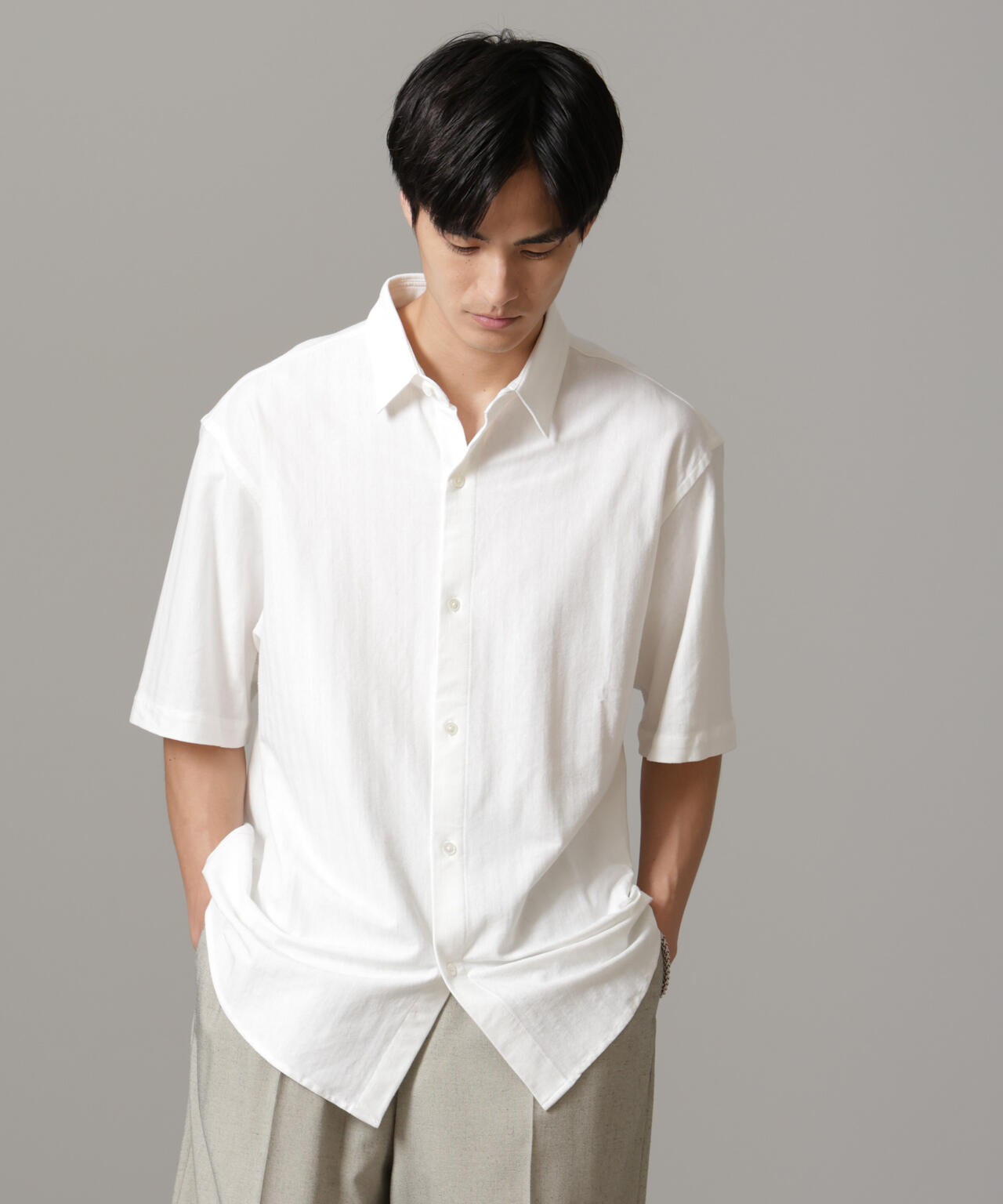 適度なワイドシルエットを採用したハーフスリーブシャツ。