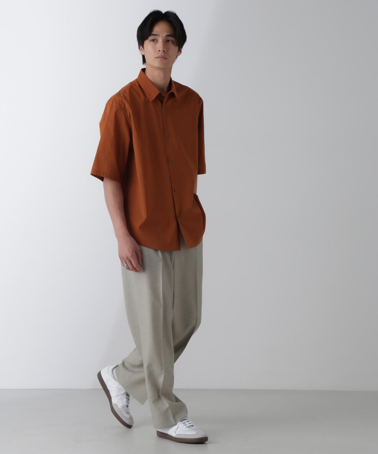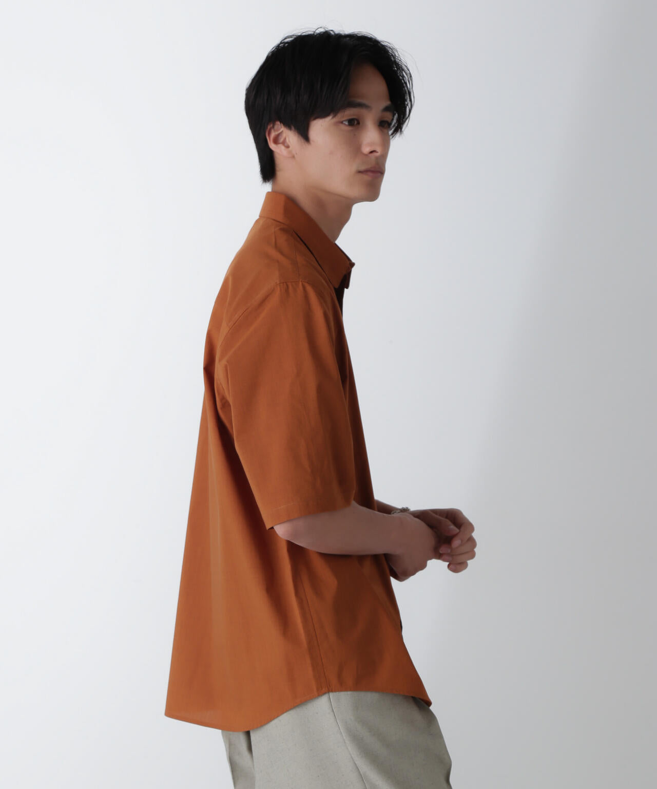 様々なスタイルに合わせやすいシンプルなデザインのレギュラーカラーシャツ。