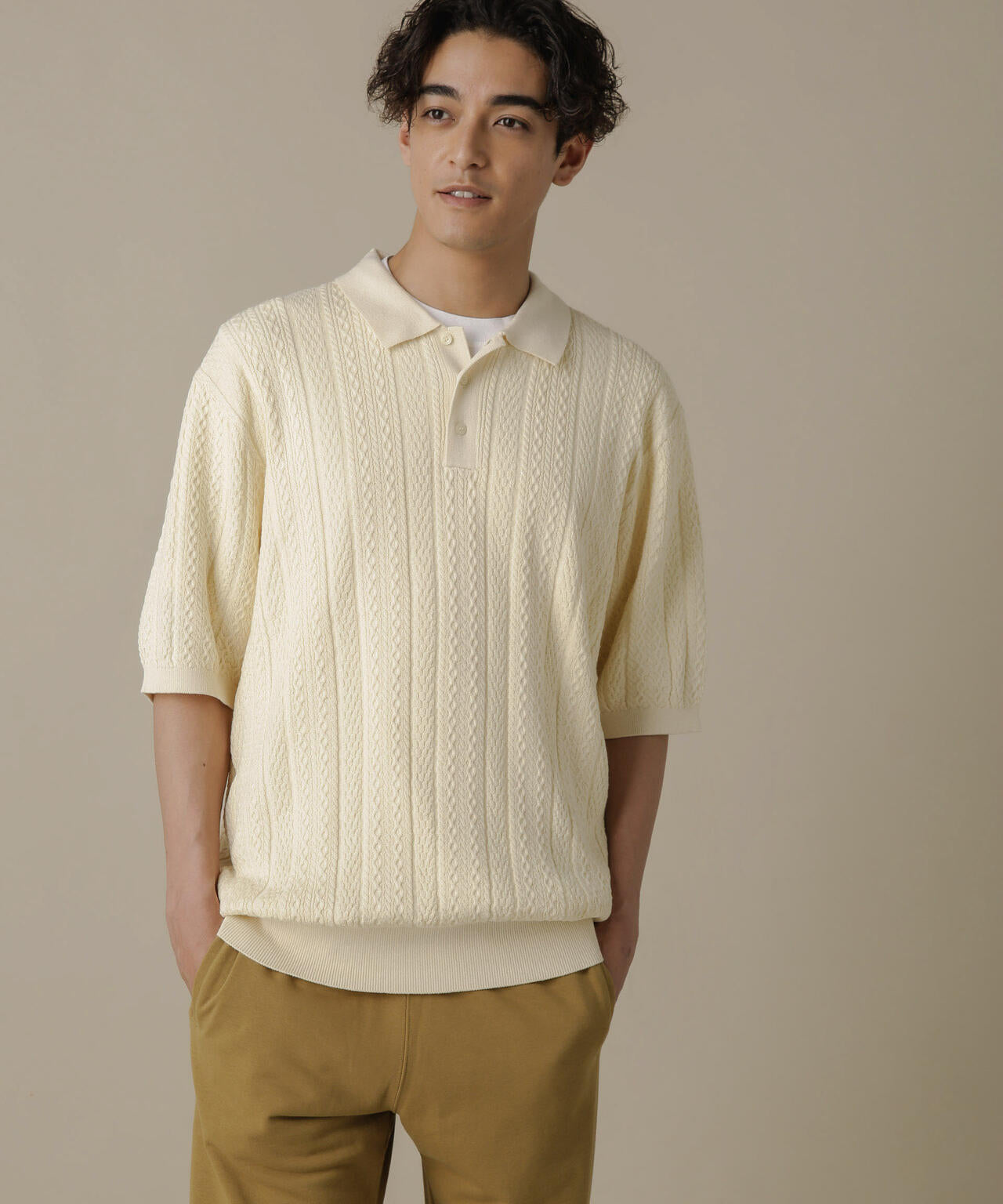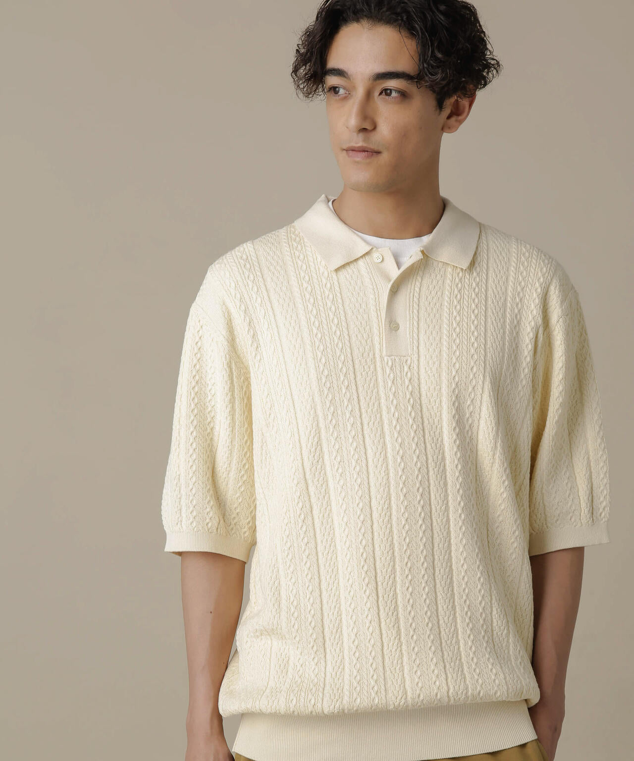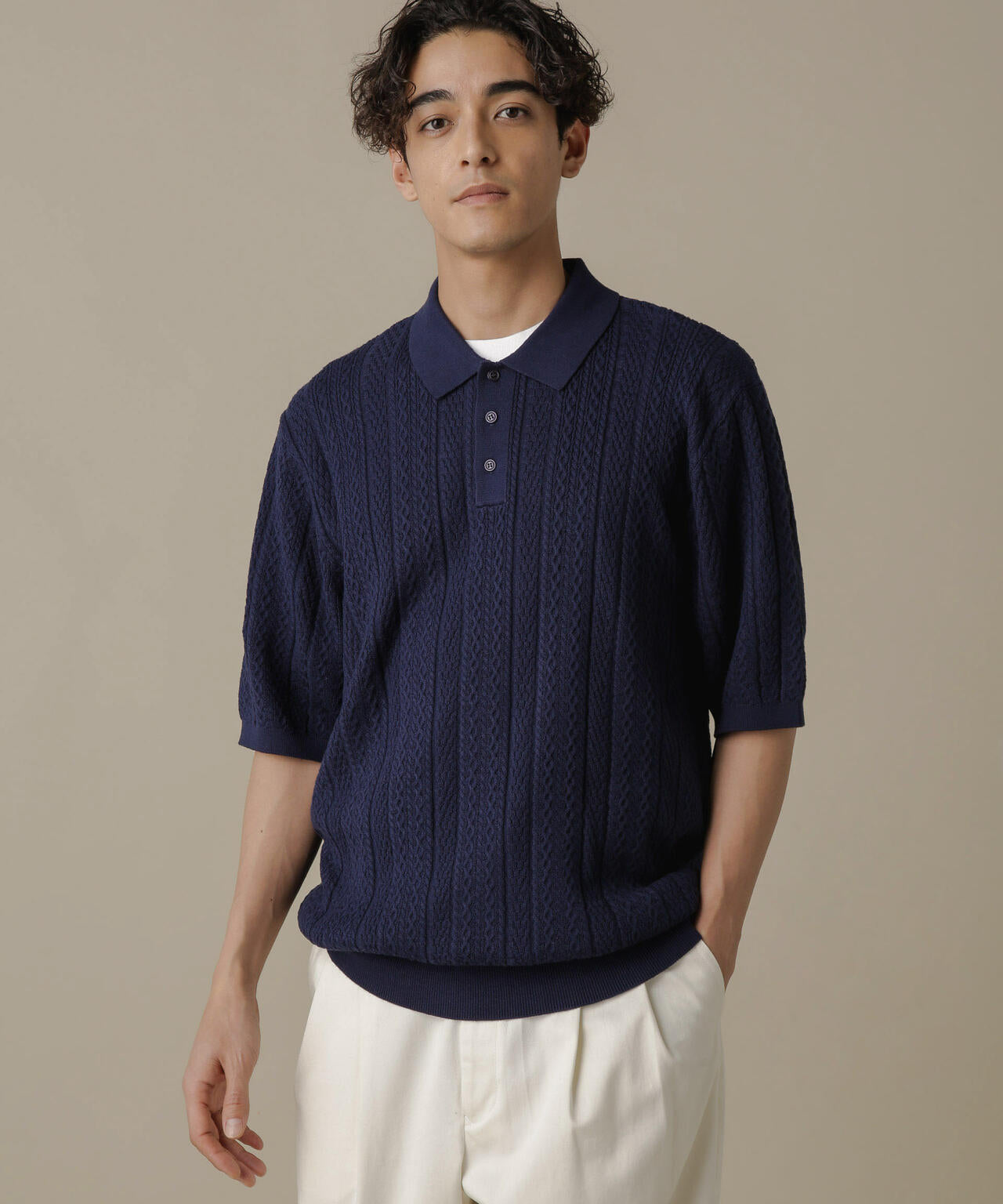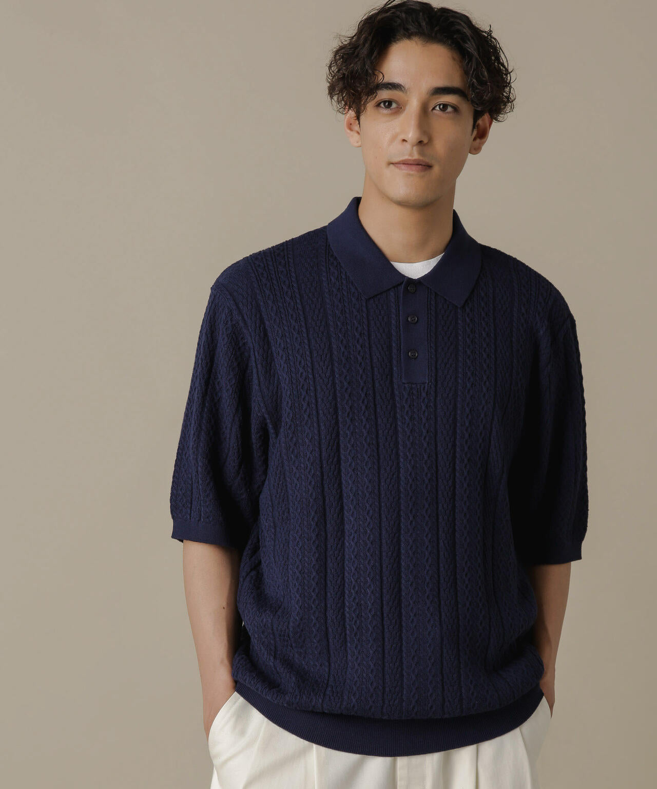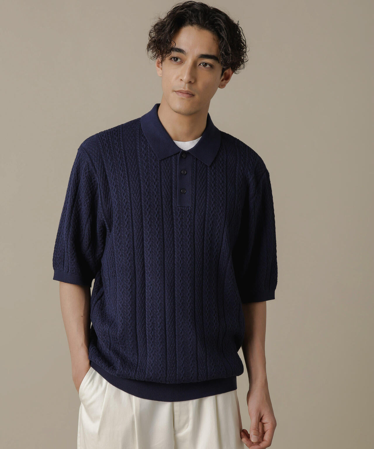 「NJ/CLUB」HOMESTOCKケーブルニットポロシャツ