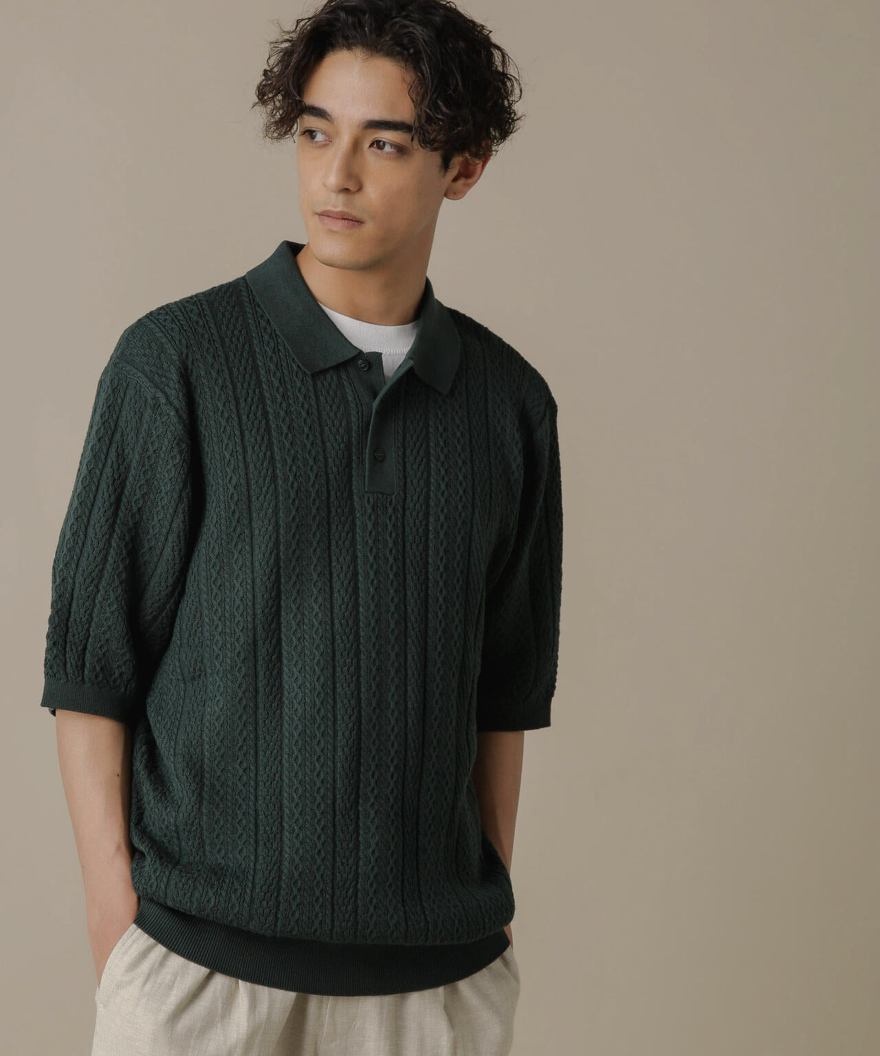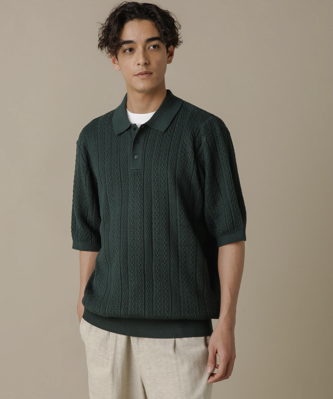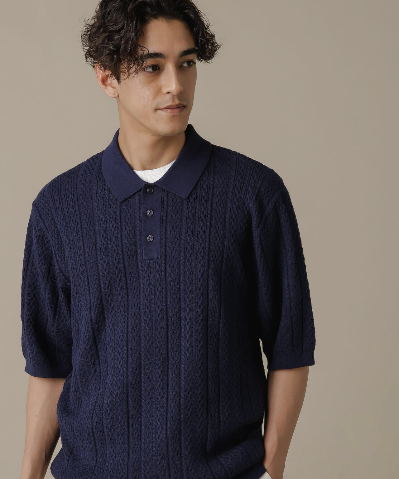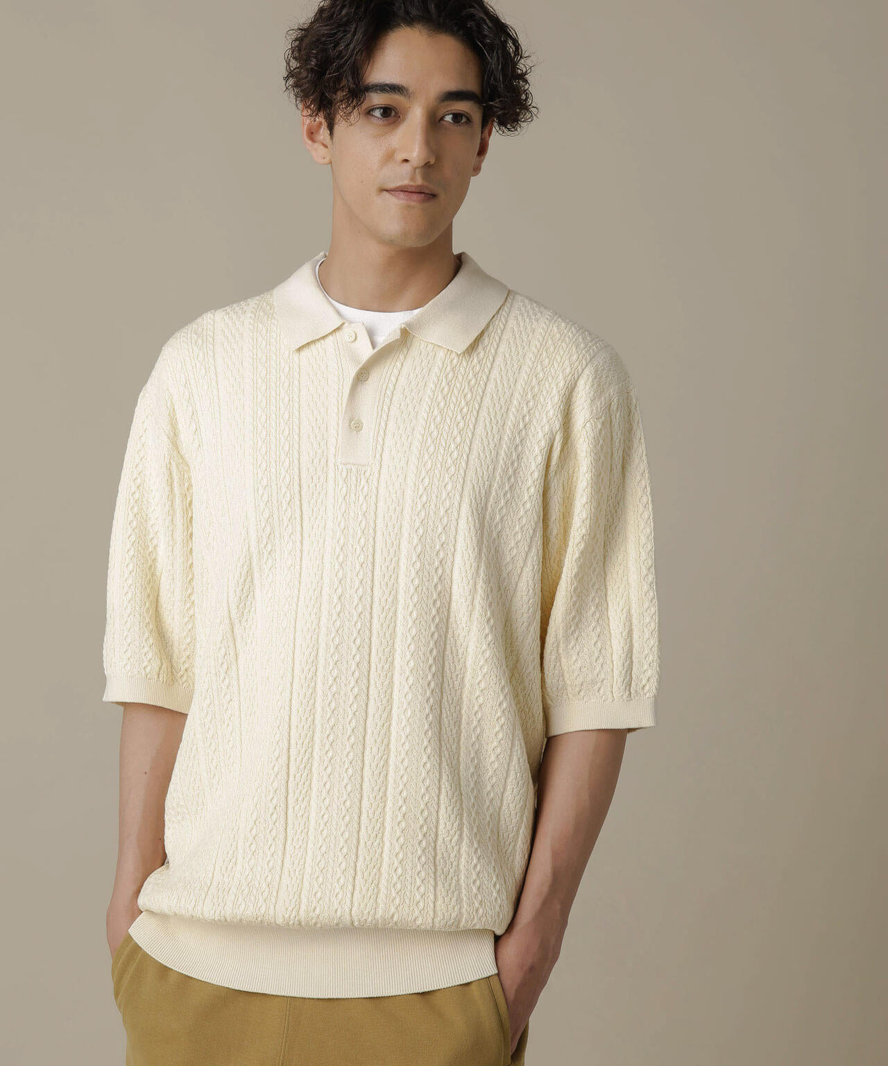 「NJ/CLUB」HOMESTOCKケーブルニットポロシャツ