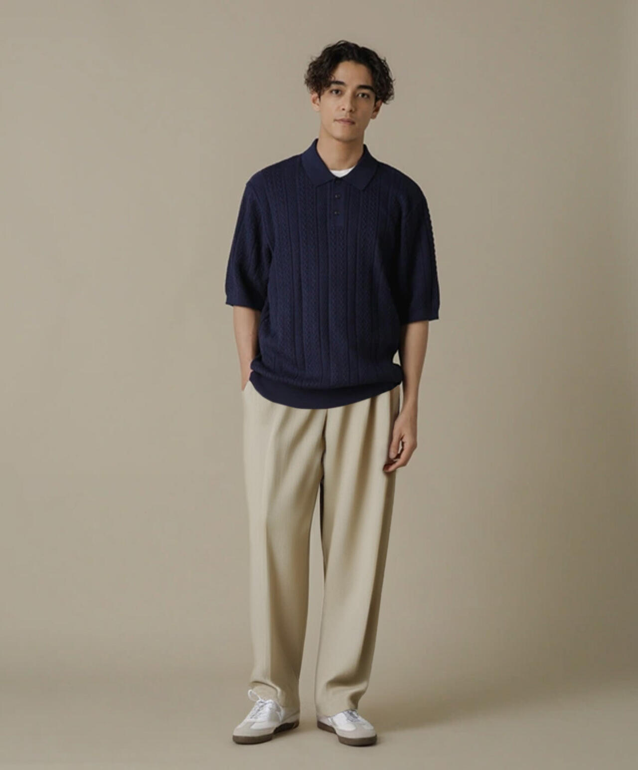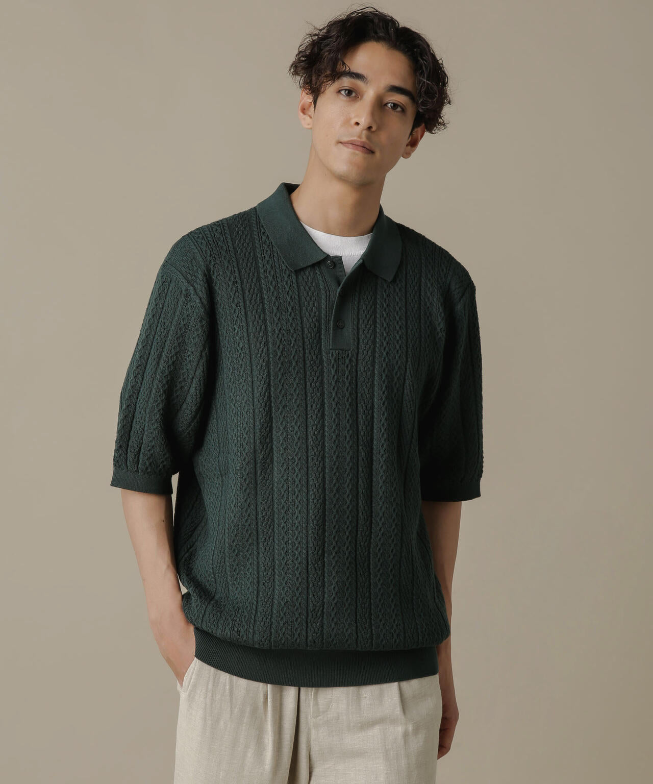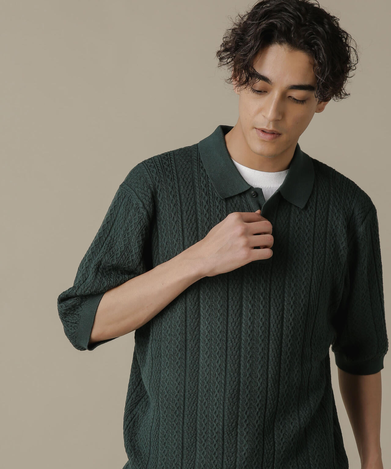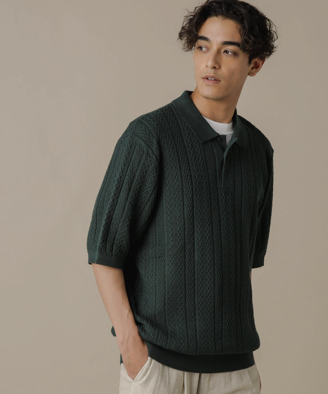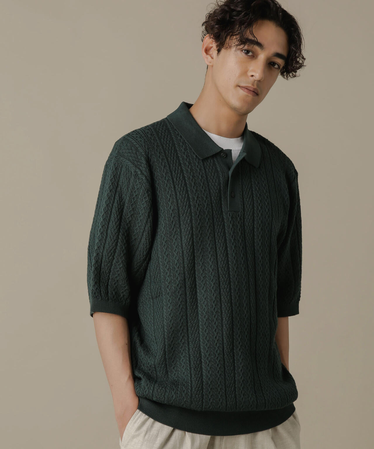 「NJ/CLUB」HOMESTOCKケーブルニットポロシャツ