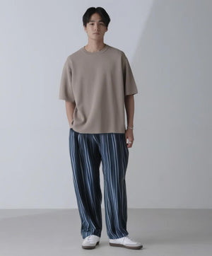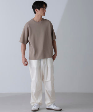 ・レーヨン混のミラノリブ半袖クルーネック