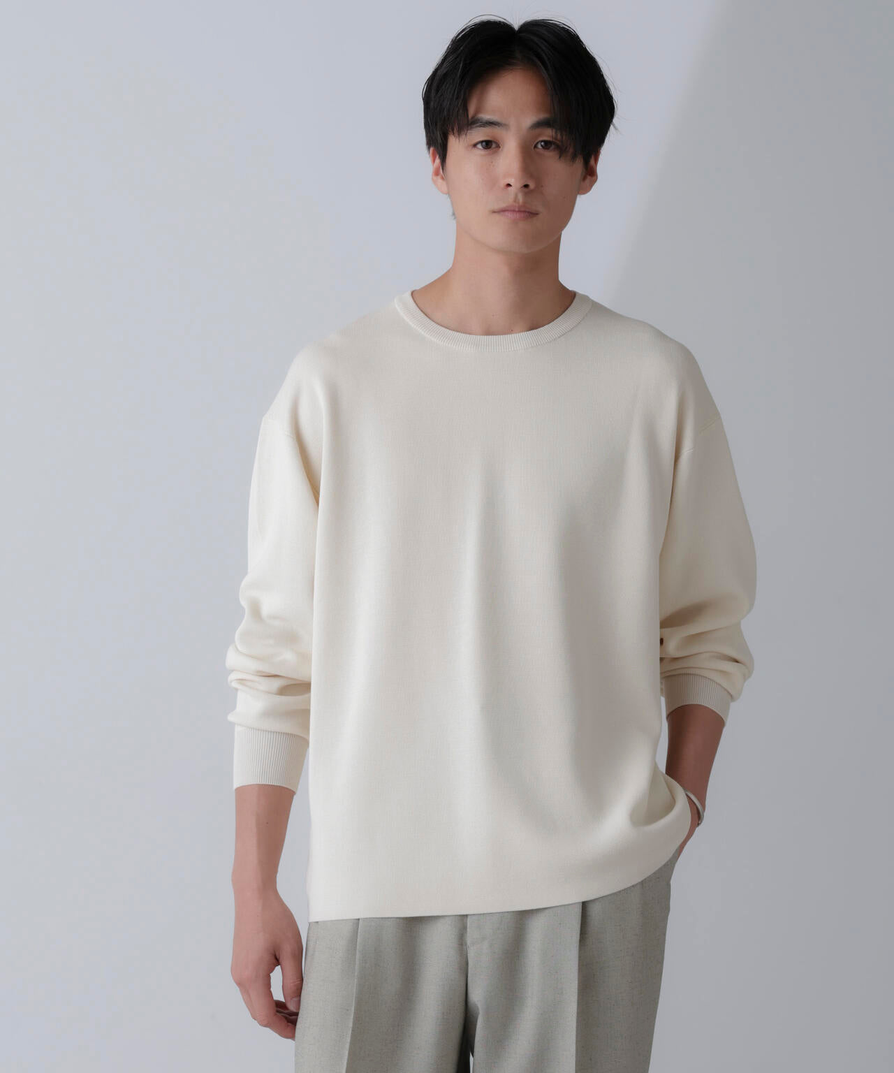 14ゲージミラノリブニット クルーネック 長袖(手洗い可能)