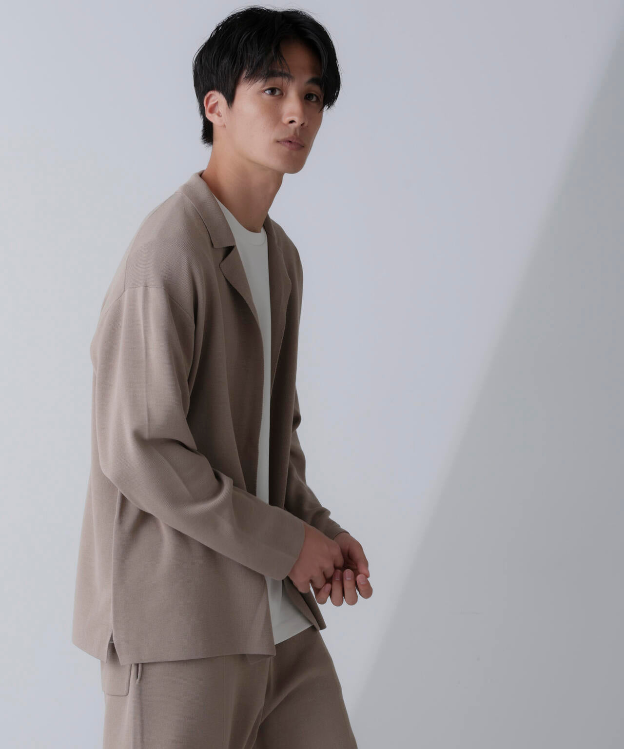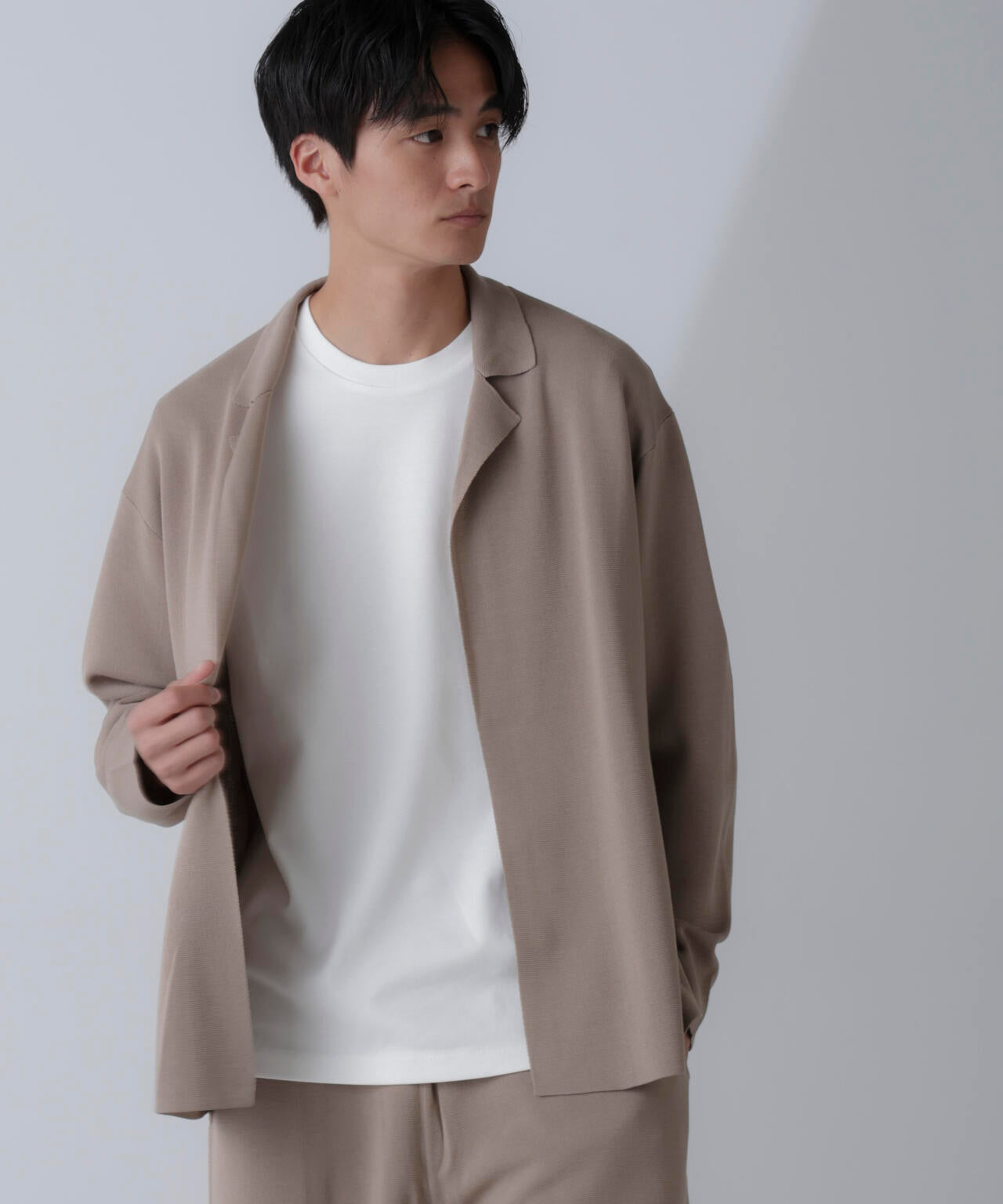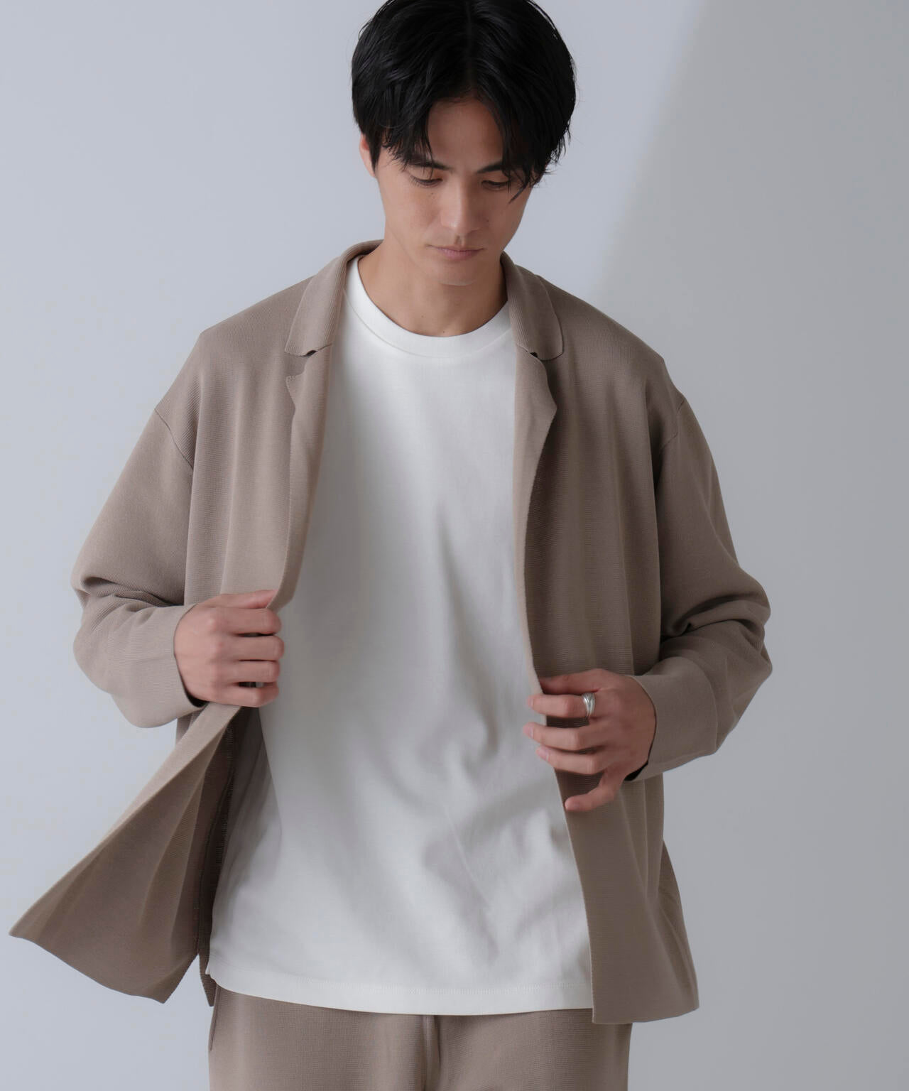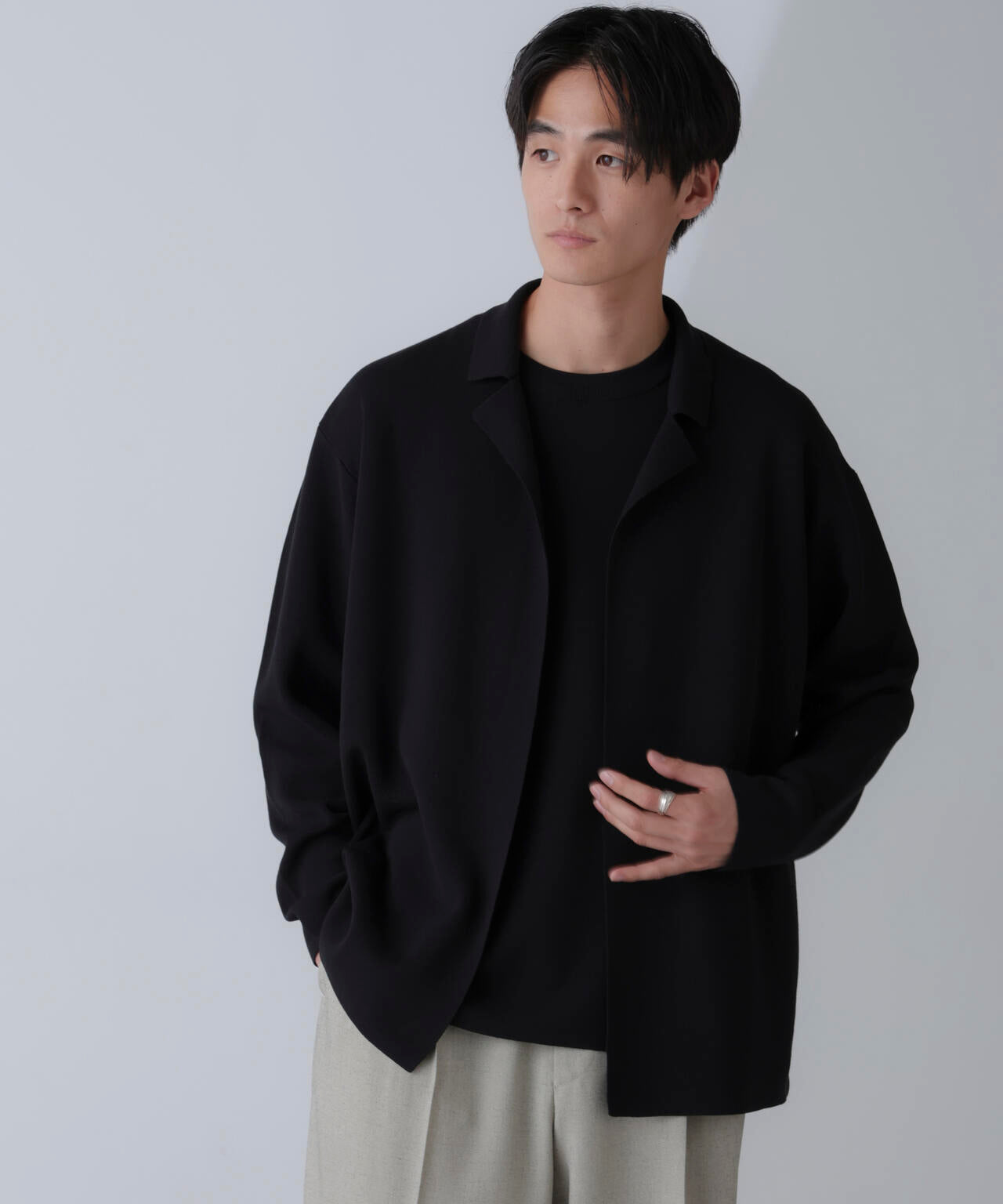 14ゲージミラノリブニット ボタンレスジャケット(手洗い可能)