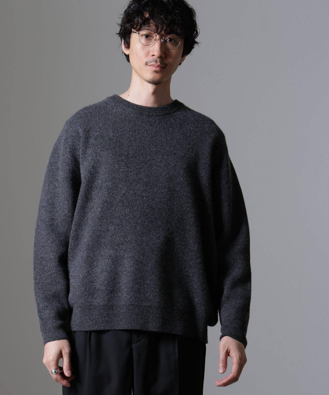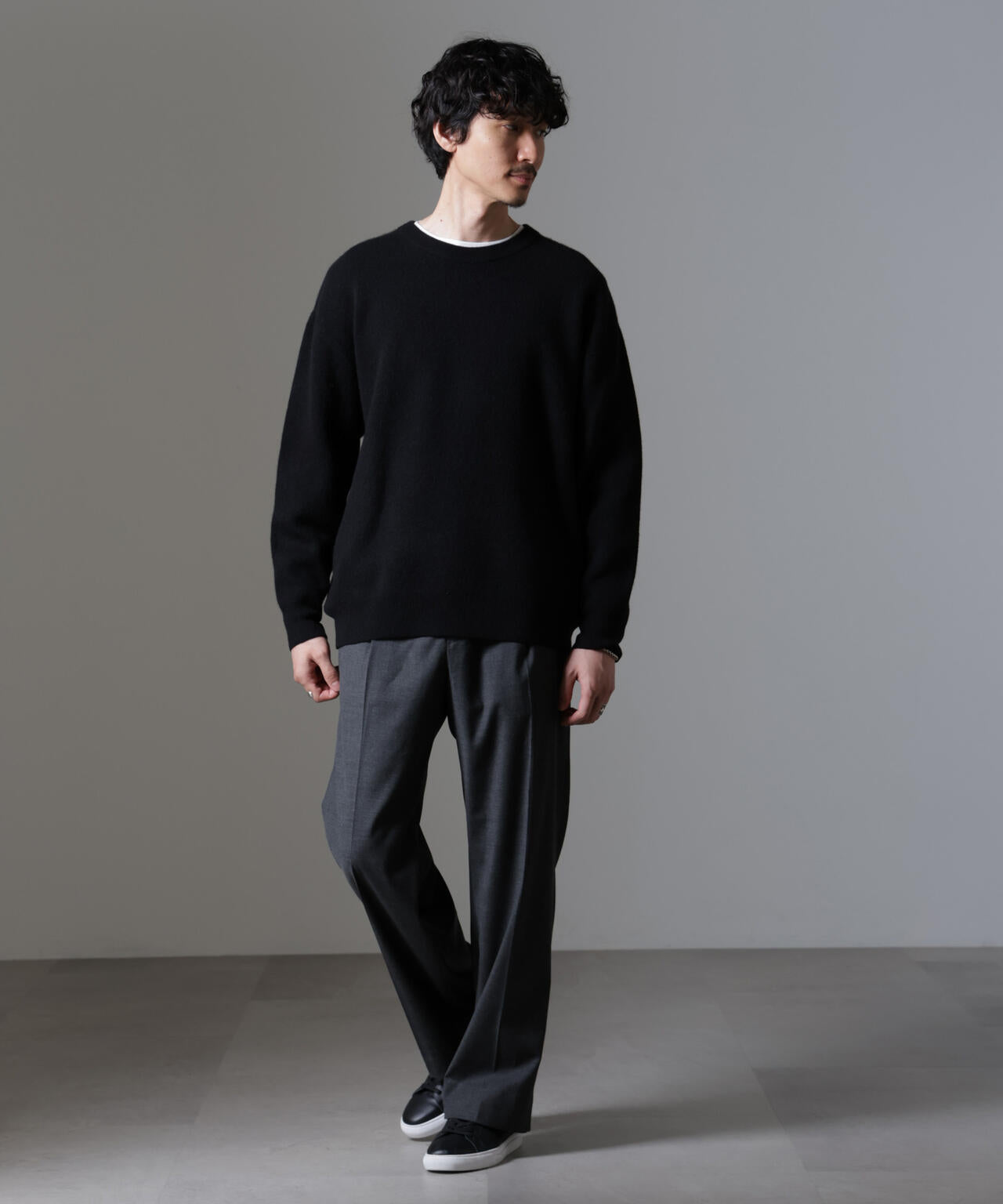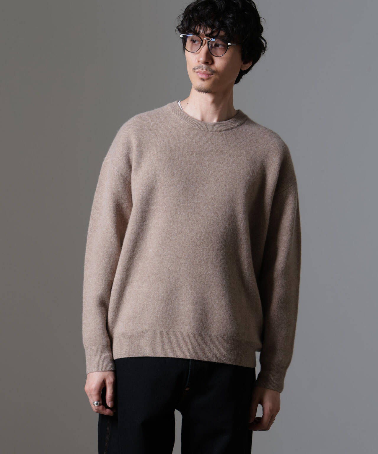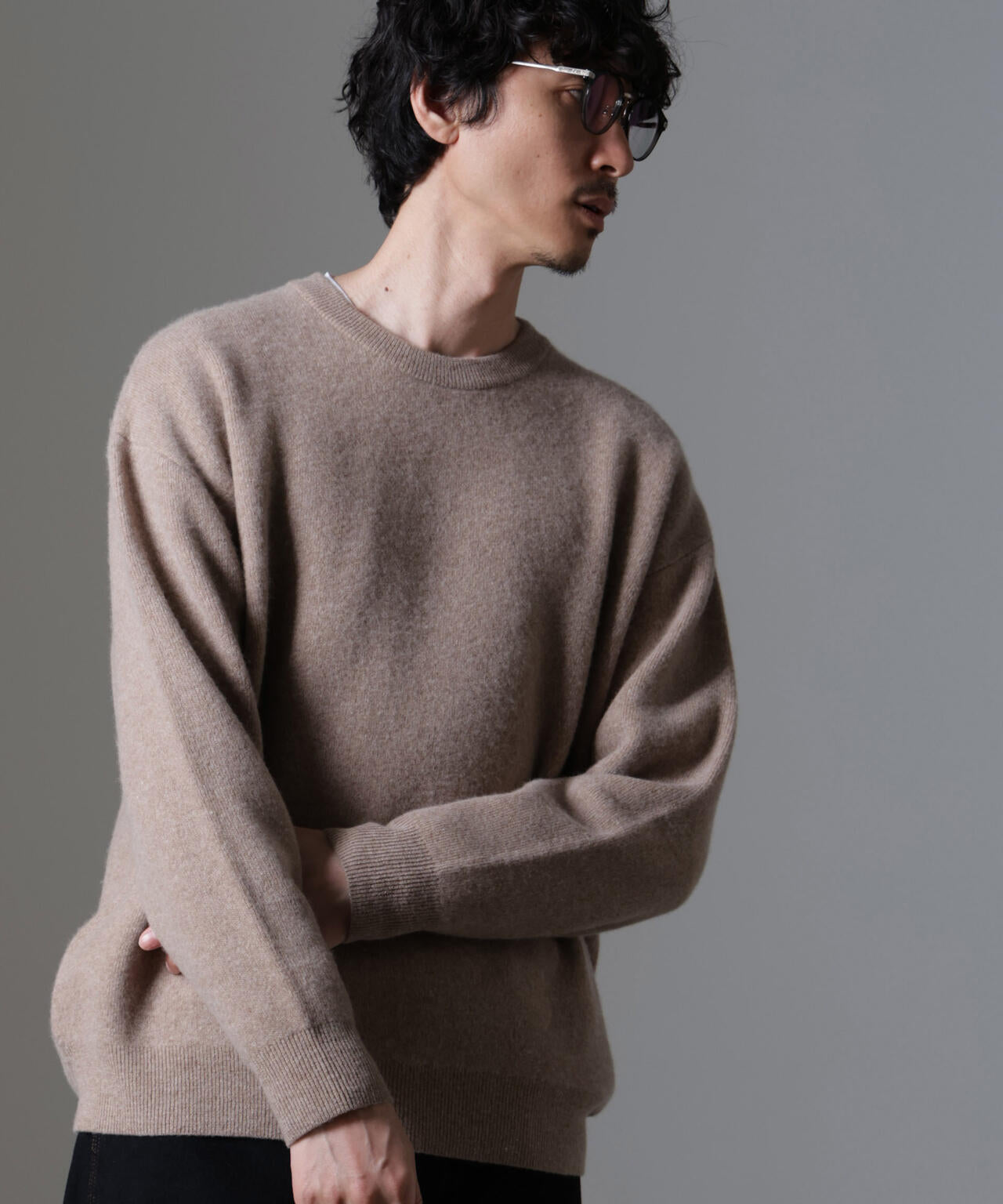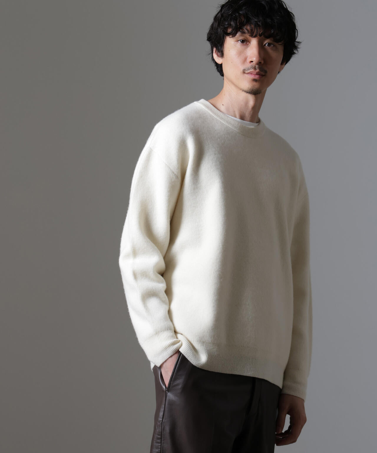 今年らしいニュートラルカラーでまとめたAQUAニットシリーズのクルーネックプルオーバー。厳選された糸を使用した、カシミア混のウールニット。ベーシックながらもややリラックス感のあるシルエットが、今らしさを演出する今季おすすめの1着です。