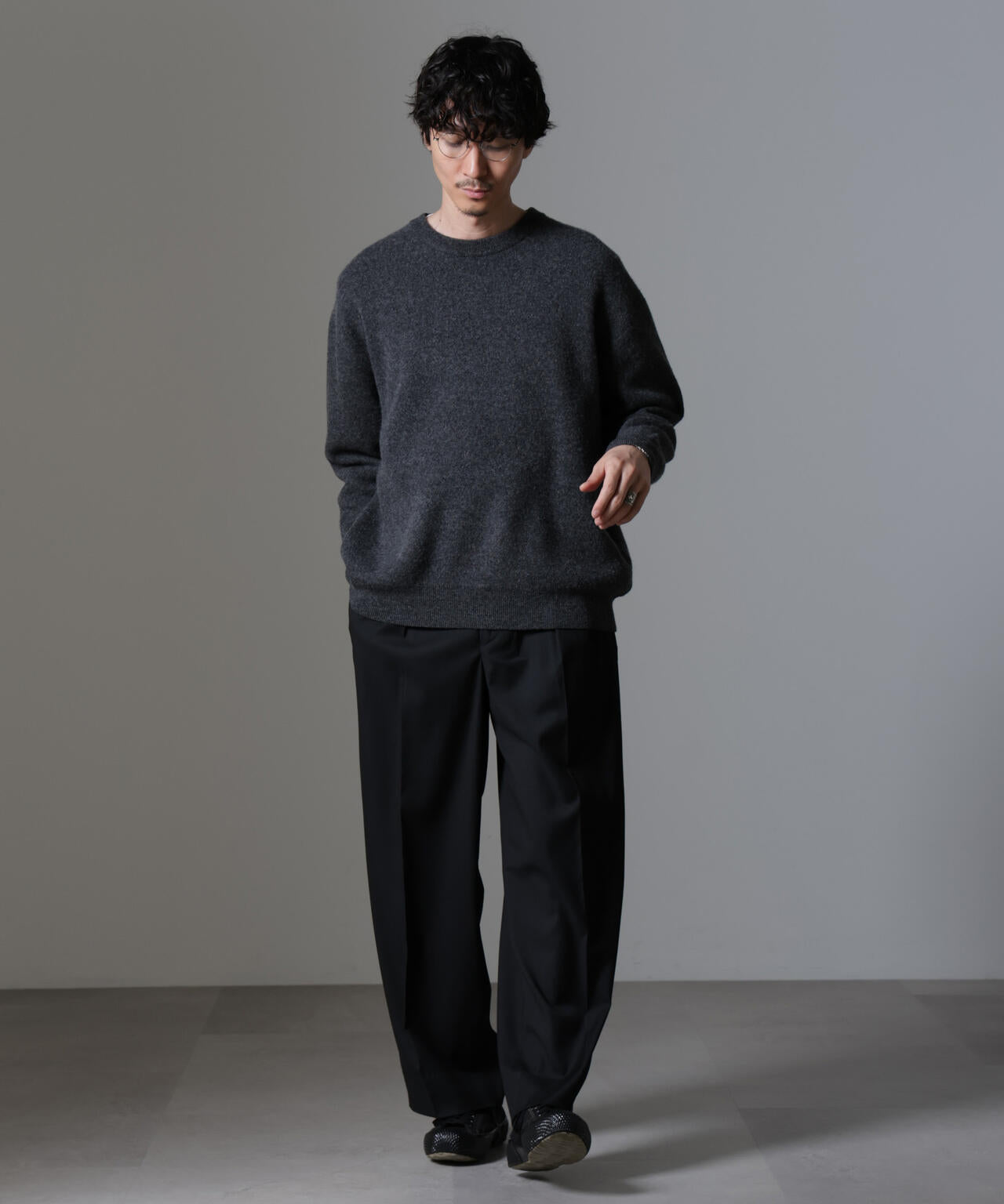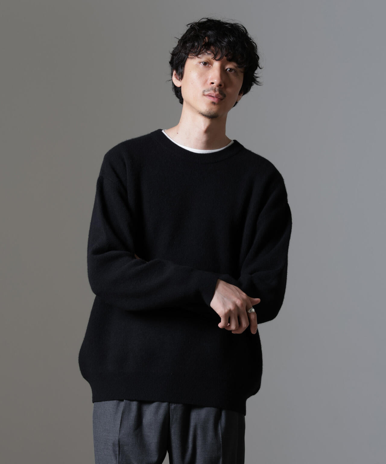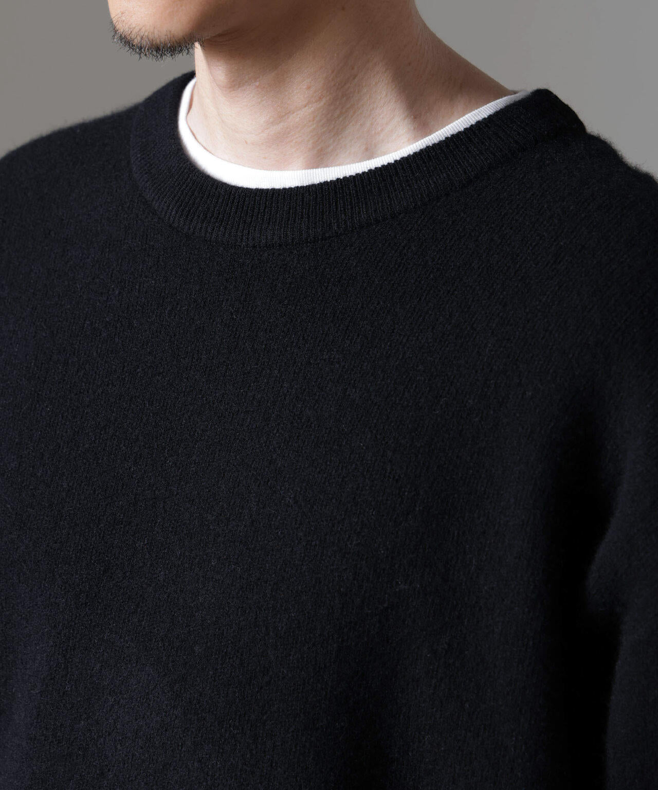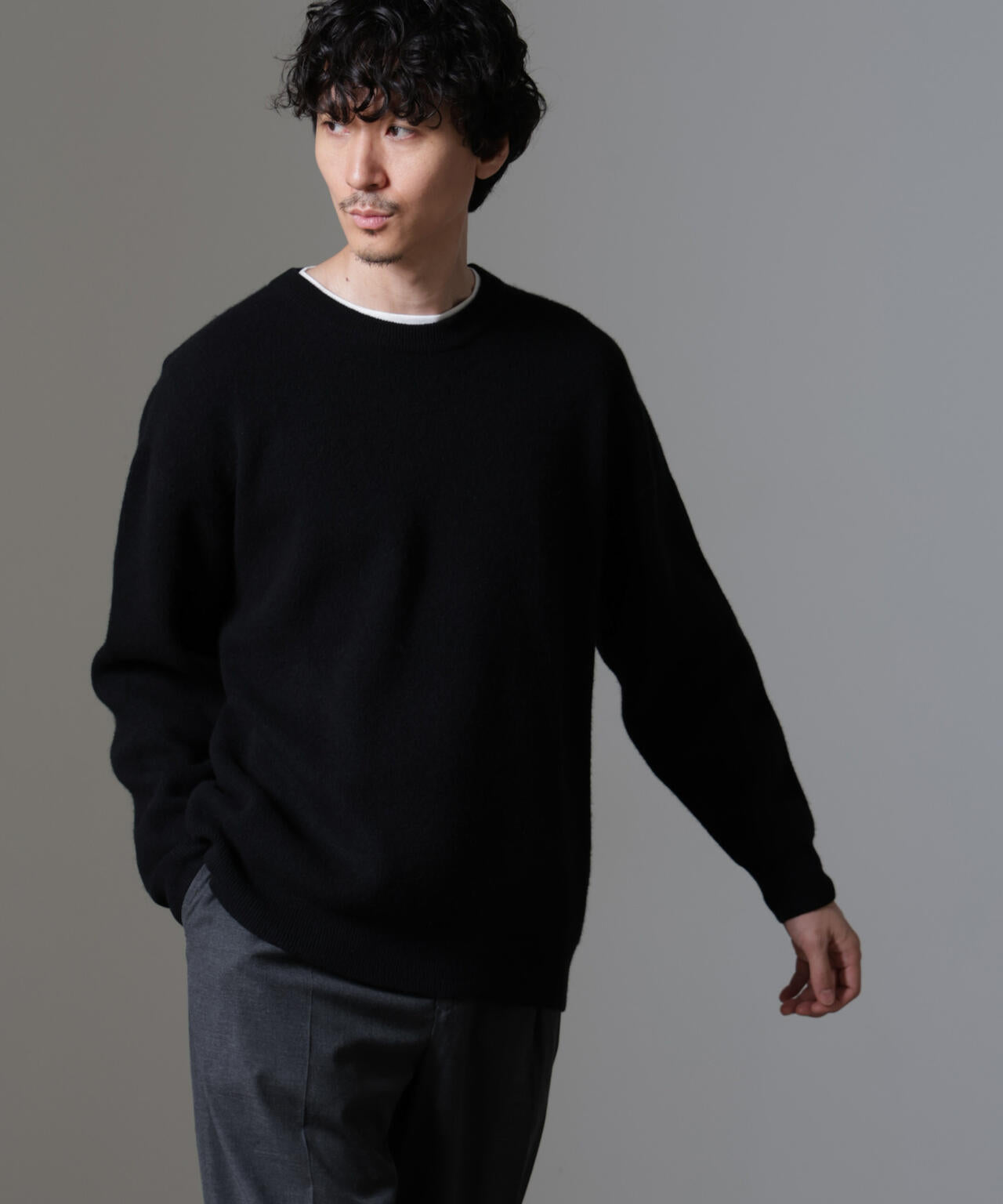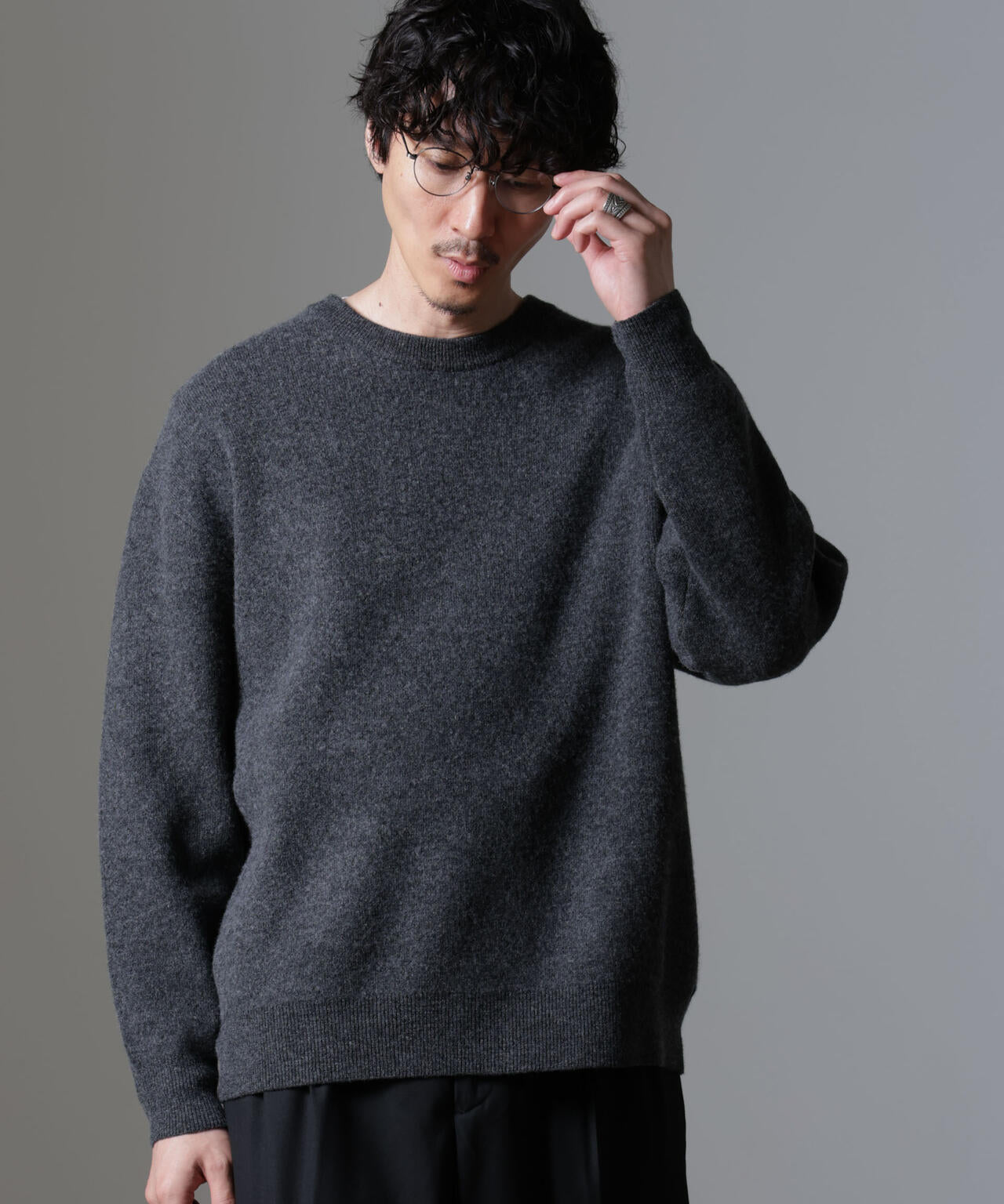 今年らしいニュートラルカラーでまとめたAQUAニットシリーズのクルーネックプルオーバー。厳選された糸を使用した、カシミア混のウールニット。ベーシックながらもややリラックス感のあるシルエットが、今らしさを演出する今季おすすめの1着です。