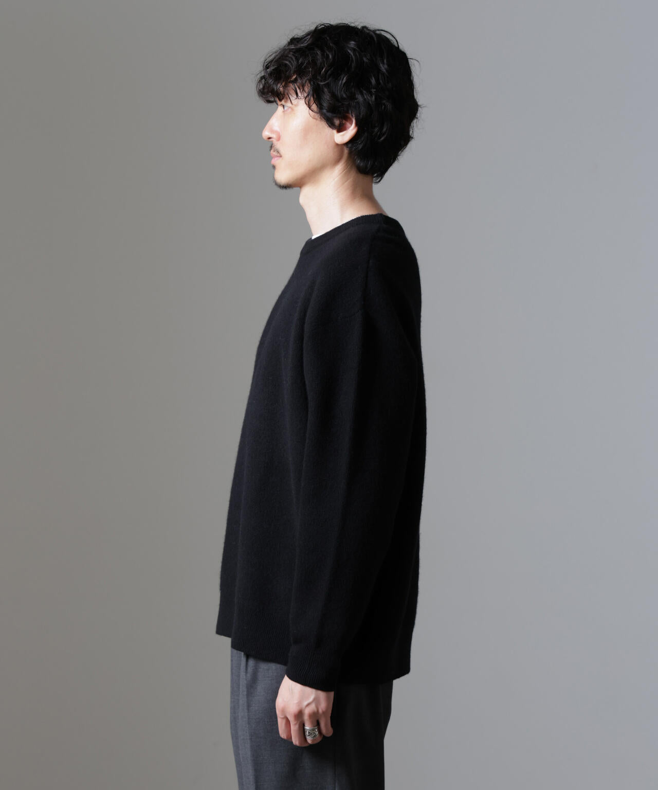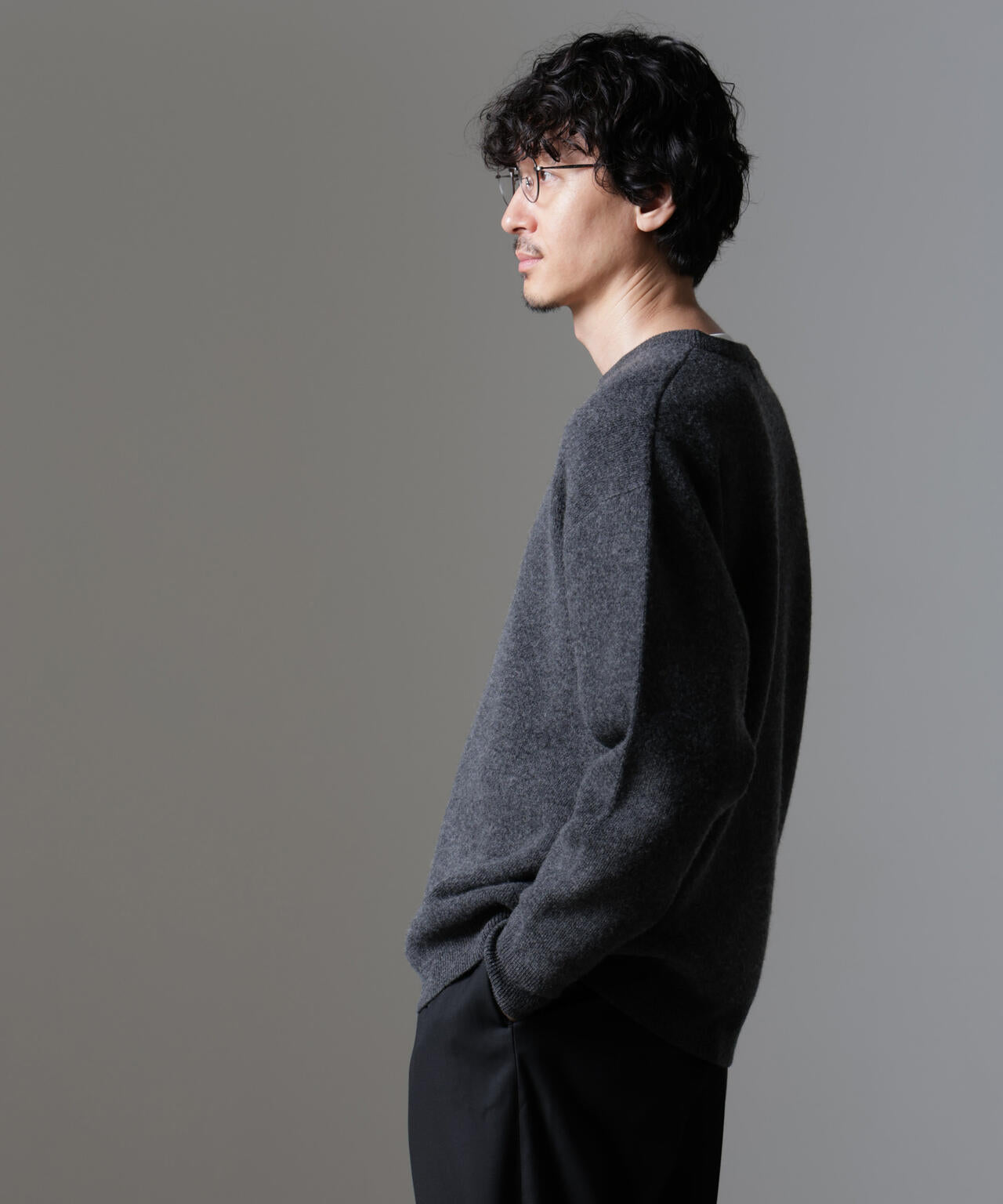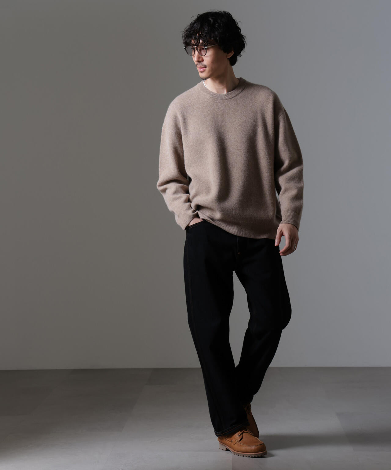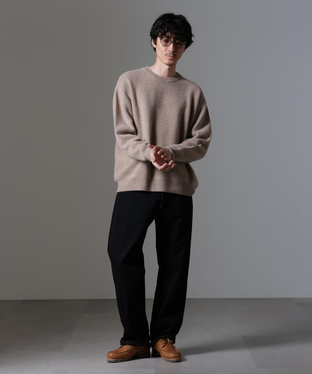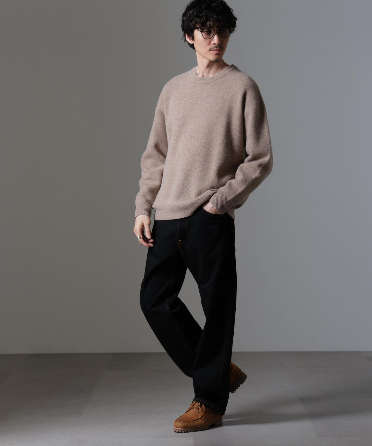 今年らしいニュートラルカラーでまとめたAQUAニットシリーズのクルーネックプルオーバー。厳選された糸を使用した、カシミア混のウールニット。ベーシックながらもややリラックス感のあるシルエットが、今らしさを演出する今季おすすめの1着です。