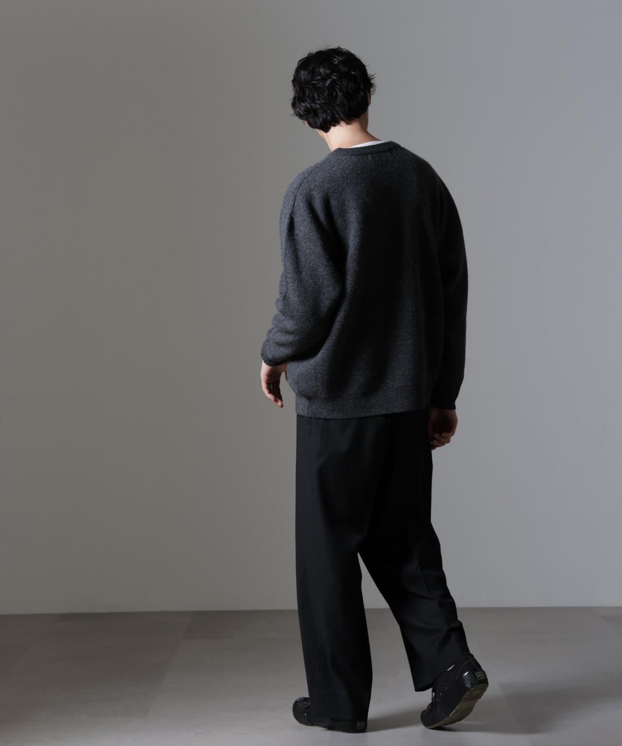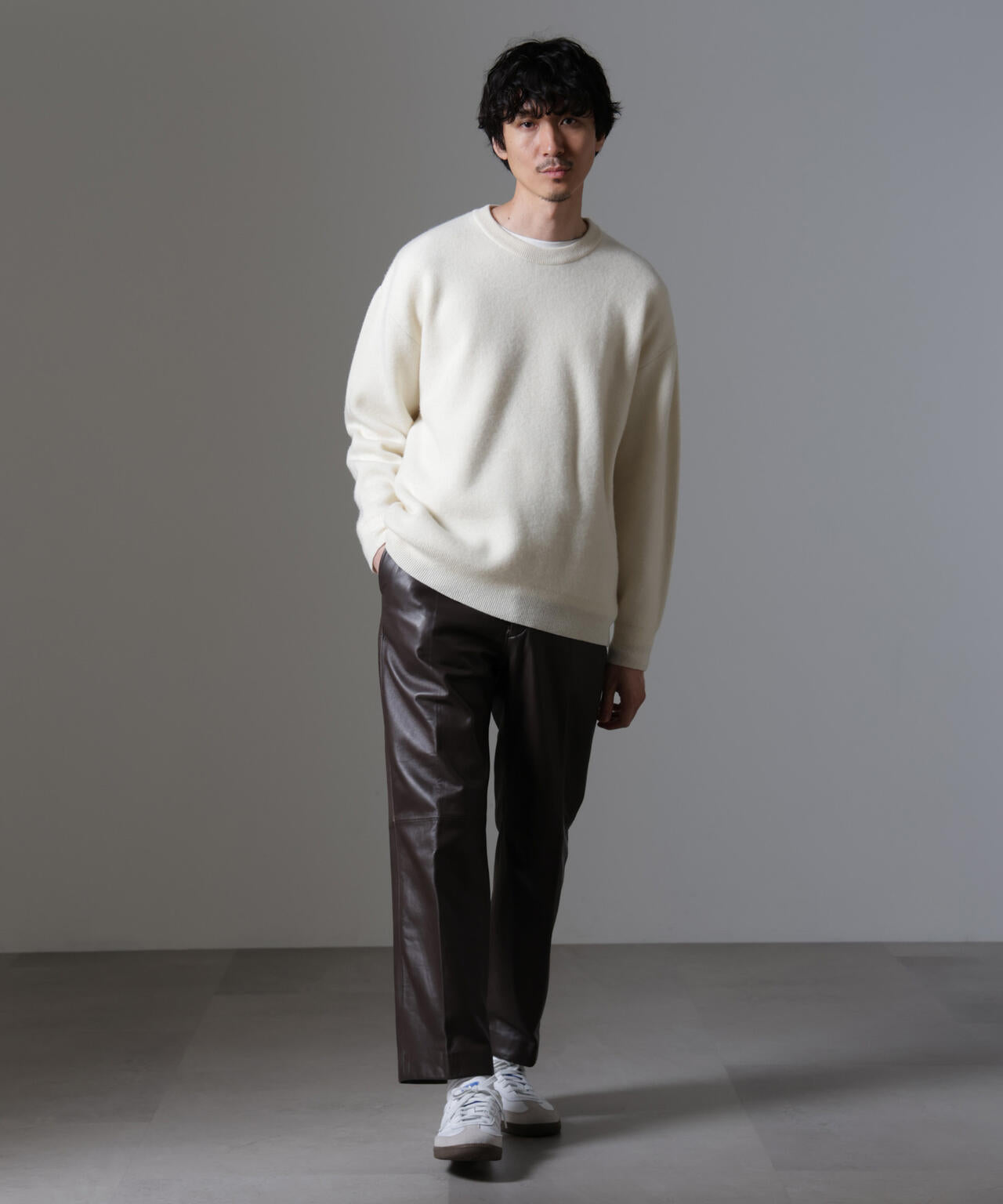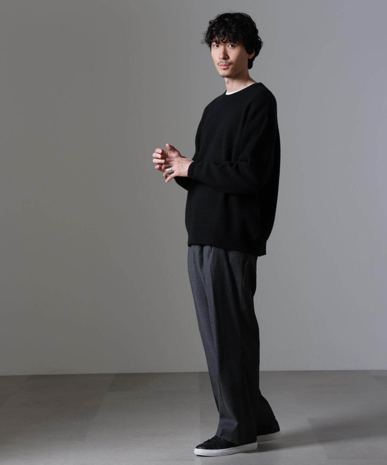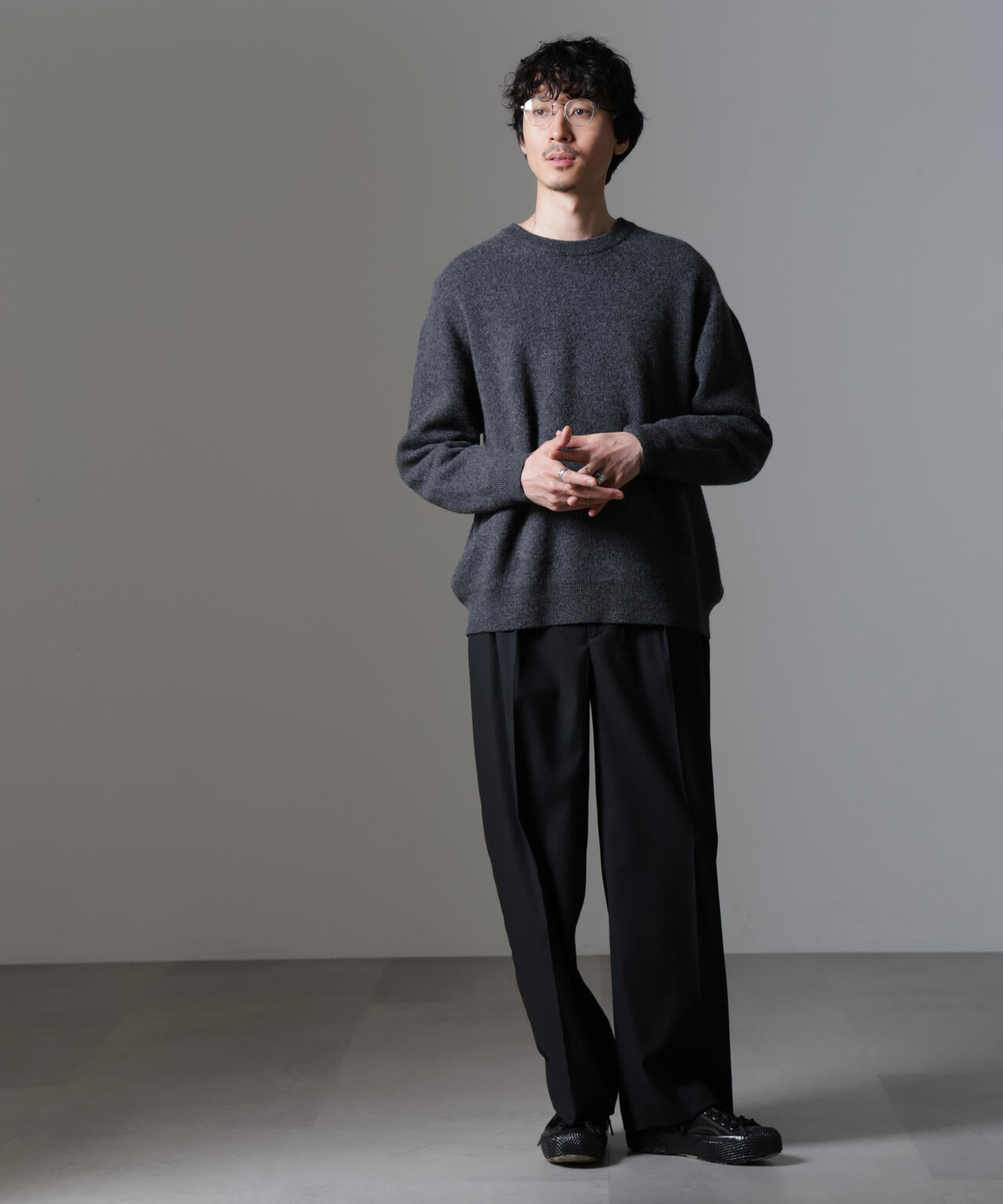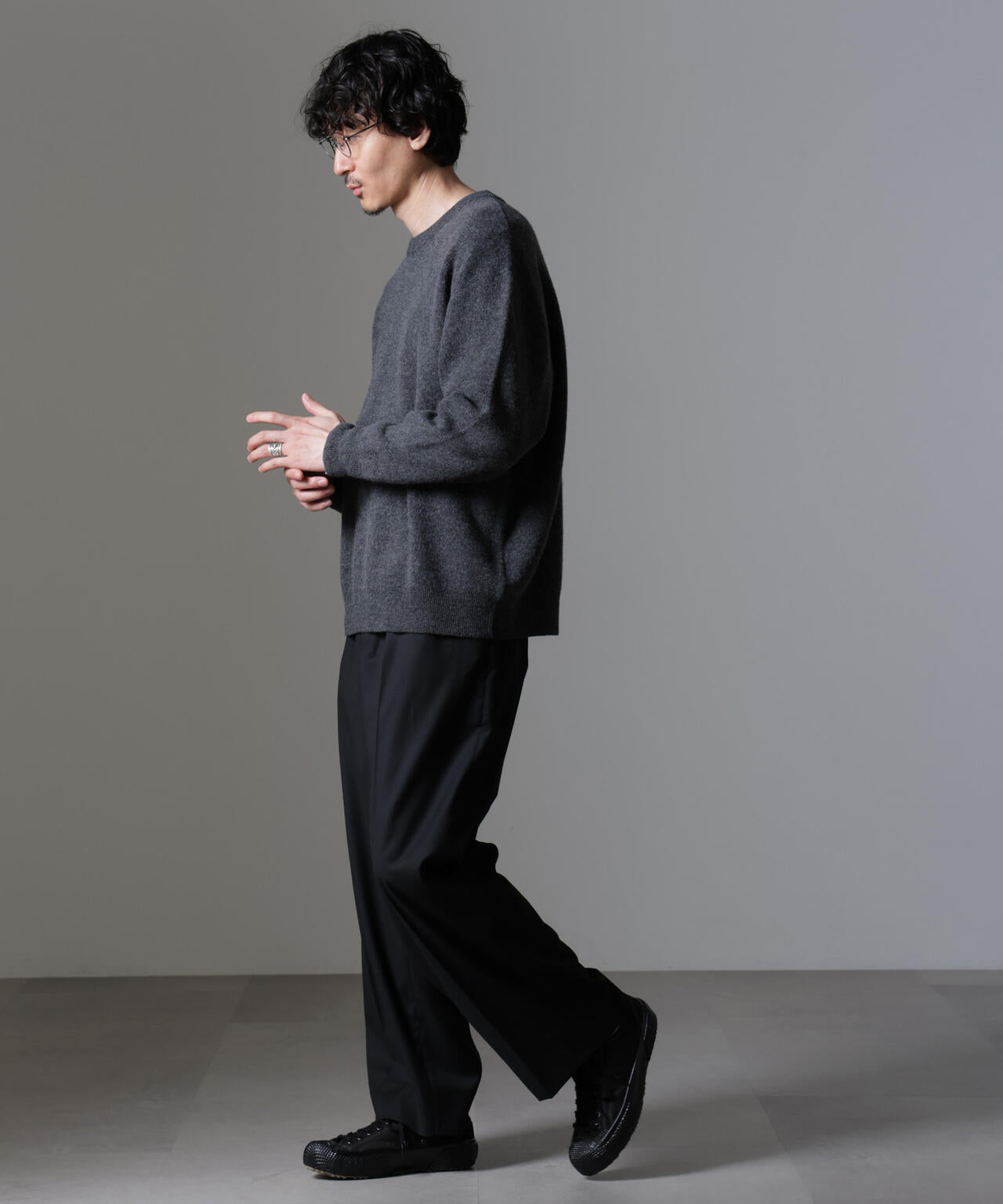 今年らしいニュートラルカラーでまとめたAQUAニットシリーズのクルーネックプルオーバー。厳選された糸を使用した、カシミア混のウールニット。ベーシックながらもややリラックス感のあるシルエットが、今らしさを演出する今季おすすめの1着です。