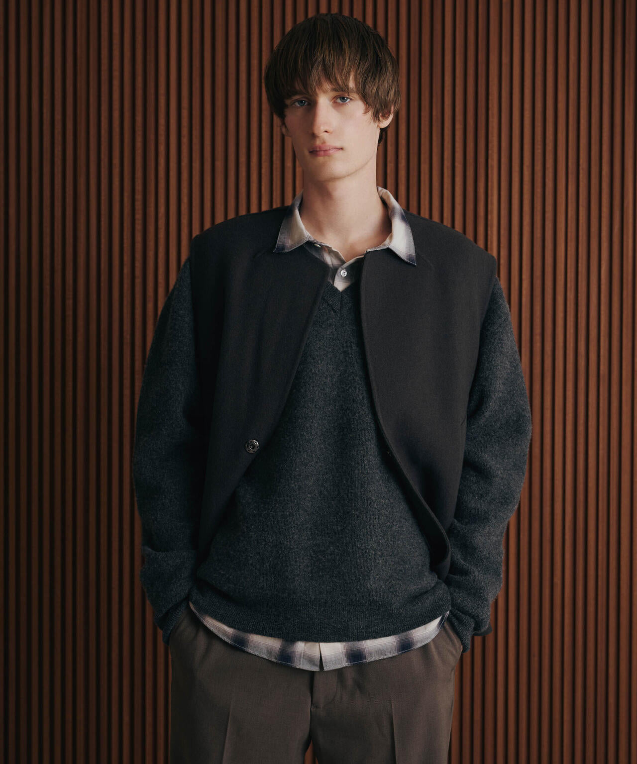 今年らしいニュートラルカラーでまとめたAQUAニットシリーズから登場のVネックプルオーバー。厳選された糸を使用した、カシミア混のウールニット。やや深さのあるVネックとリラックス感のあるシルエットが、今らしさを引き立てるおすすめの1着です。
