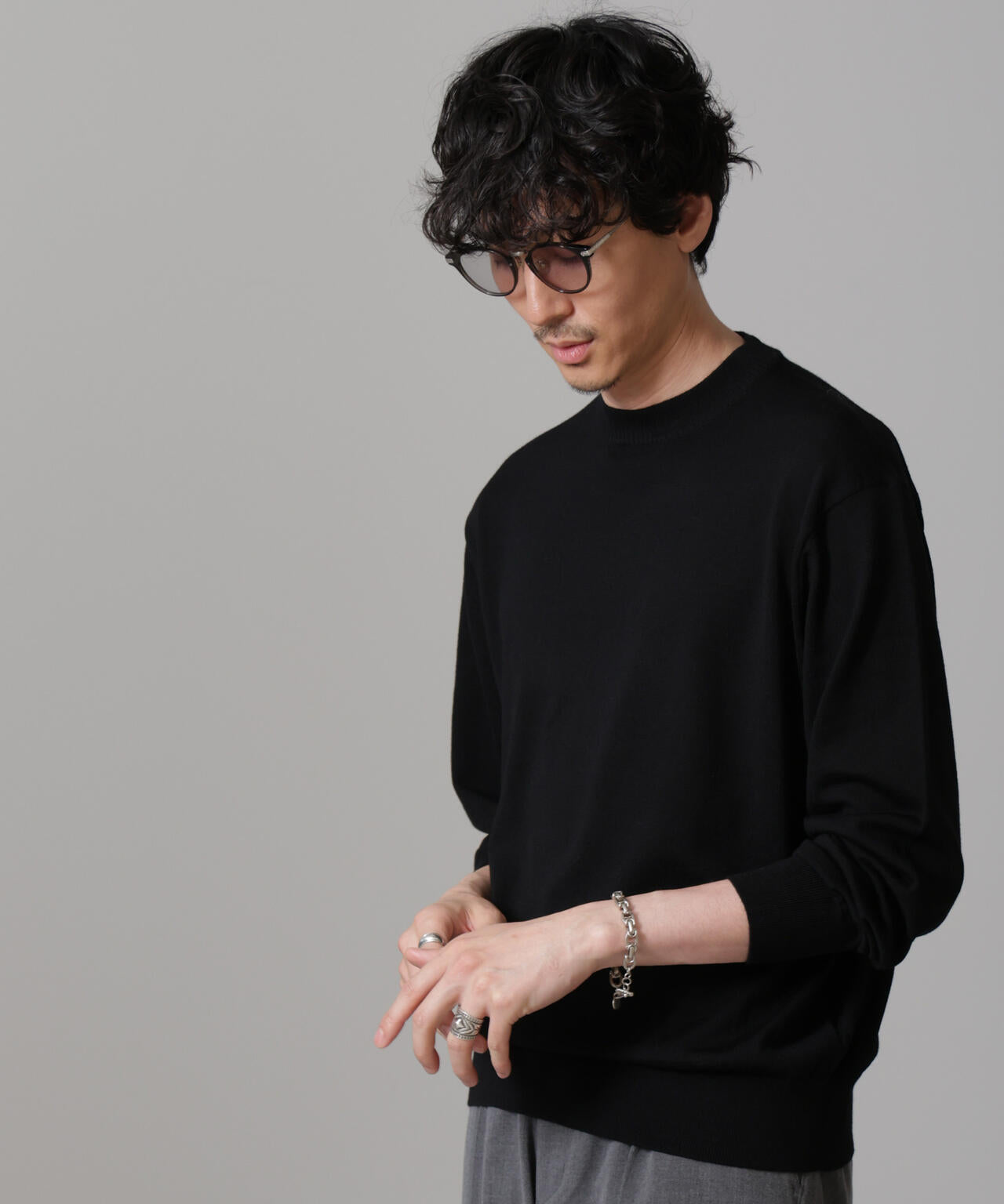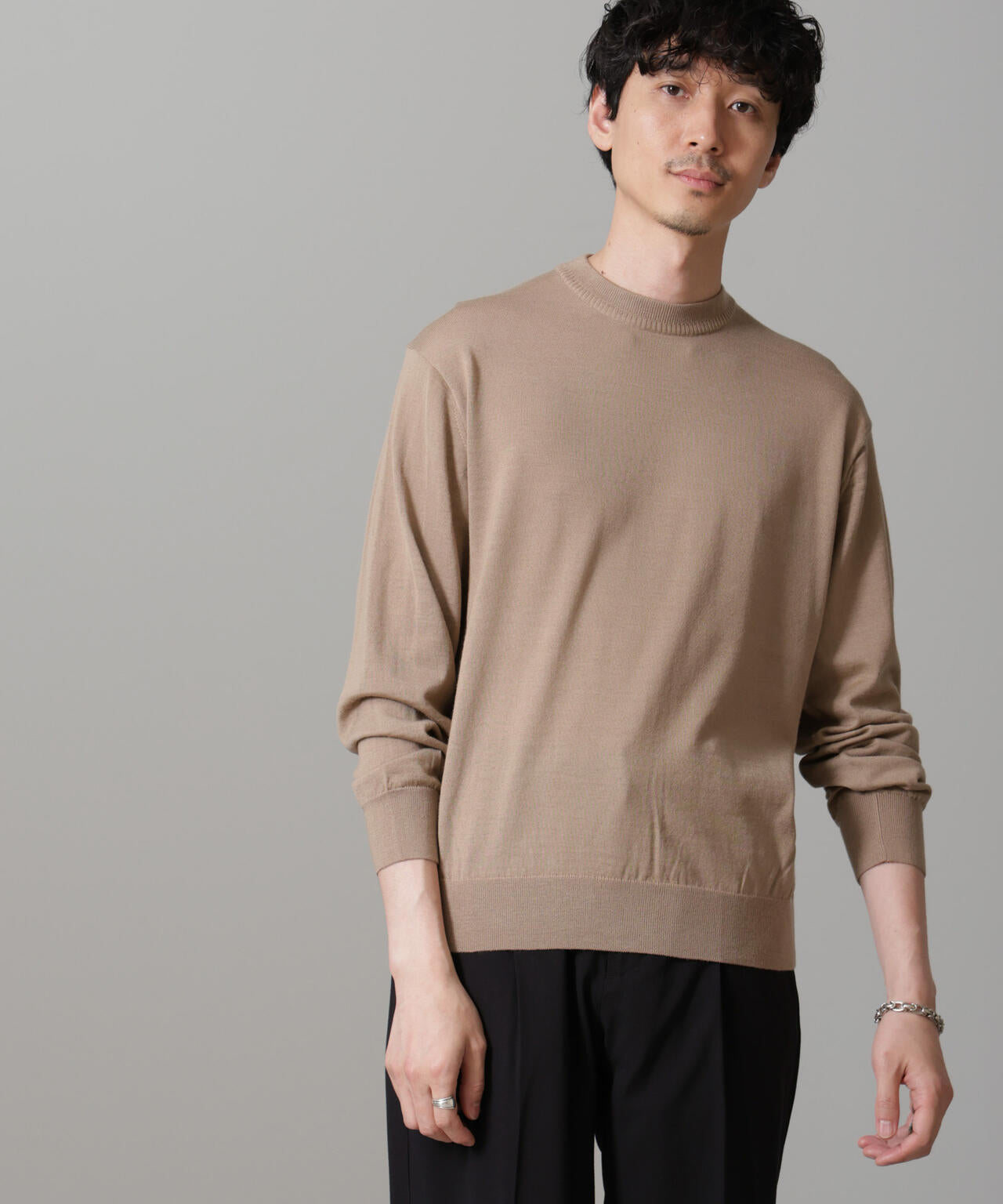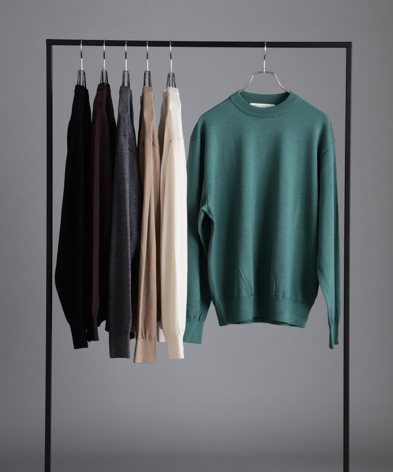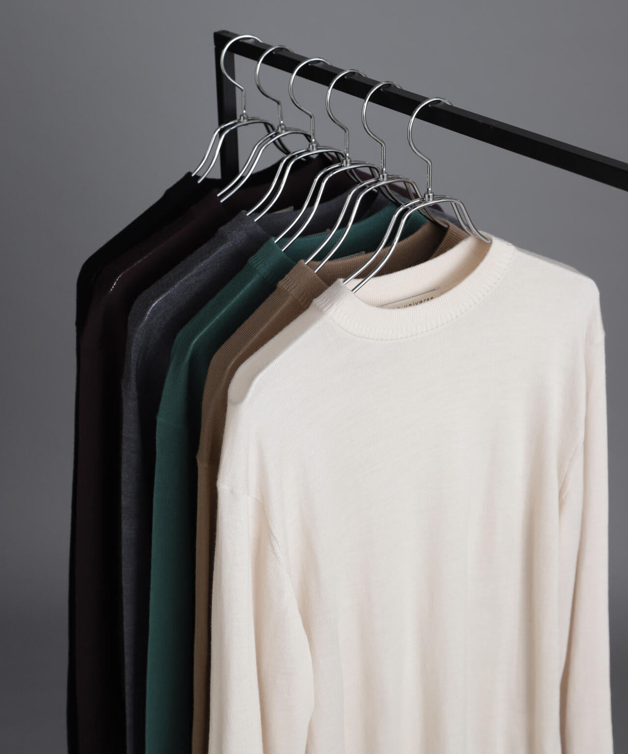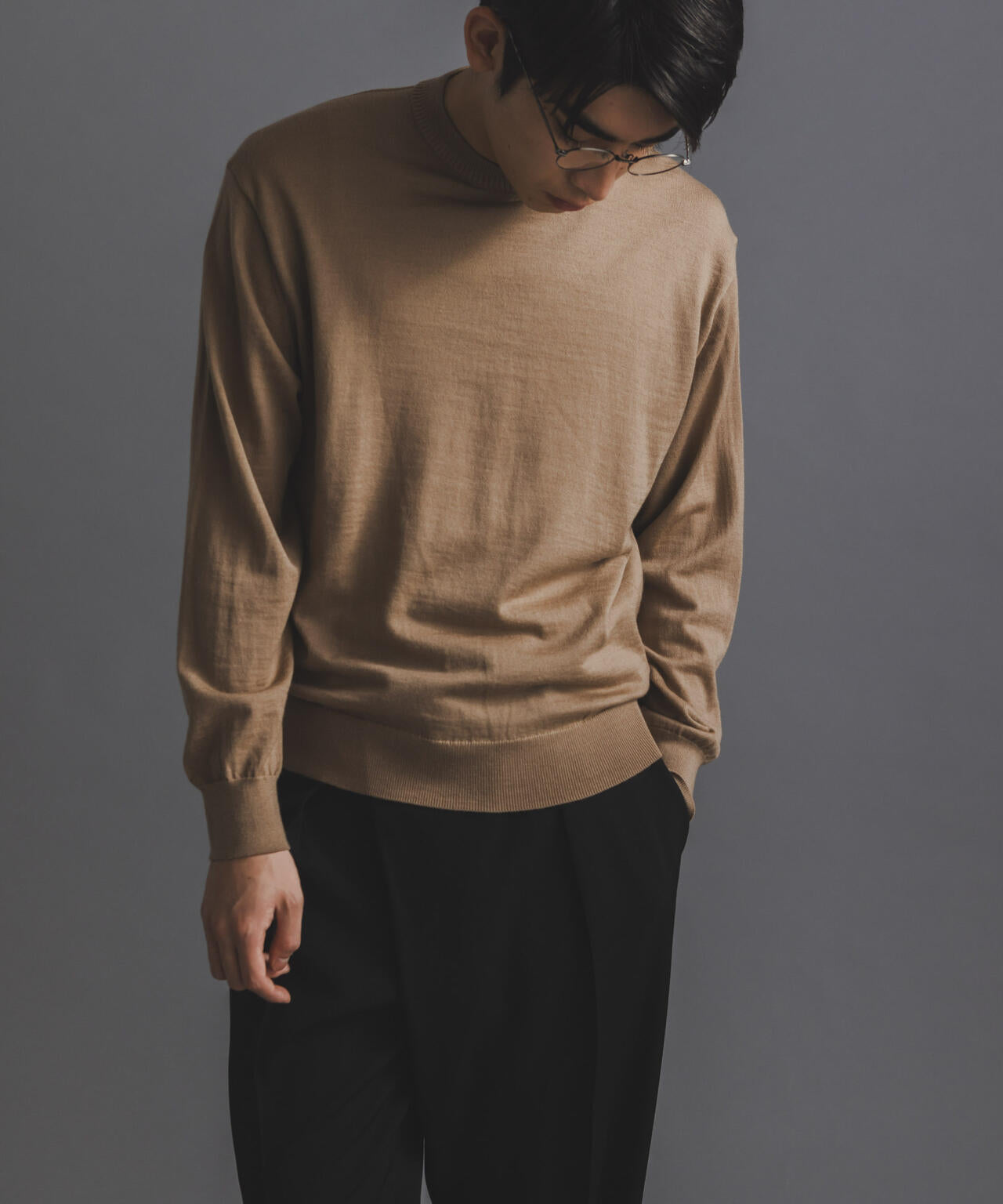 ナノユニバースのマスターピースとして人気を誇る毛玉レスニットの最新シリーズ。オリジナル糸と改造した編み機で作られた16ゲージのニッティングは、ナノユニバースにしかない細やかな編み目のつまりと綺麗な表面がポイントのアイテムです。シンプルなデザインでデイリー使いにおすすめ。