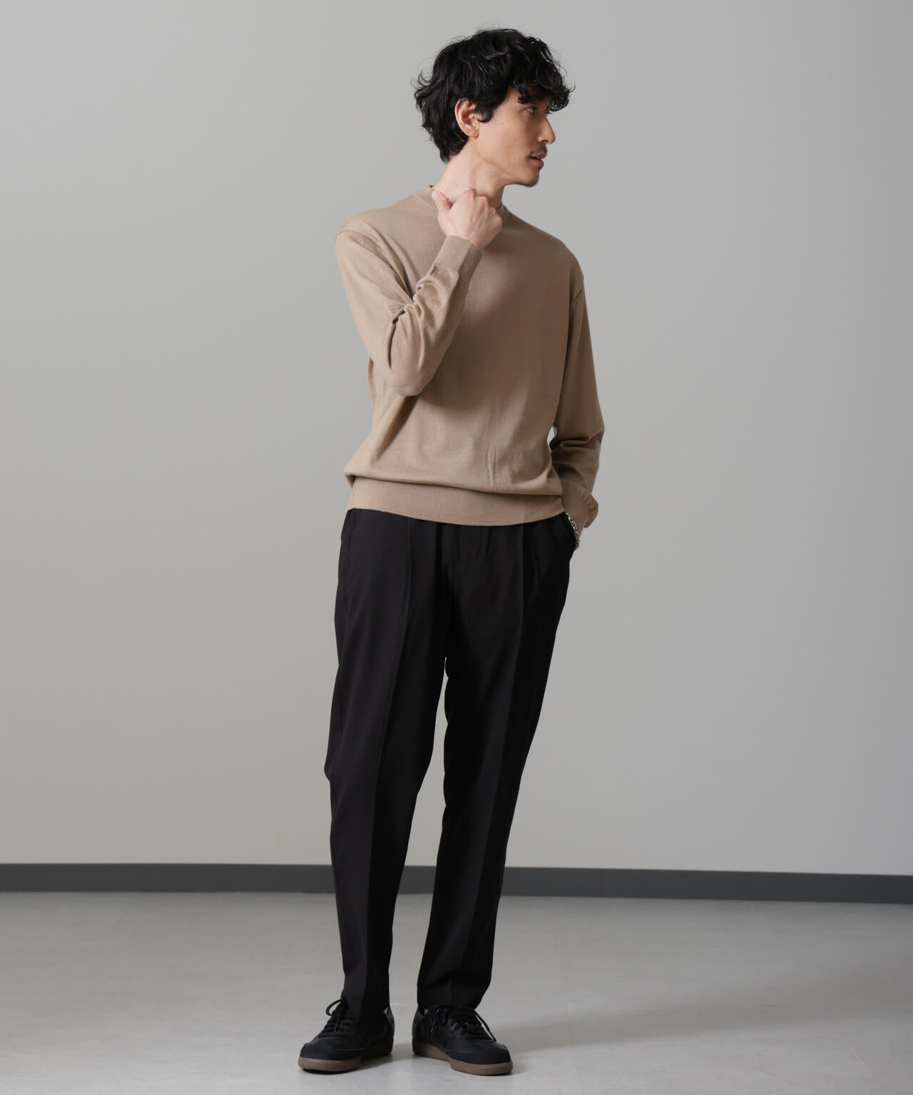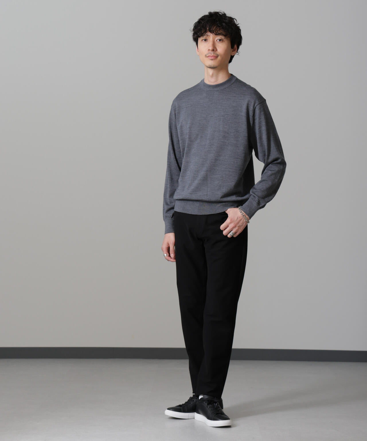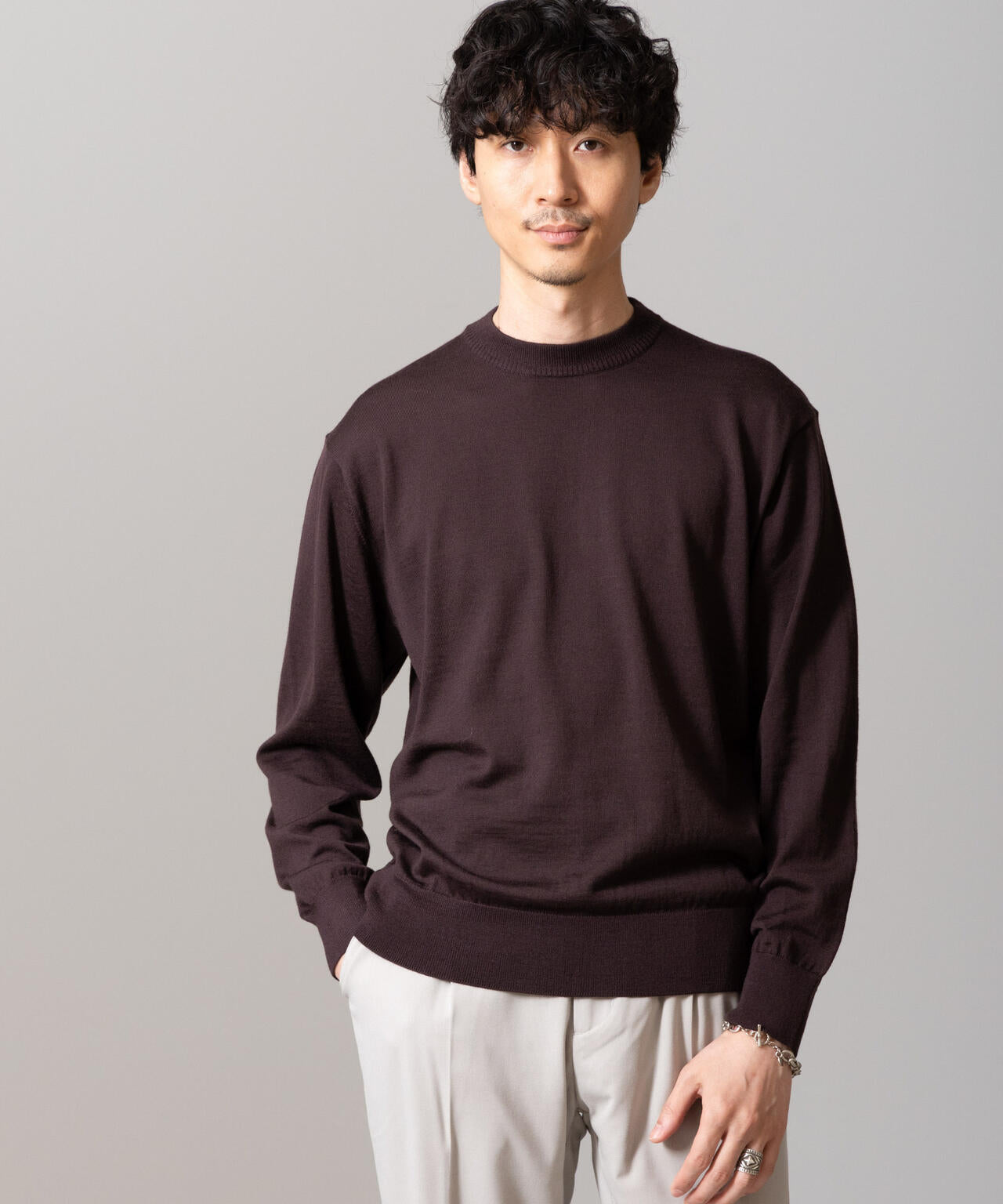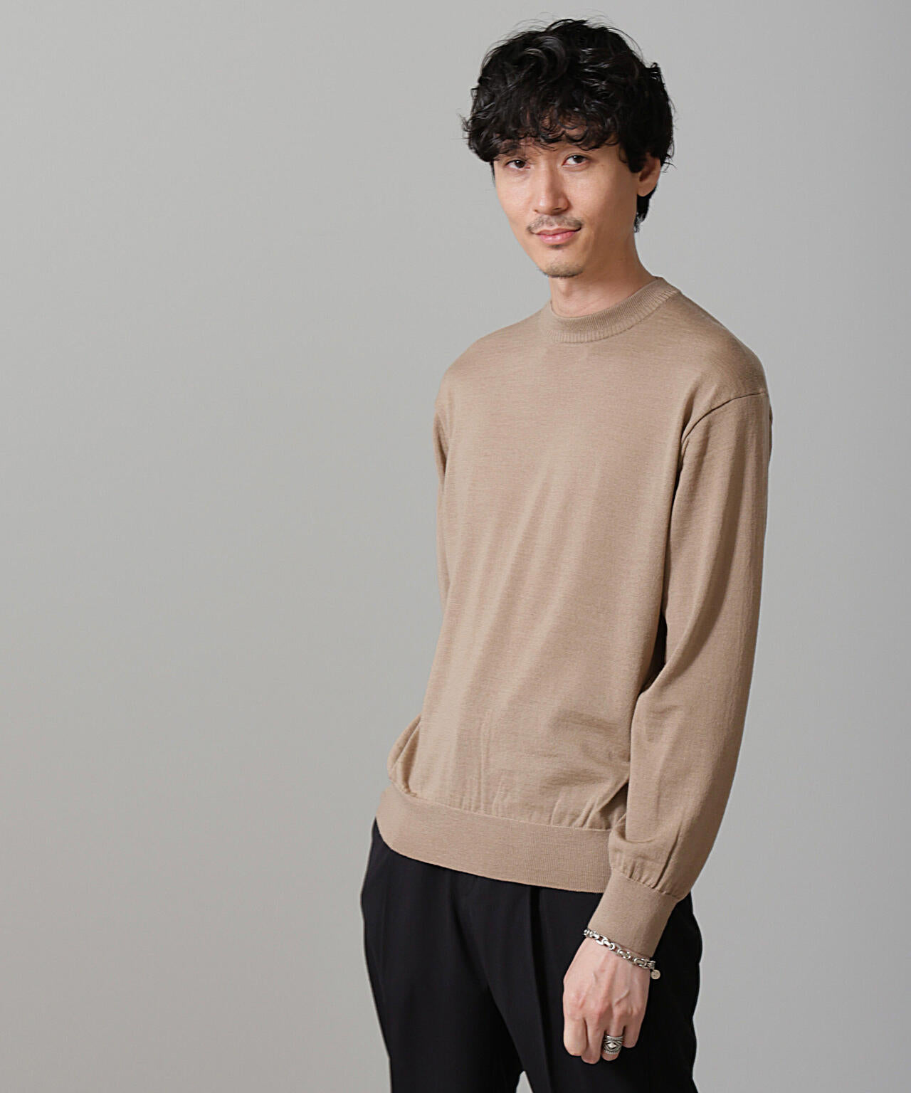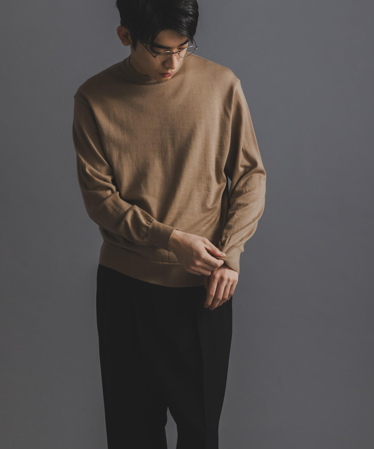 ナノユニバースのマスターピースとして人気を誇る毛玉レスニットの最新シリーズ。オリジナル糸と改造した編み機で作られた16ゲージのニッティングは、ナノユニバースにしかない細やかな編み目のつまりと綺麗な表面がポイントのアイテムです。シンプルなデザインでデイリー使いにおすすめ。