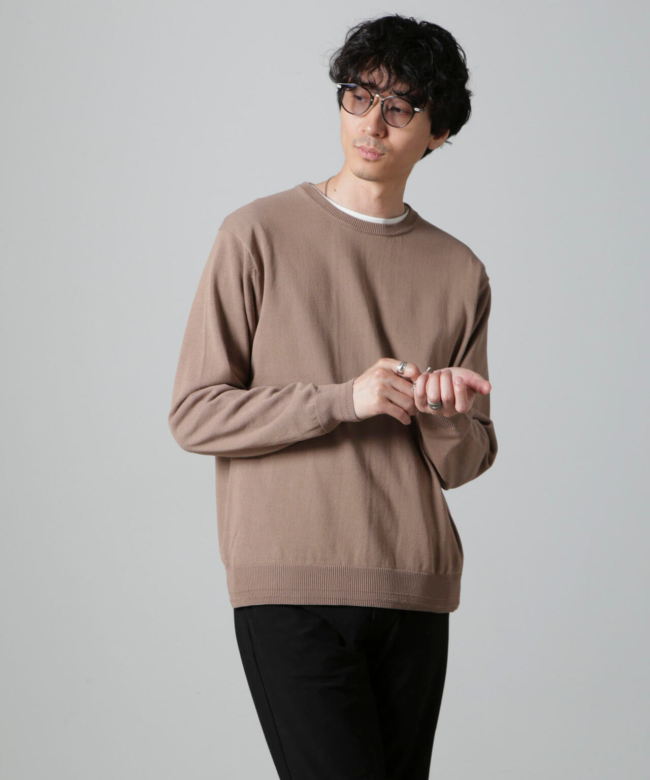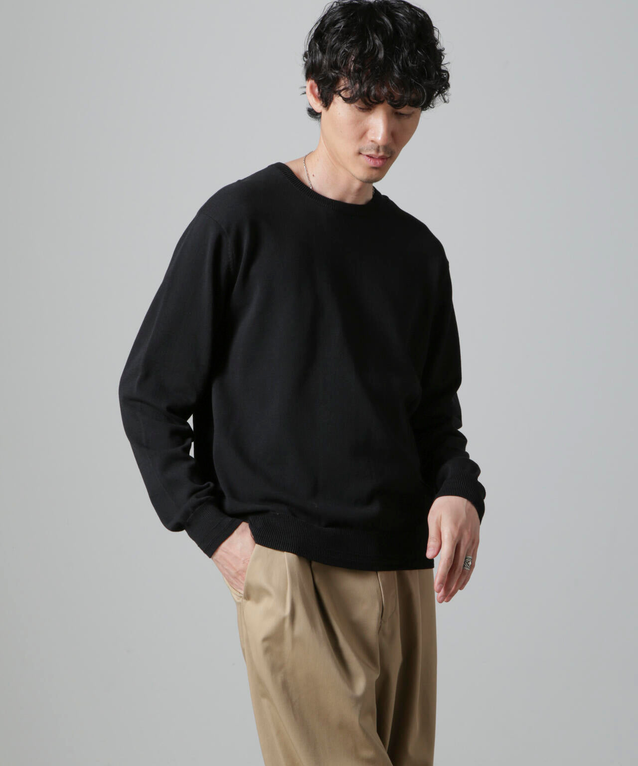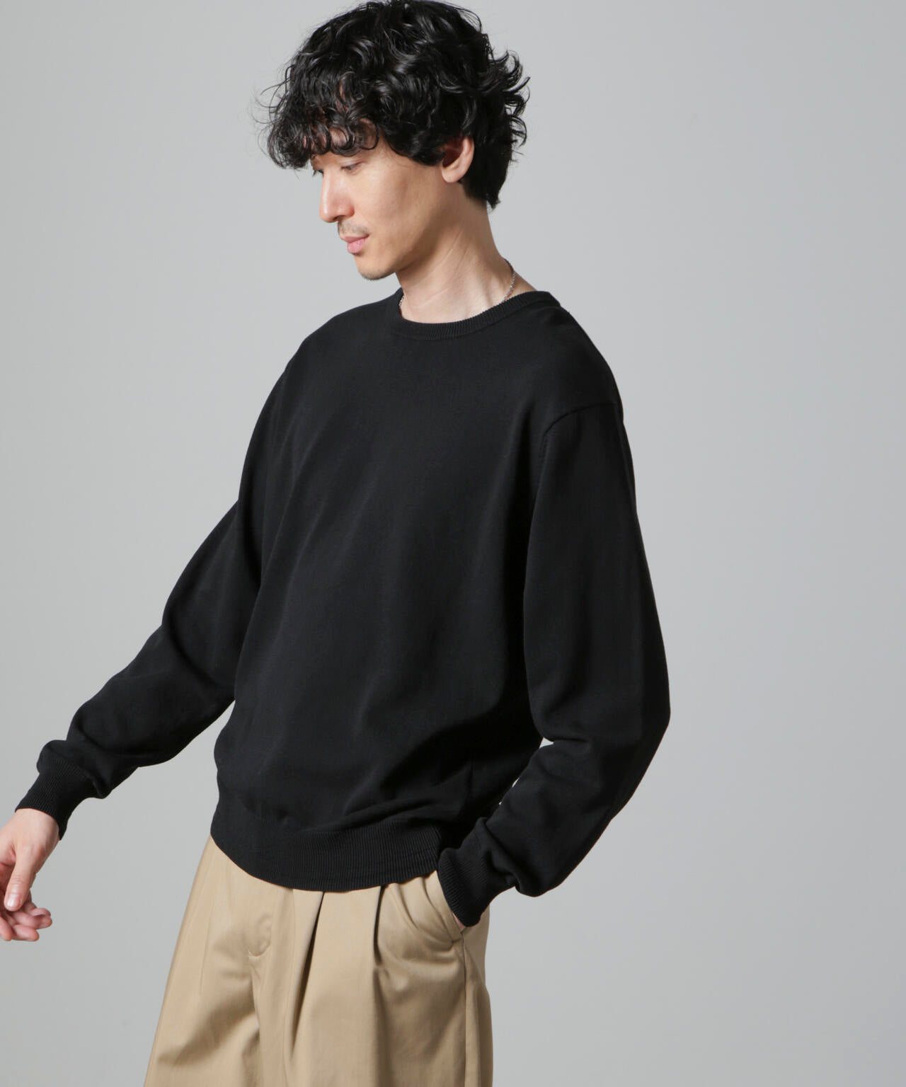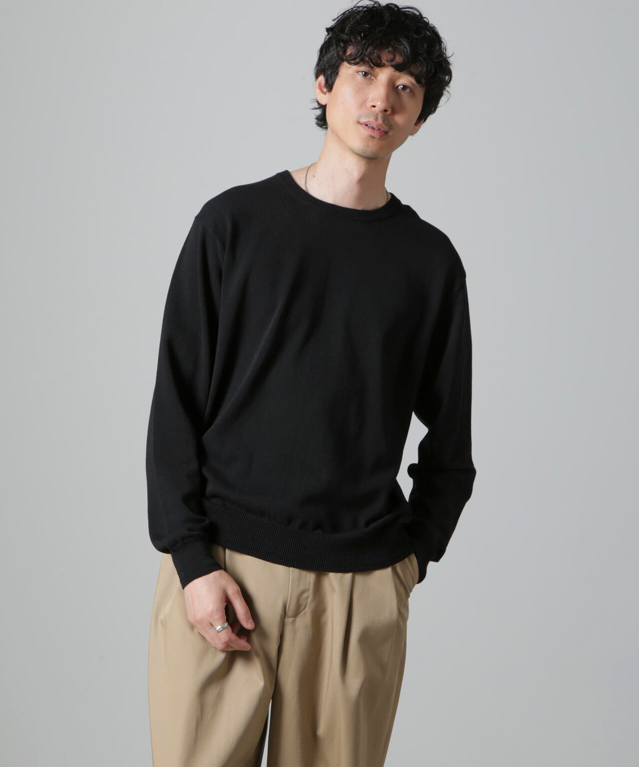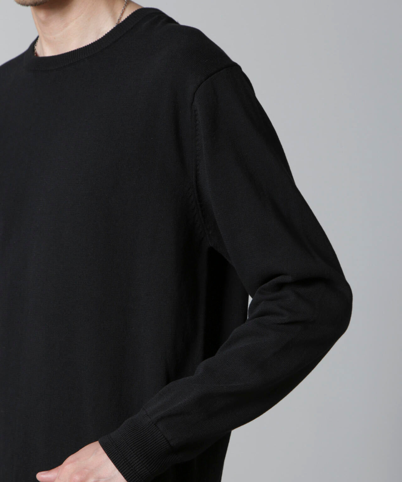 コットンとSOLOTEXの混紡糸を使用したモチ感のある肌触りが特徴のクルーネックニット。アウターにも合わせやすいデザインなので一枚ではもちろんインナーとしても着やすいアイテム。 オフィスカジュアルから休日スタイルまで幅広く活躍する万能な一着です。
