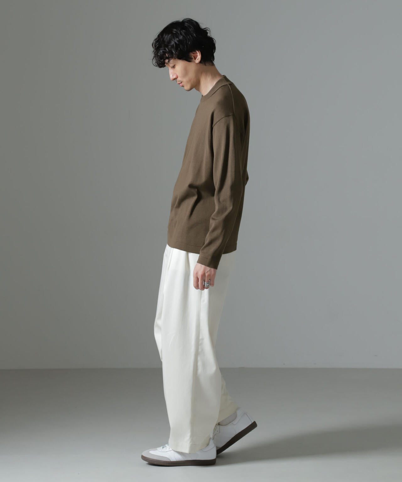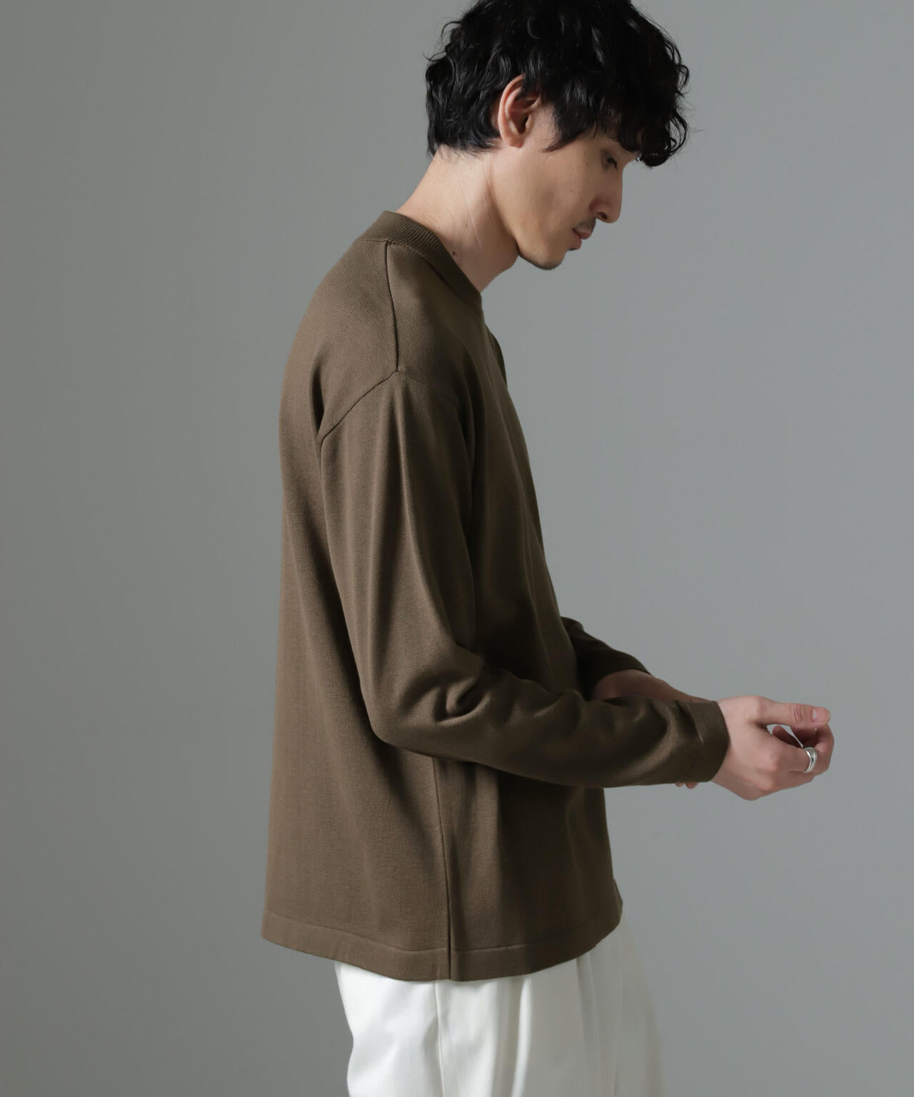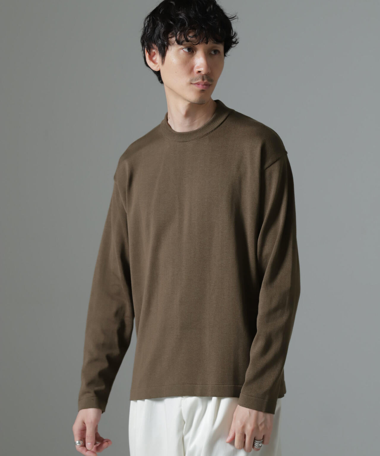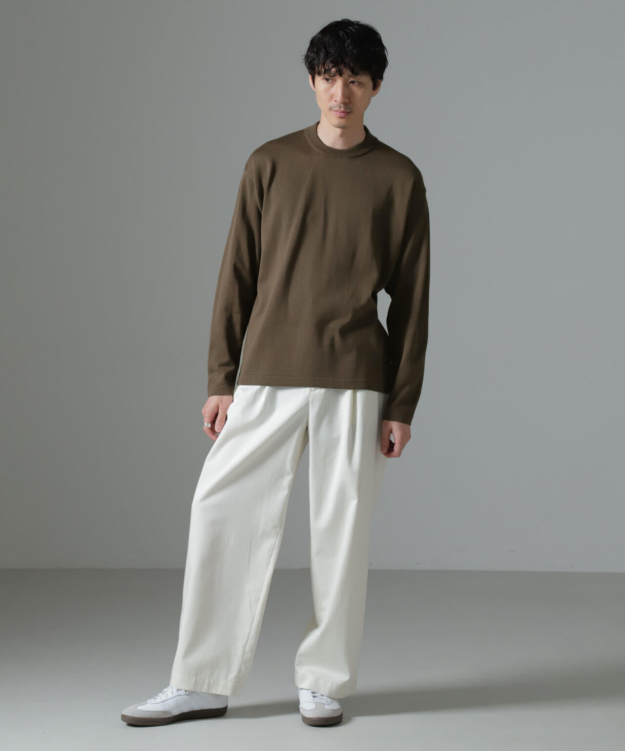・着まわしやすいアイボリー・グレー・ブラウンの3色展開