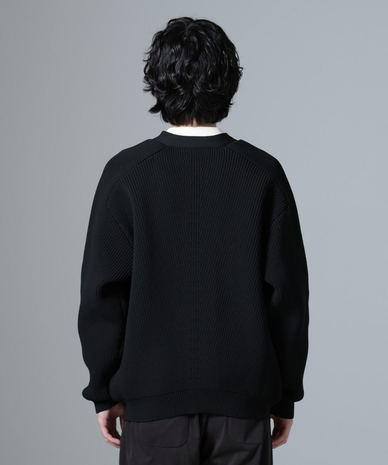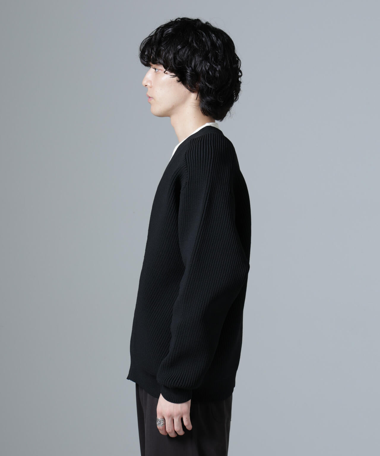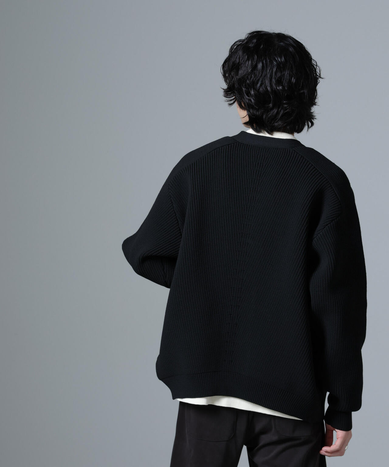 24SSで好評だったポリエステル糸を使用した、軽さとふくらみが特徴のニットウェアシリーズ。ベーシックな片畦編みに角度を付け、新鮮な見え感に仕上げた1着。デニムからスラックスまでお客様の好きなスタイルに合わせられる汎用性の高いアイテムです。
