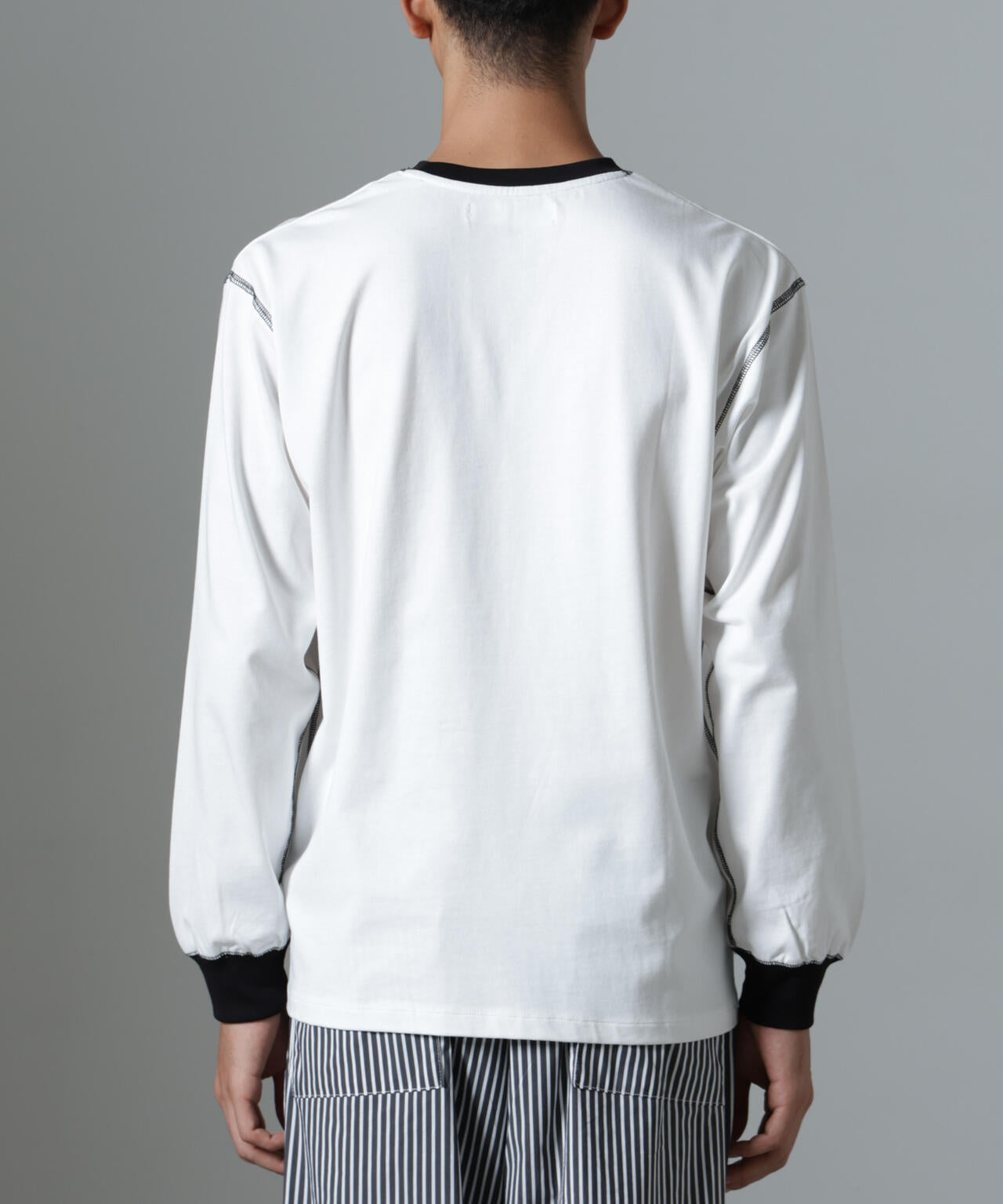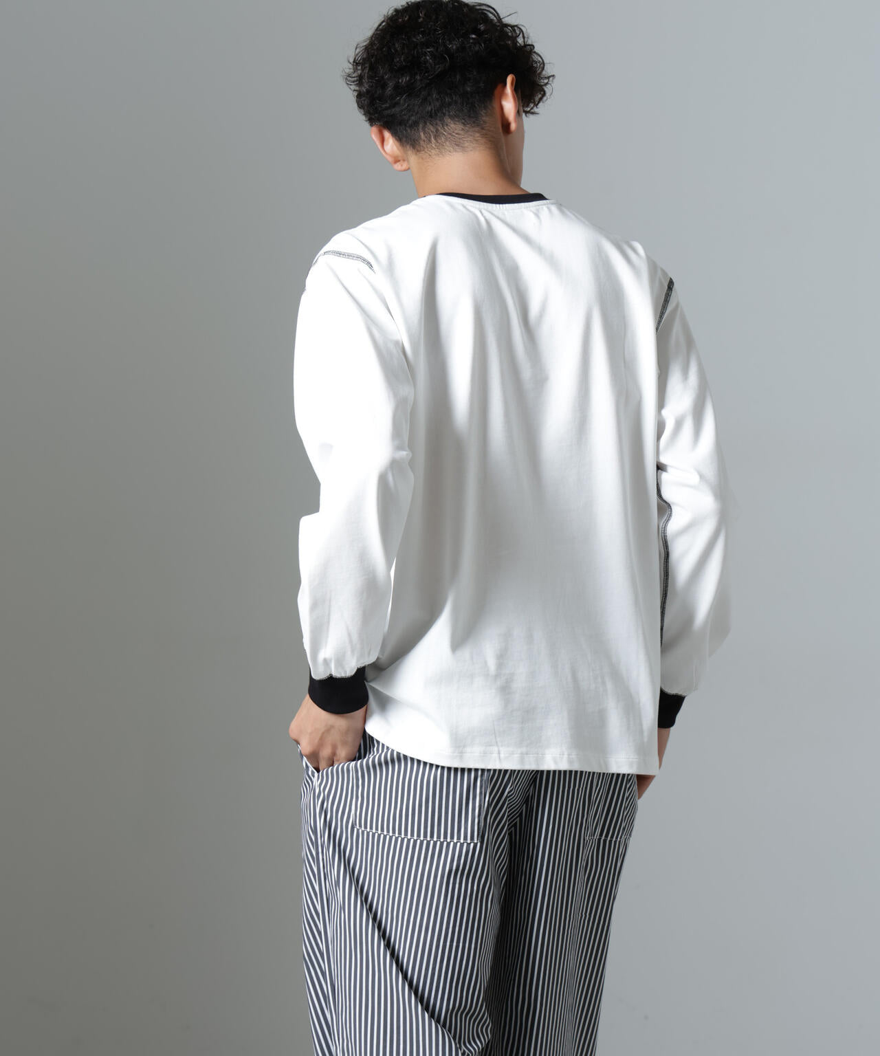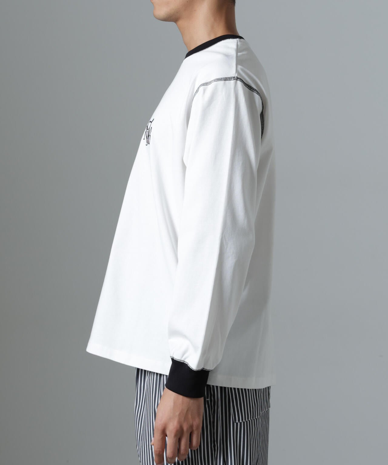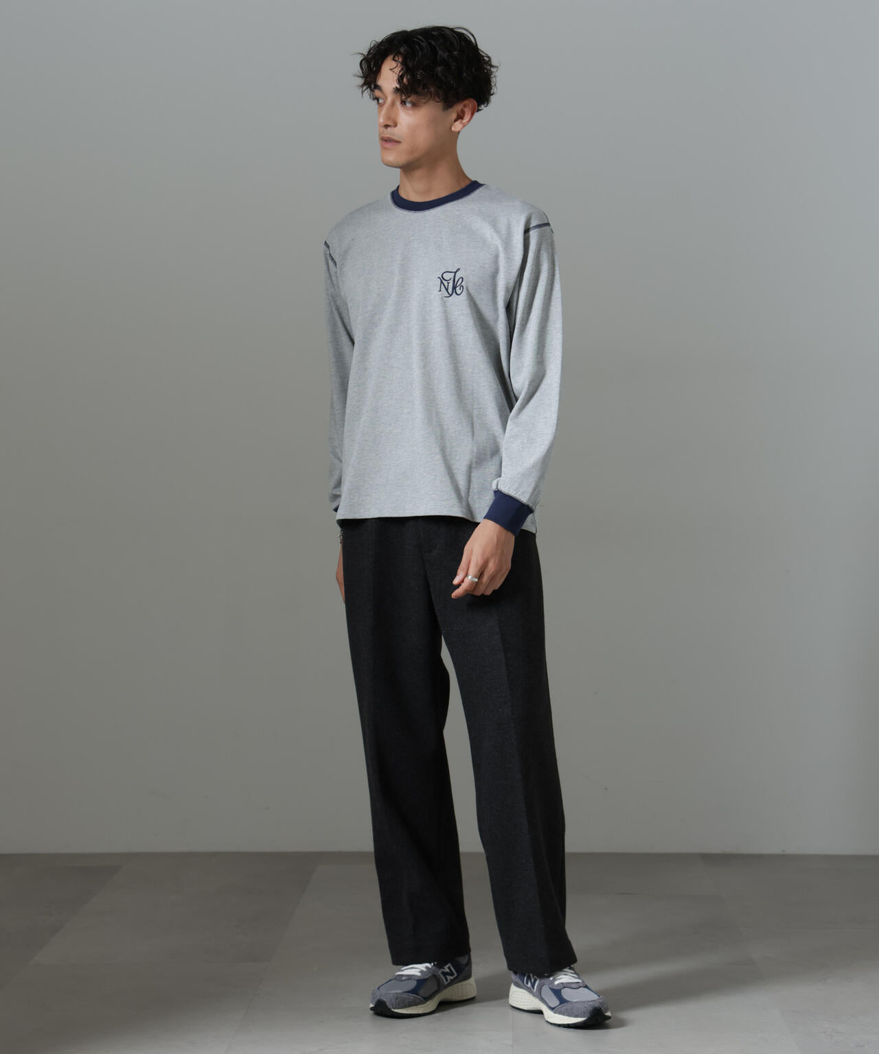 胸元にNJCのロゴ刺しゅうを施したロングスリーブTシャツ。袖口や襟元、脇のロックの配色デザインがコーディネートのアクセントに◎。デニムなどのカジュアルなスタイルにおすすめの1着です。