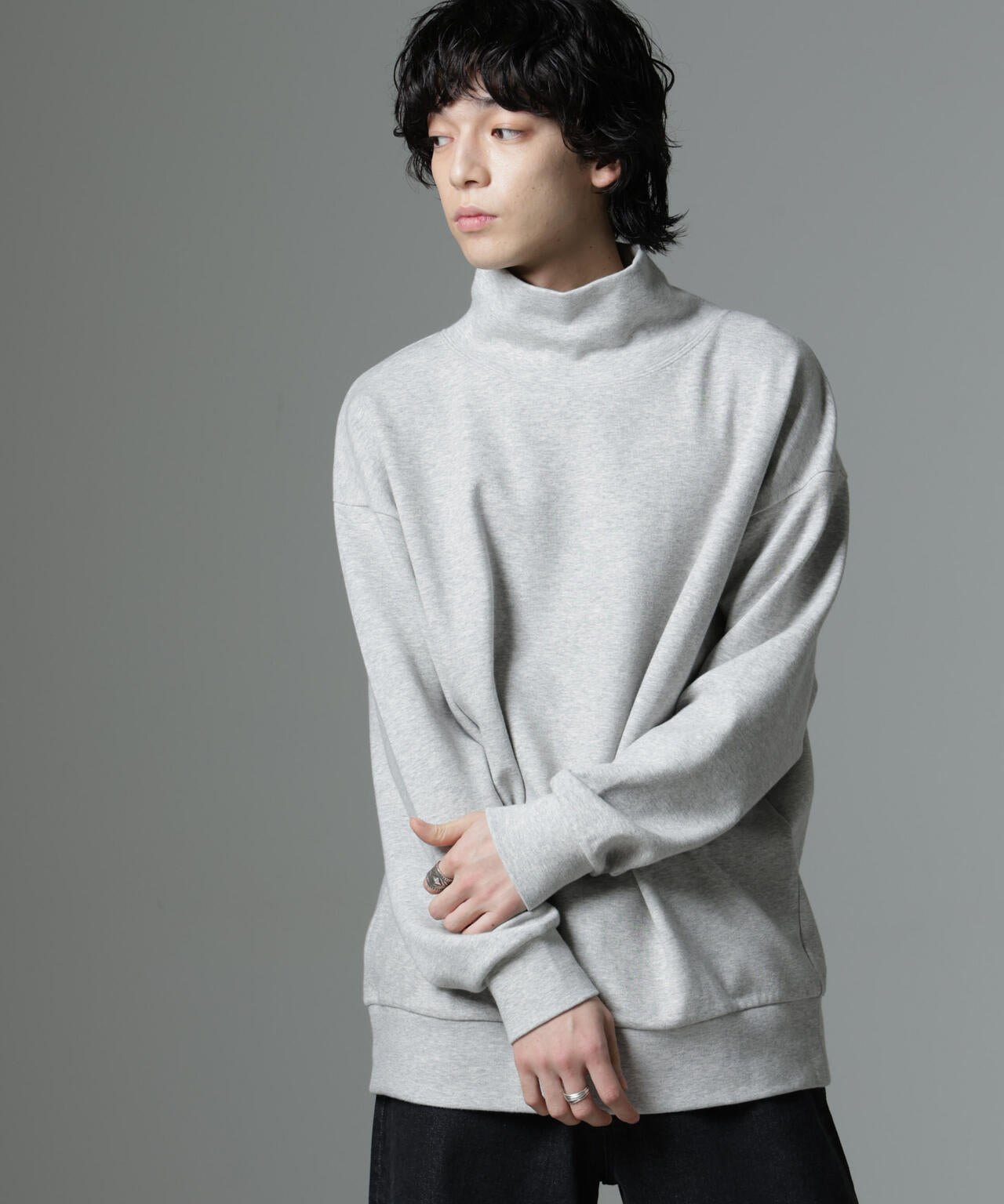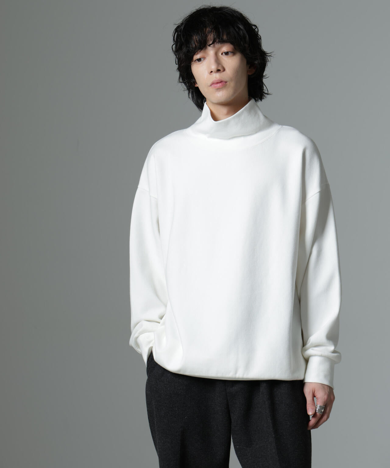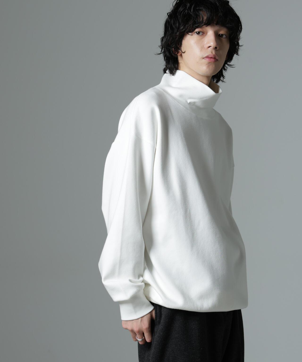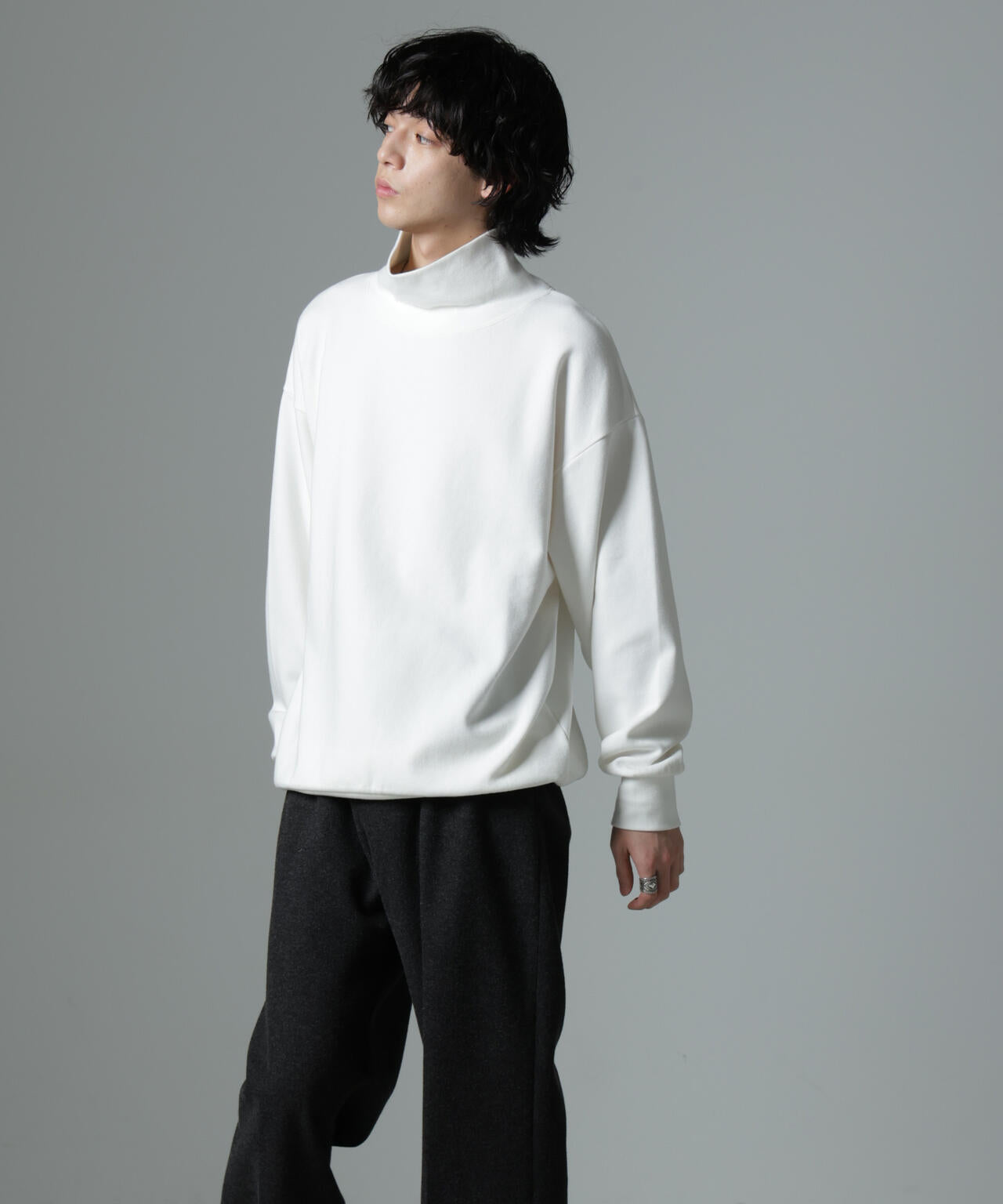 裏毛やスウェットには出せないふっくらと空気を含んだような軽さのあるタートルプルオーバー。首から離れるオフタートルのネックデザインで、ネック周りの表情が新鮮見えする1着です。