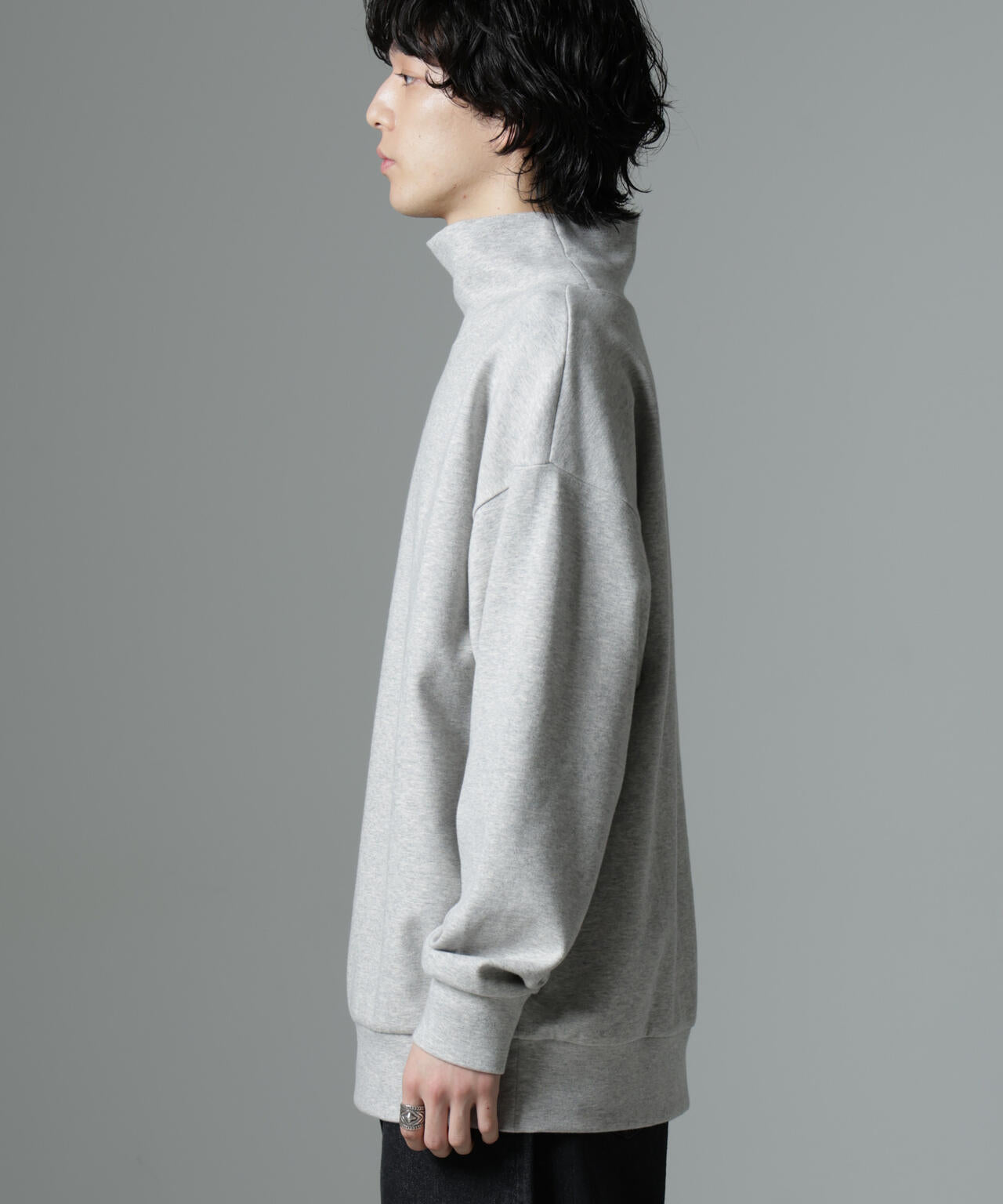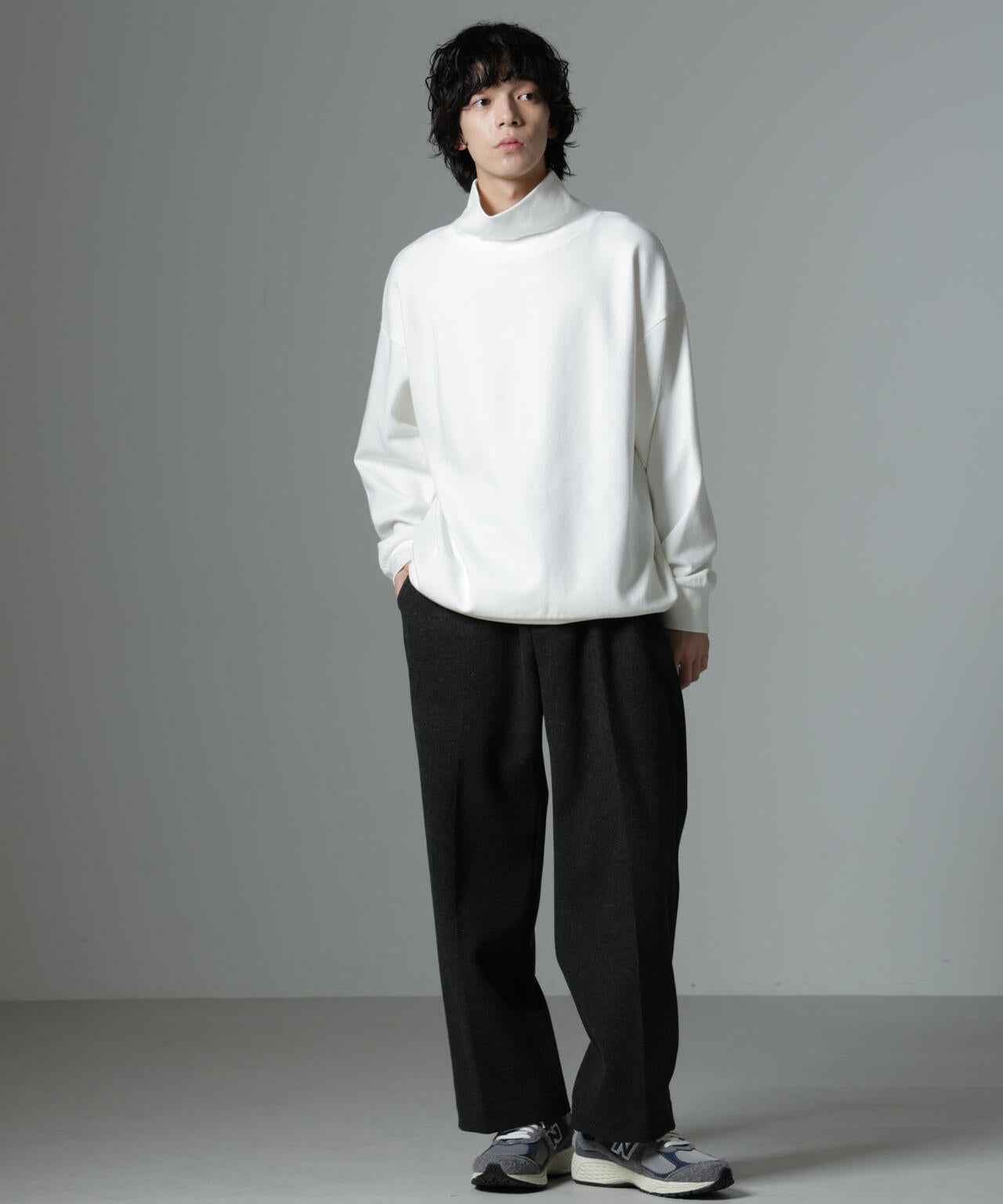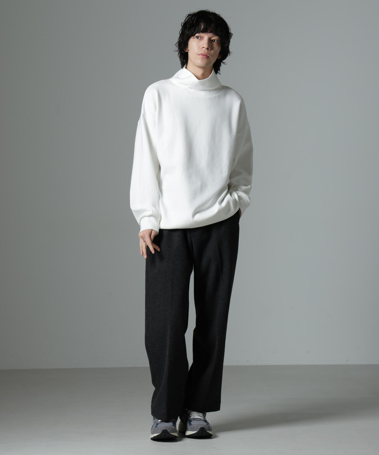 裏毛やスウェットには出せないふっくらと空気を含んだような軽さのあるタートルプルオーバー。首から離れるオフタートルのネックデザインで、ネック周りの表情が新鮮見えする1着です。