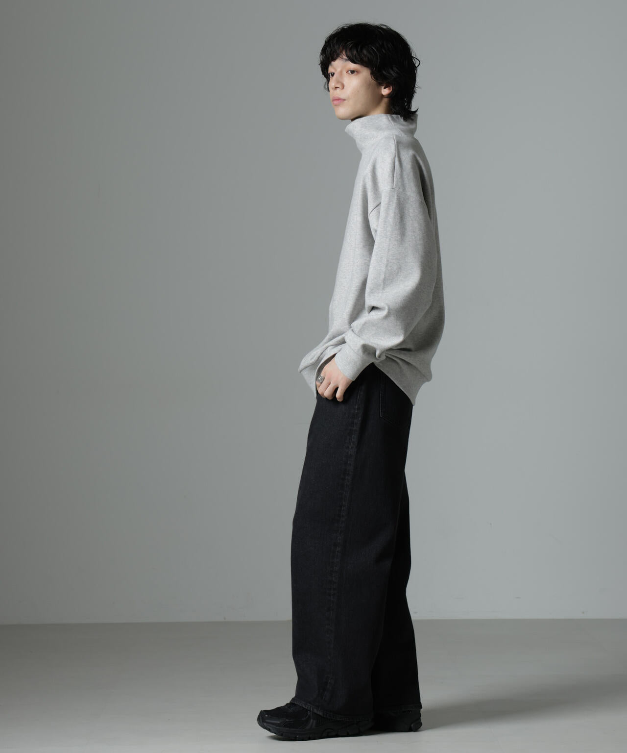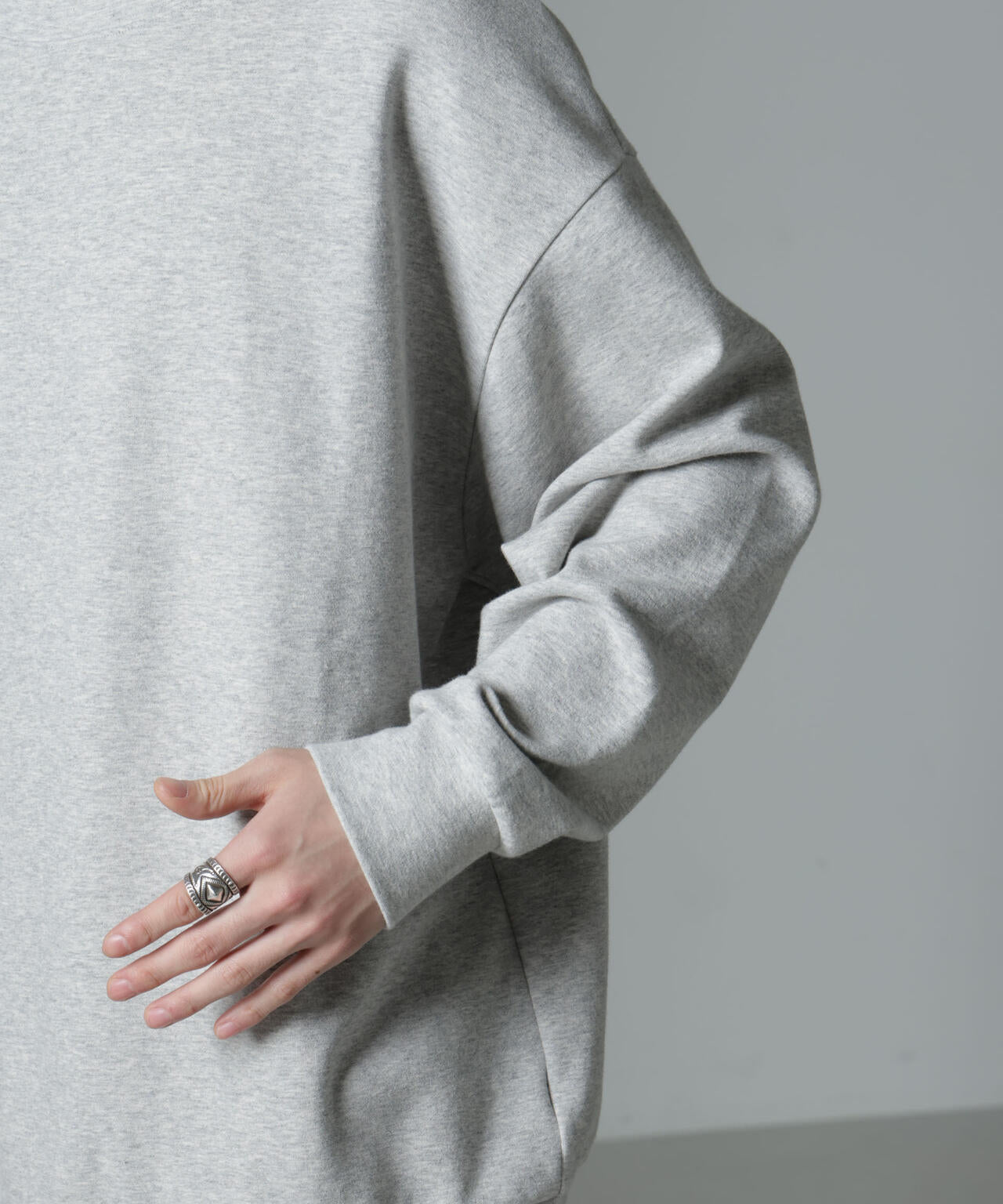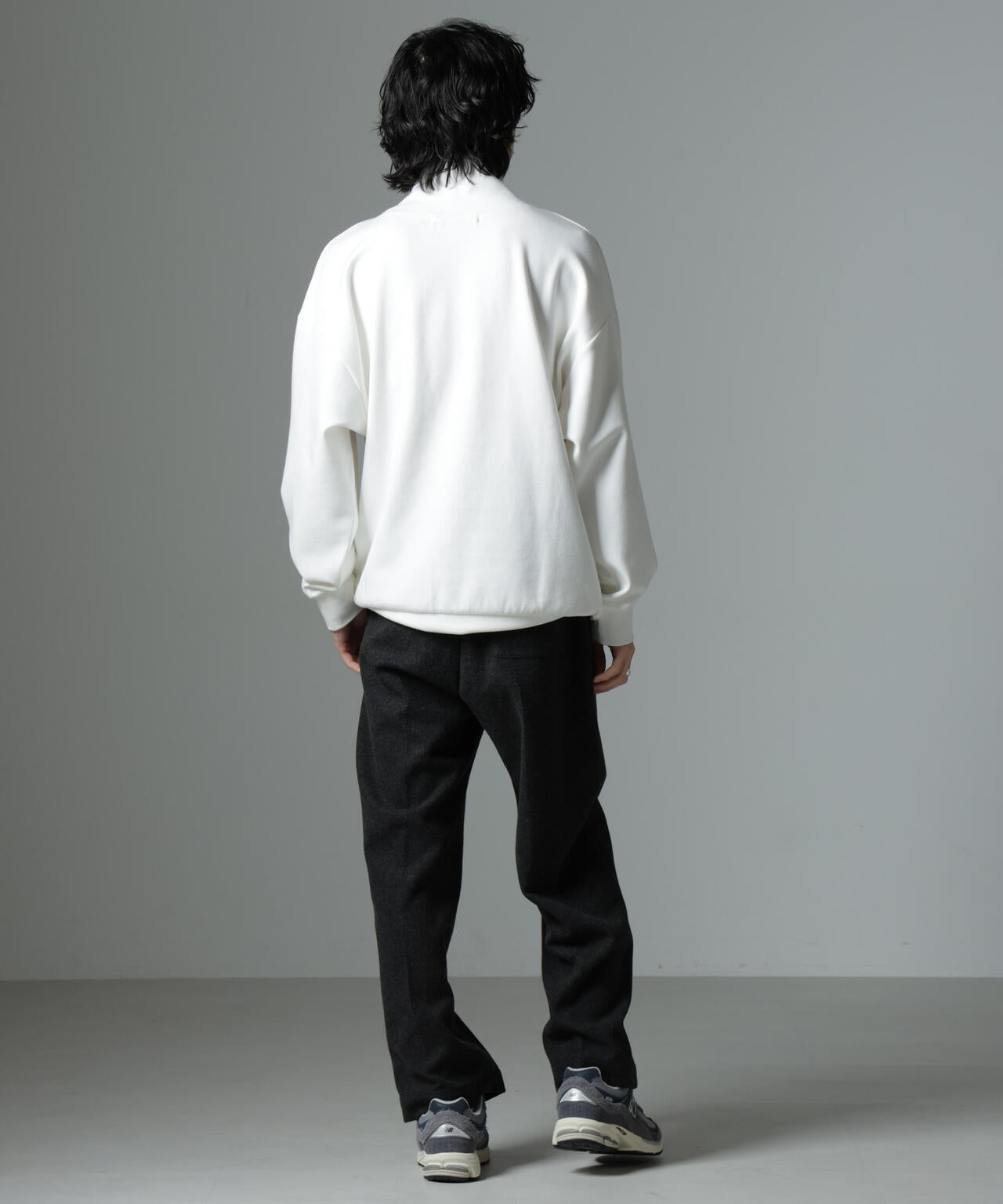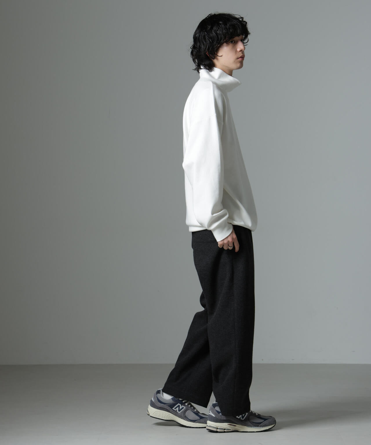 裏毛やスウェットには出せないふっくらと空気を含んだような軽さのあるタートルプルオーバー。首から離れるオフタートルのネックデザインで、ネック周りの表情が新鮮見えする1着です。