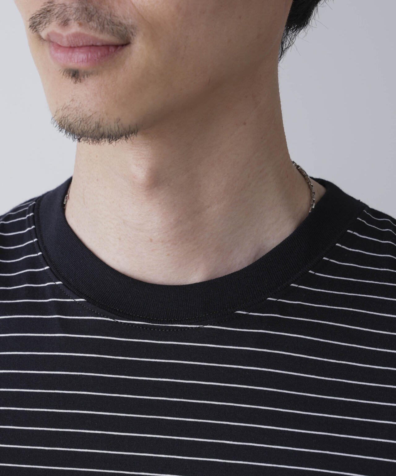 ピンボーダーバイオシルケットクルーネックTシャツ