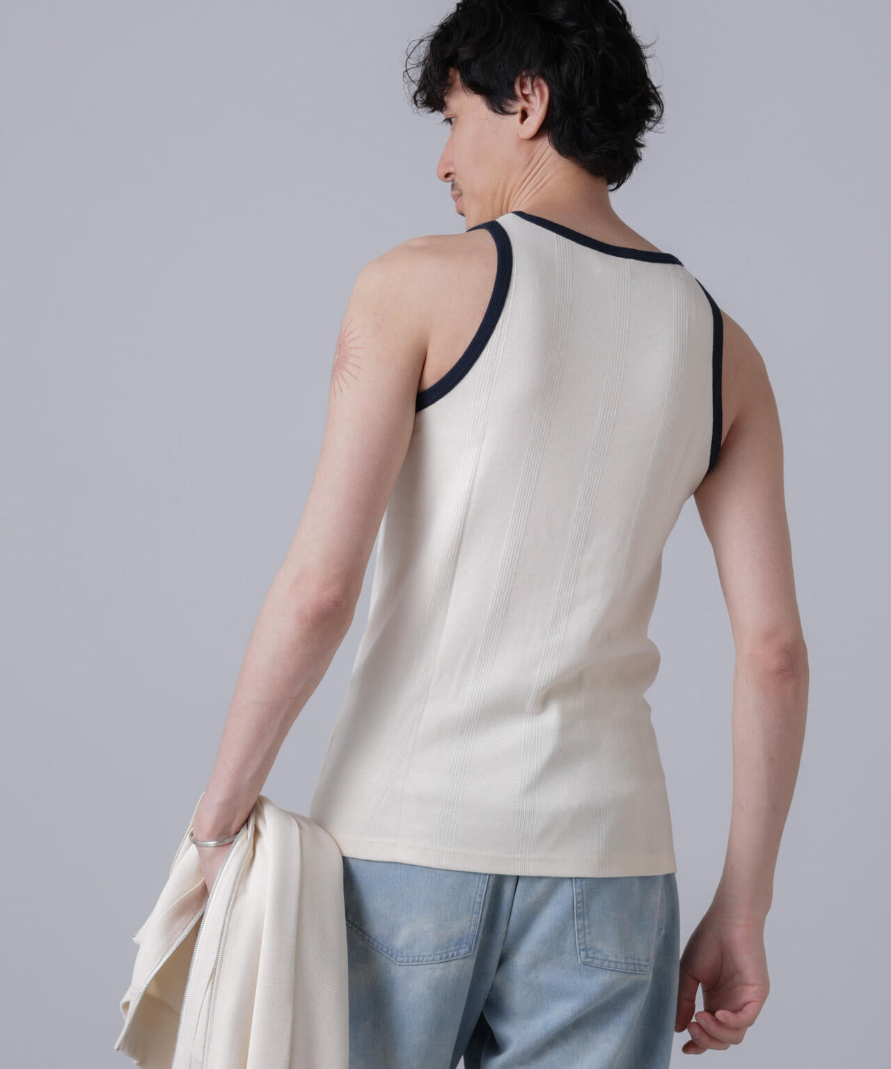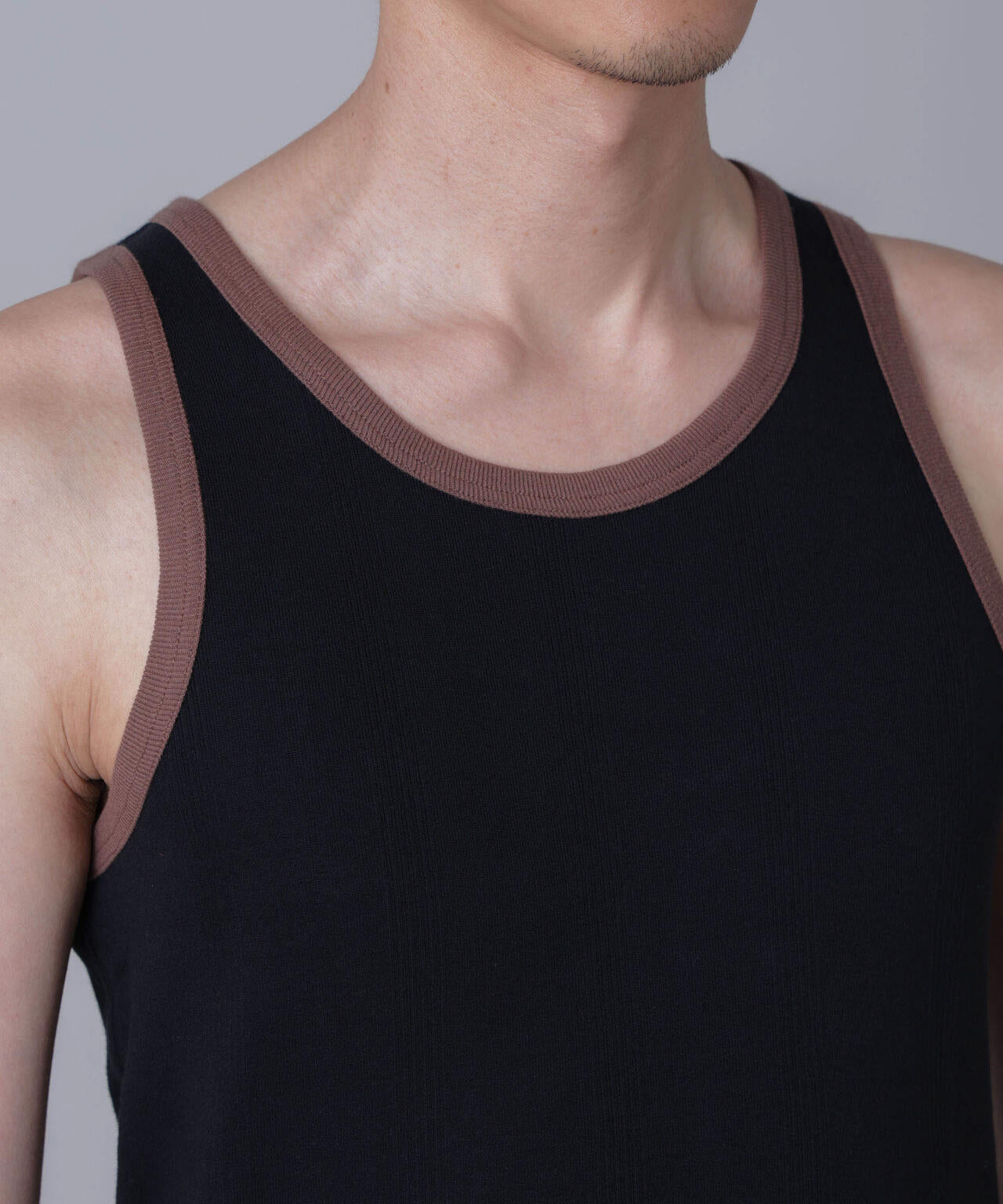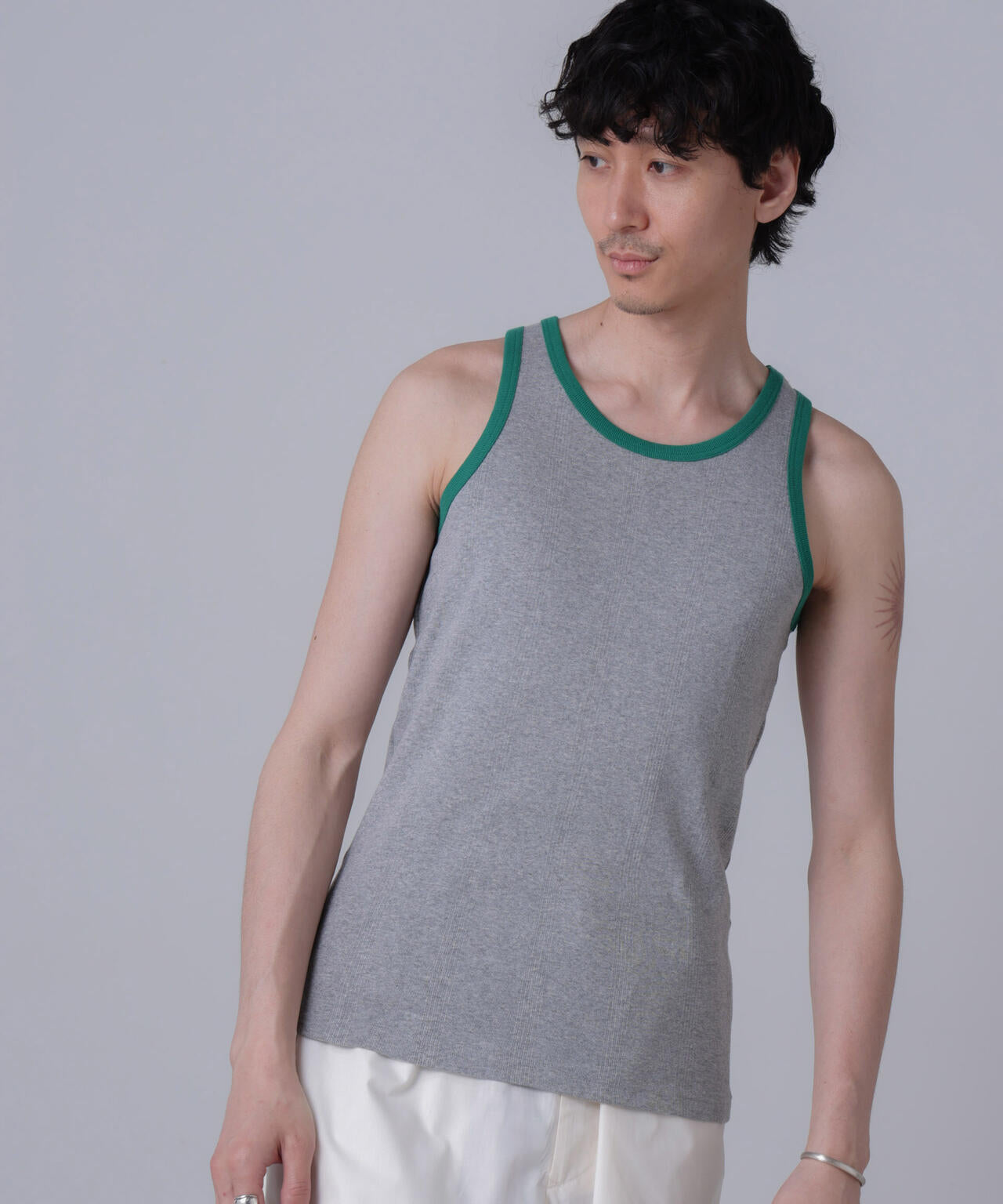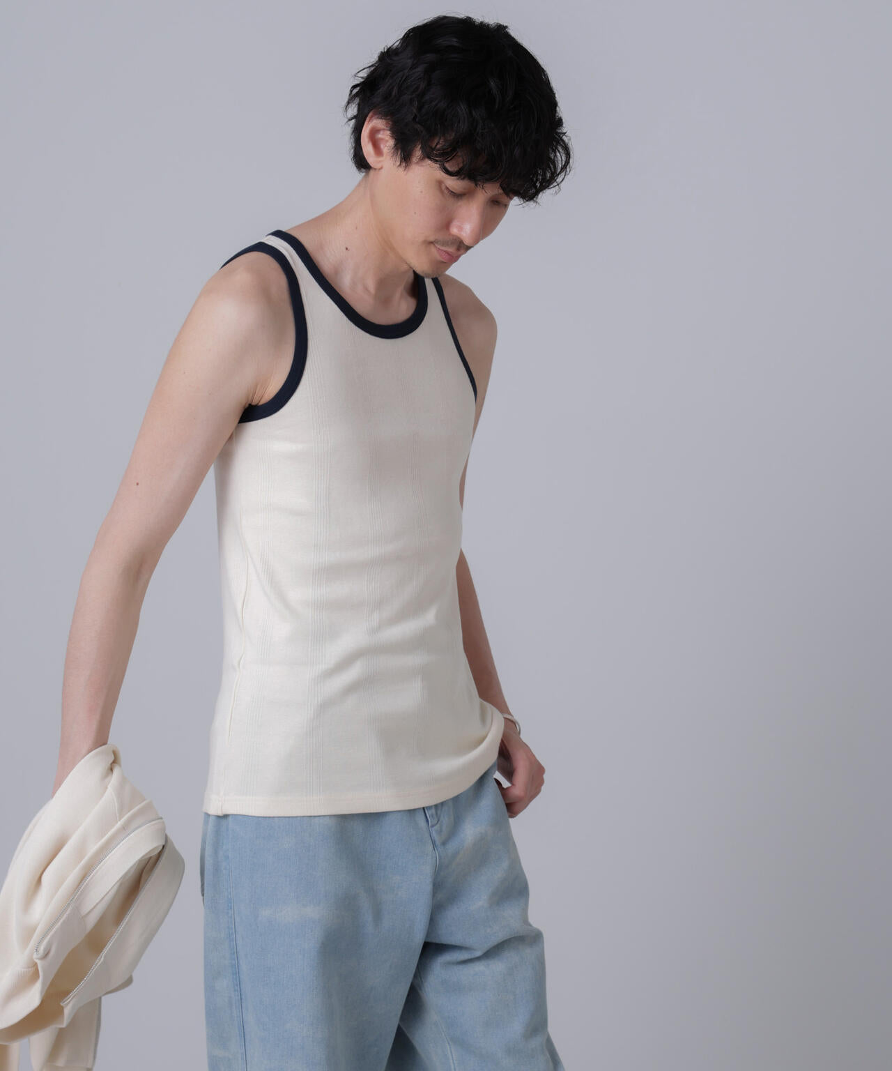 別注オリジナルの配色リブがアクセントになったパネルリブタンクトップ。