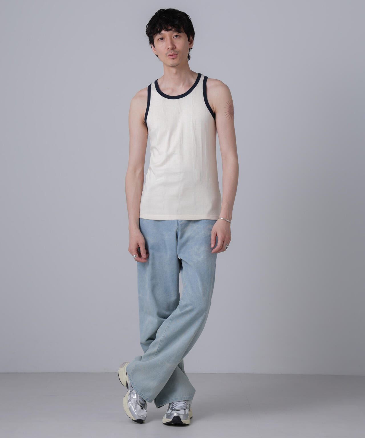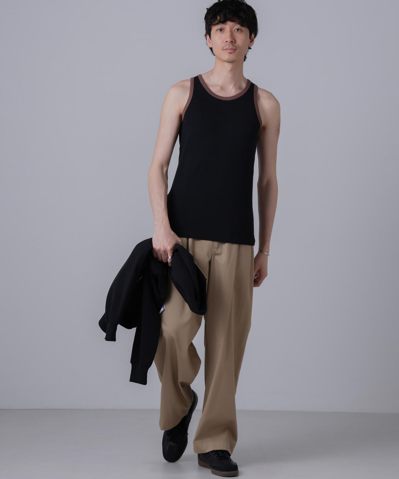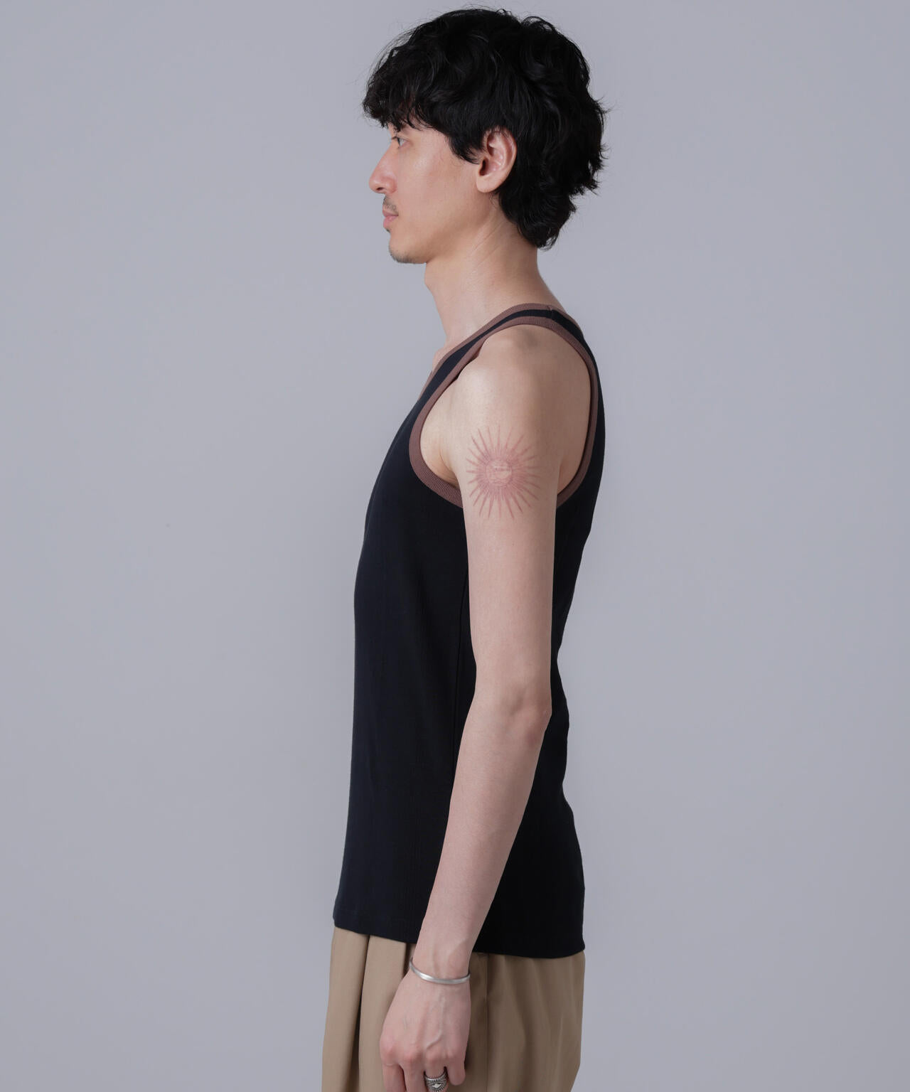 別注オリジナルの配色リブがアクセントになったパネルリブタンクトップ。