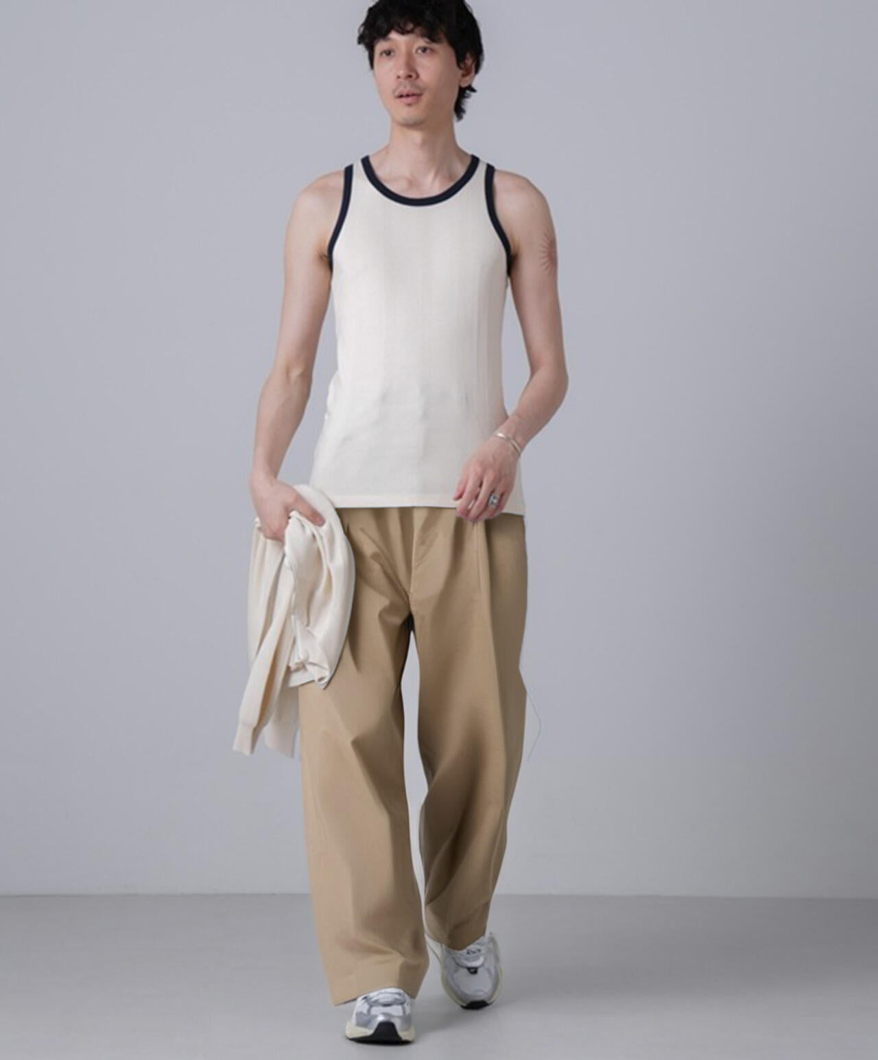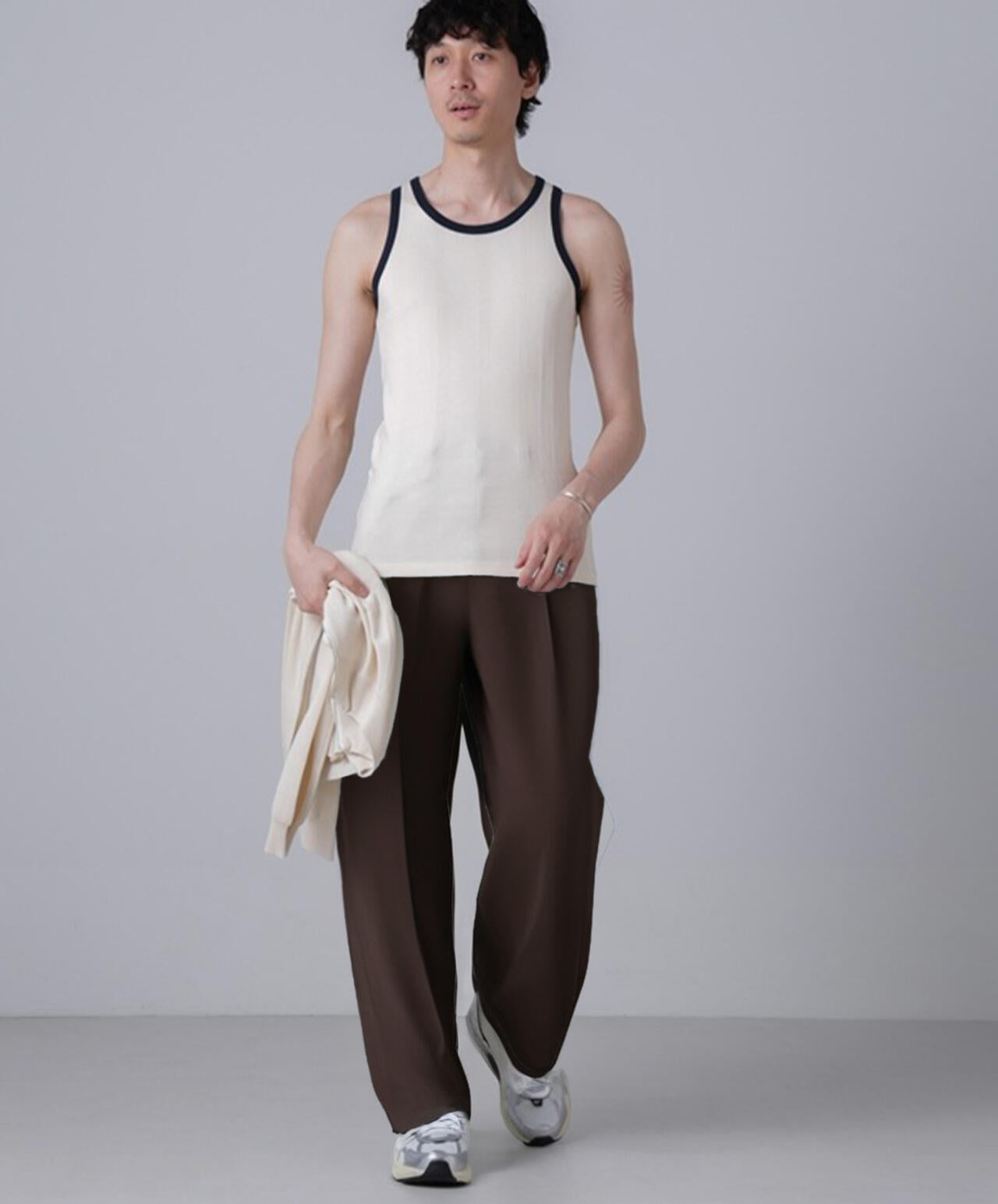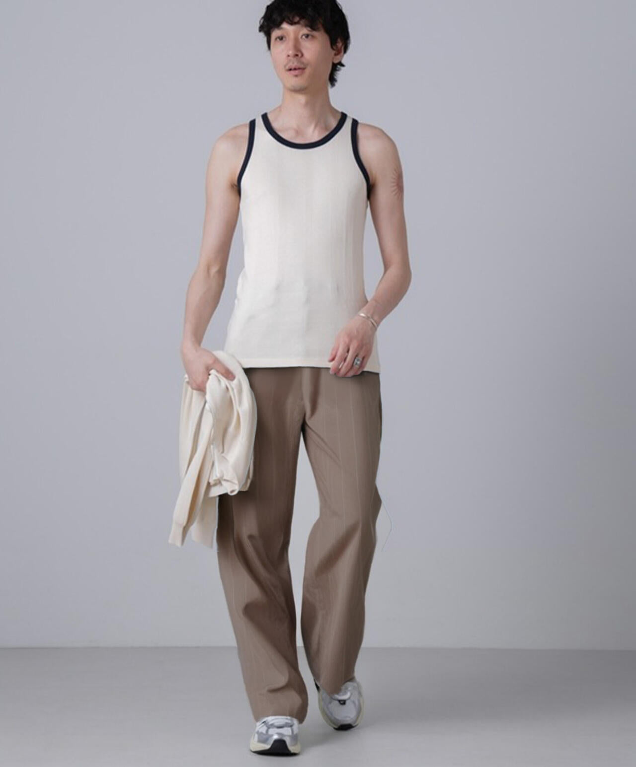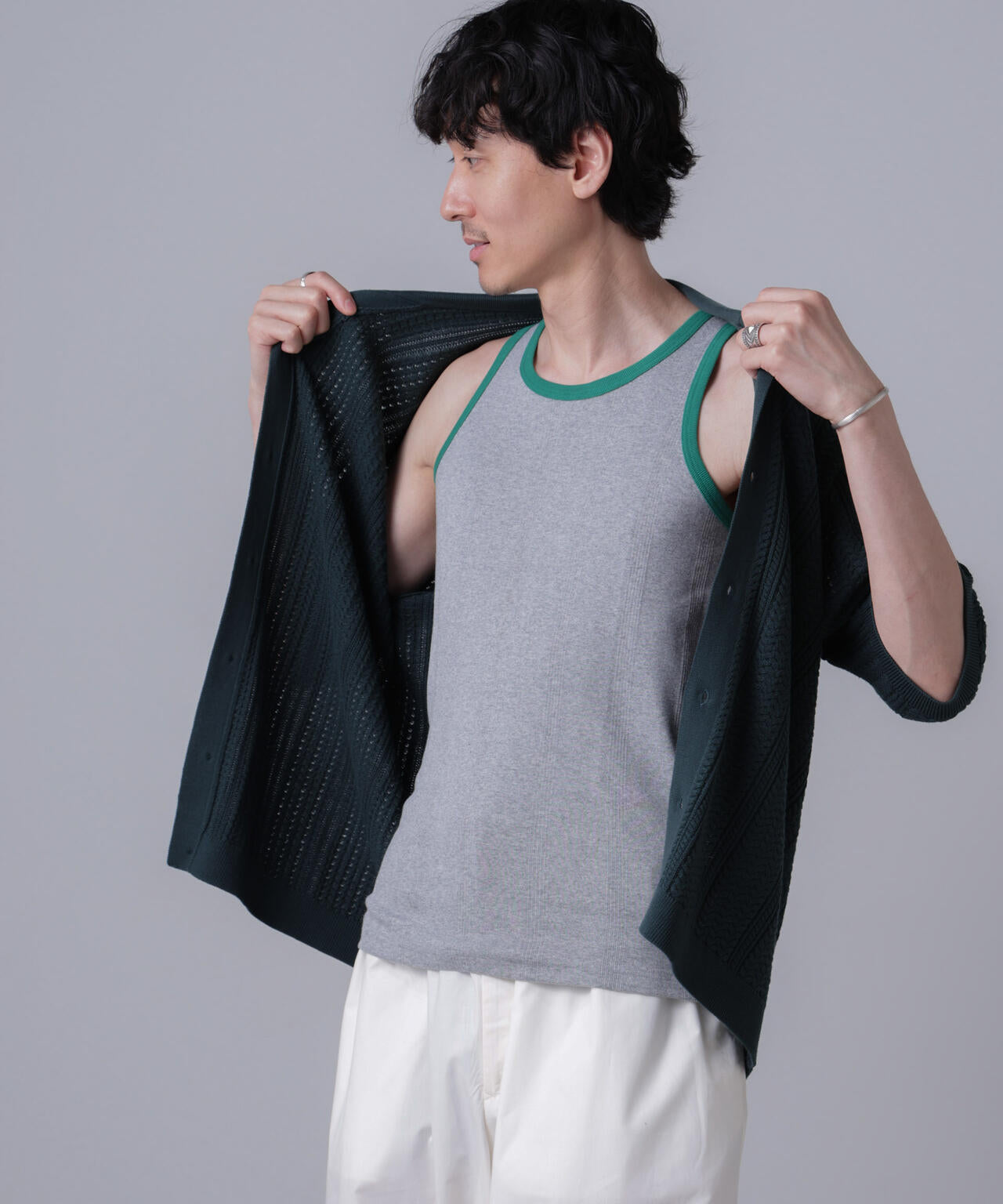 別注オリジナルの配色リブがアクセントになったパネルリブタンクトップ。