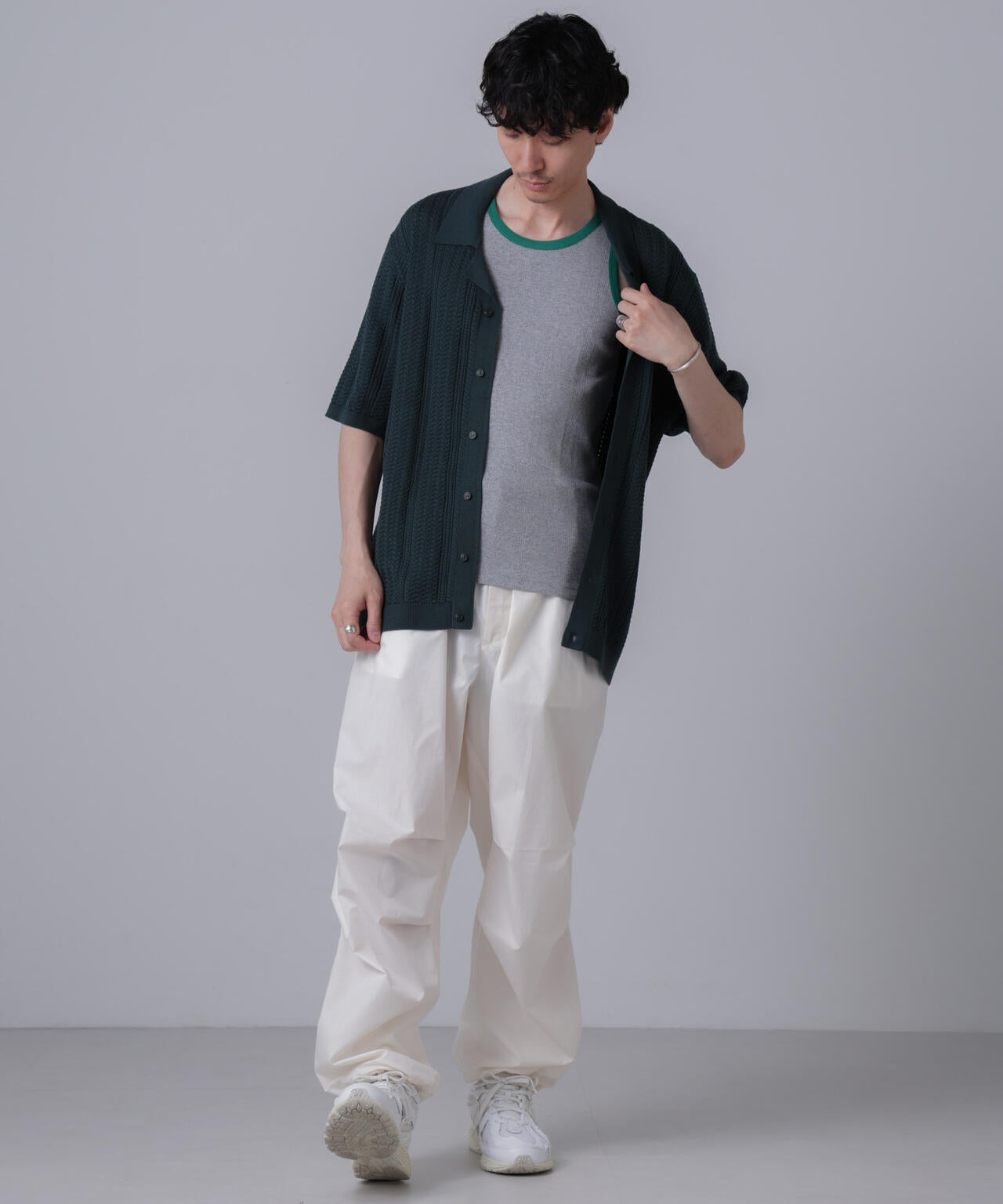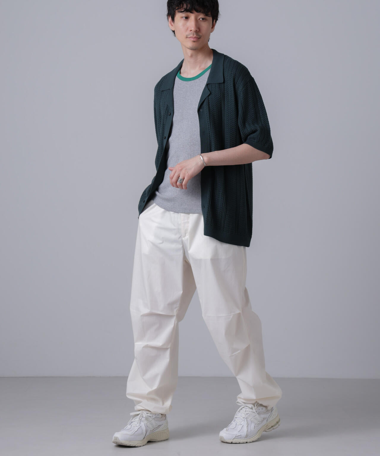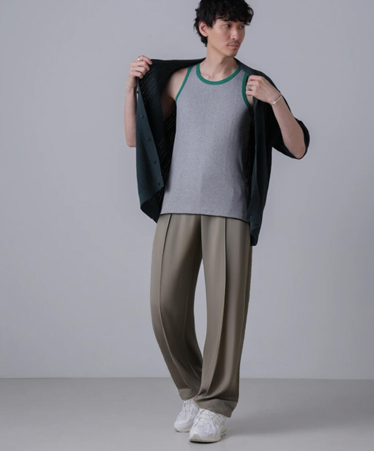 シャツやジャケットなどのインナー使いにはもちろん、ハーフパンツと合わせたスタイルもオススメです。