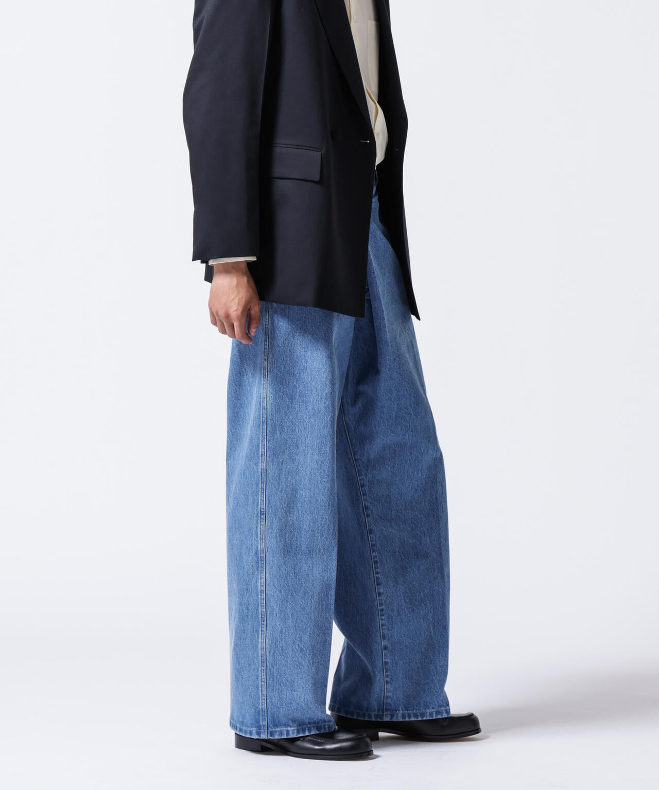 ラップディティールが特徴的なブリーチデニム。オールシーズン着用いただけるデニム生地を採用。ルーズなテーラードジャケットと合わせることで、抜け感を演出するスタイリングがおすすめです。