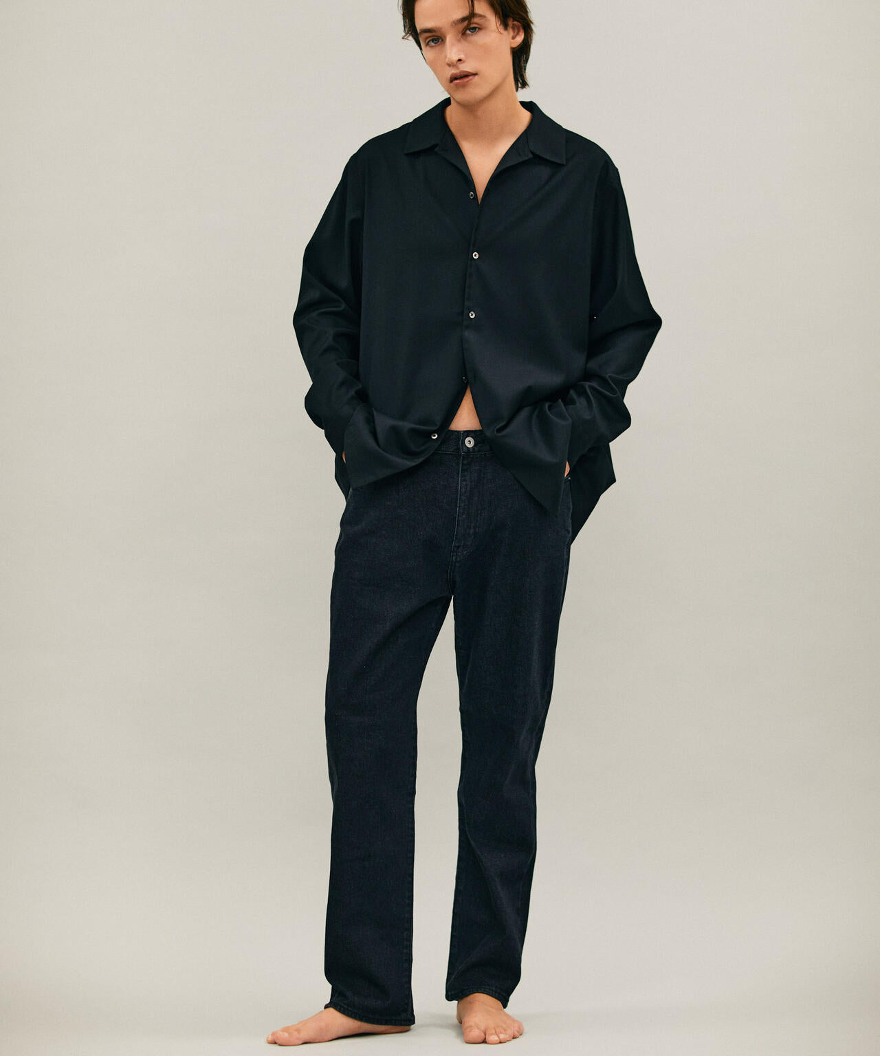 24SSから復刻したサスティナブルレーベルMeaningful continuityよりワードローブの定番となり得るアイテムを目指す"タイムレス ワードローブ"シリーズとしてデニムパンツが登場。第一弾はクラシックな5ポケットをベースとしたレギュラーフィットとリラックスフィットの2シルエット展開。あえて髭などのカジュアルな加工はせず、フラットめな加工をすることでモダンな表情に仕上げた1本です。