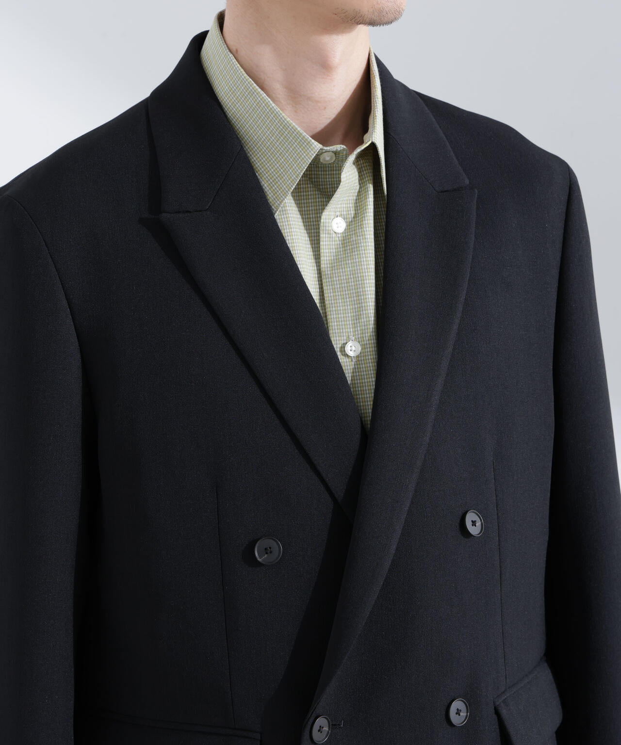 ・ダブルブレストなので、ボタンを閉じてタイトなシルエットにすることも可能