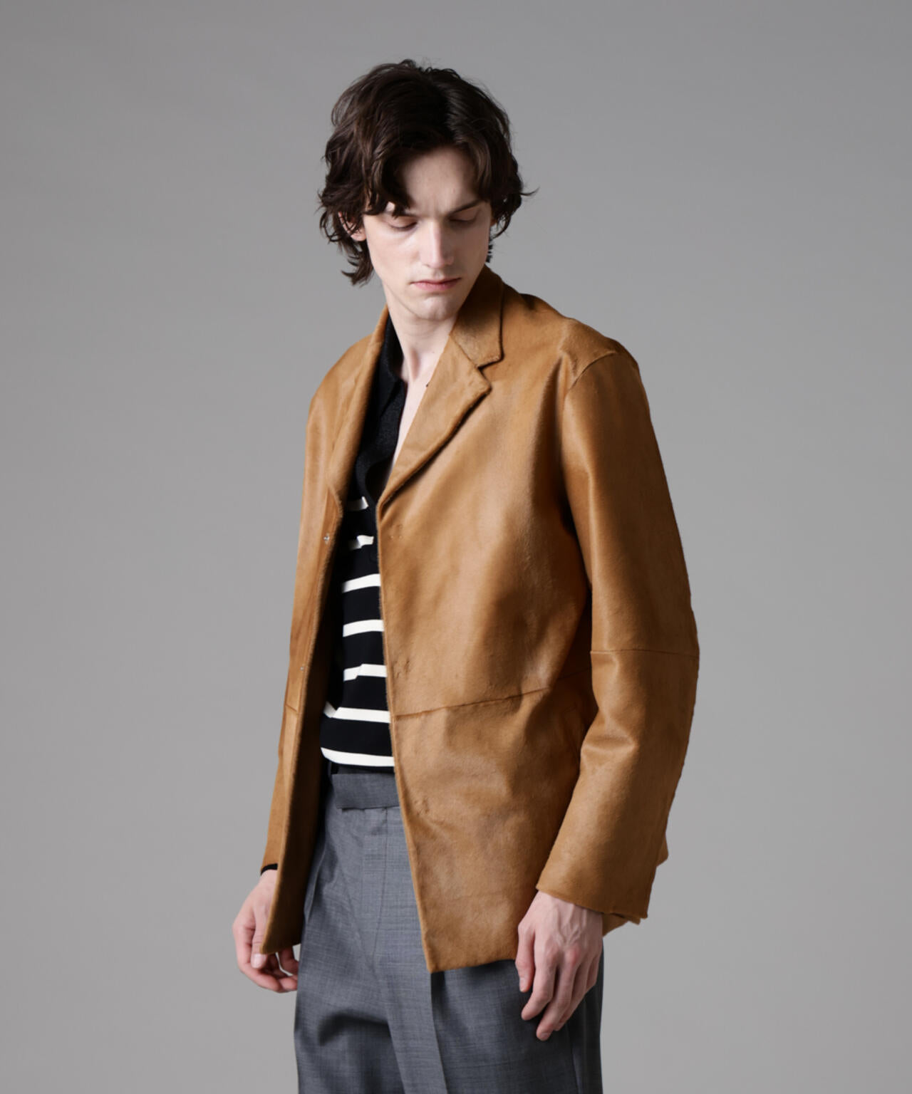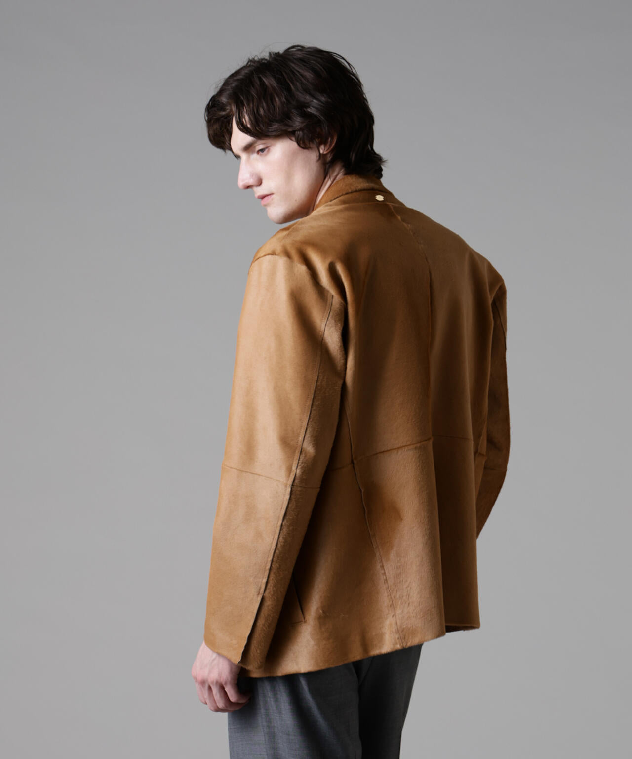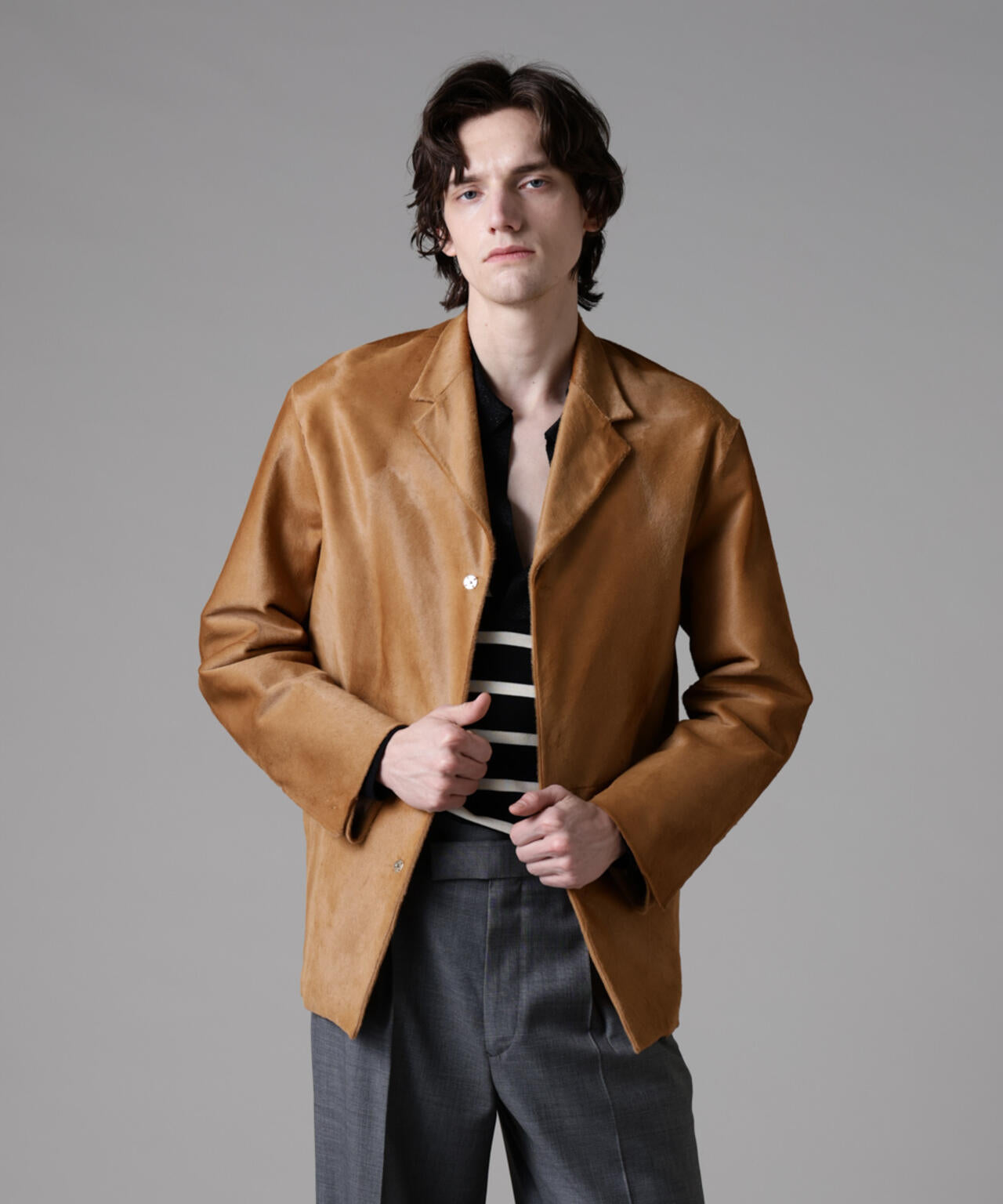 大人の色気を纏いつつ、ワイルドさ、品の良さを併せ持つジャケット。今のムードにぴったりの高級レザー、ヘアリーカーフを使用した、カジュアルながらリッチな雰囲気を醸し出す1着です。
