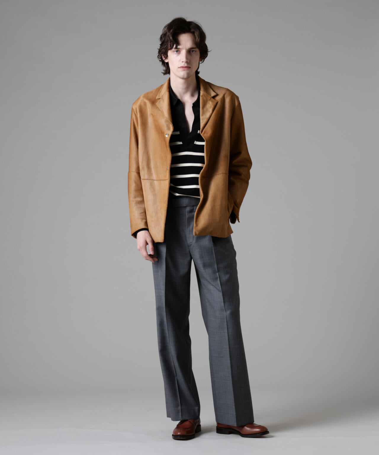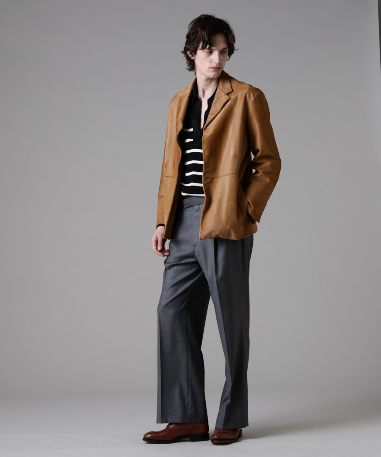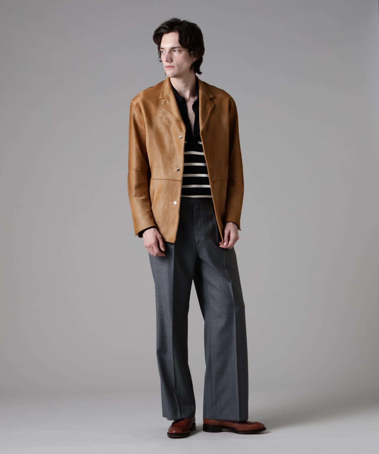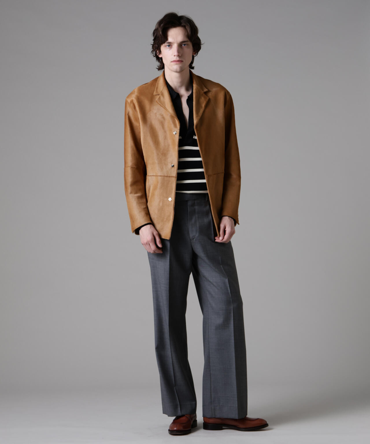 大人の色気を纏いつつ、ワイルドさ、品の良さを併せ持つジャケット。今のムードにぴったりの高級レザー、ヘアリーカーフを使用した、カジュアルながらリッチな雰囲気を醸し出す1着です。