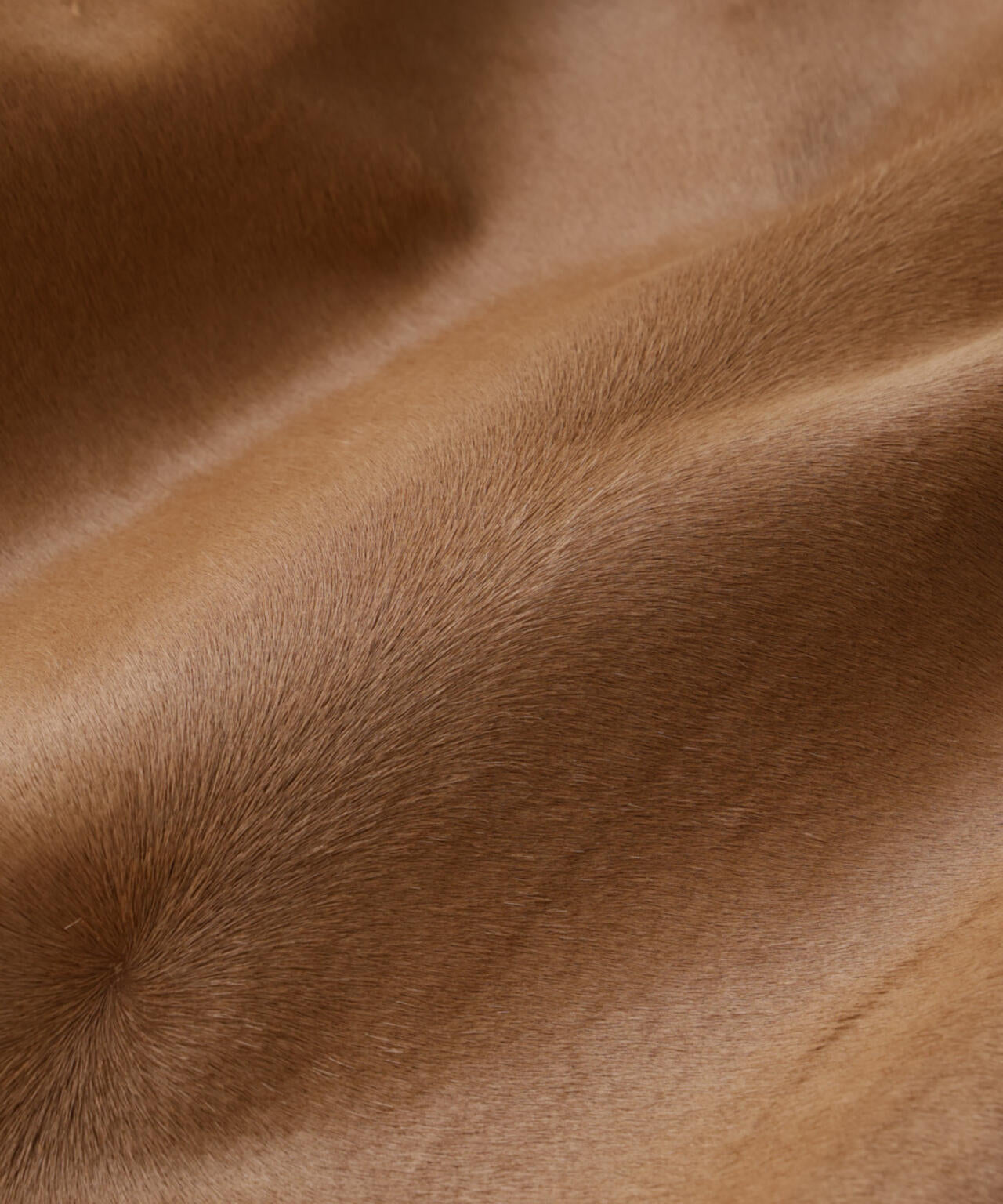 ・春向けのファー素材として今のムードにぴったりなヘアリーカーフを使用